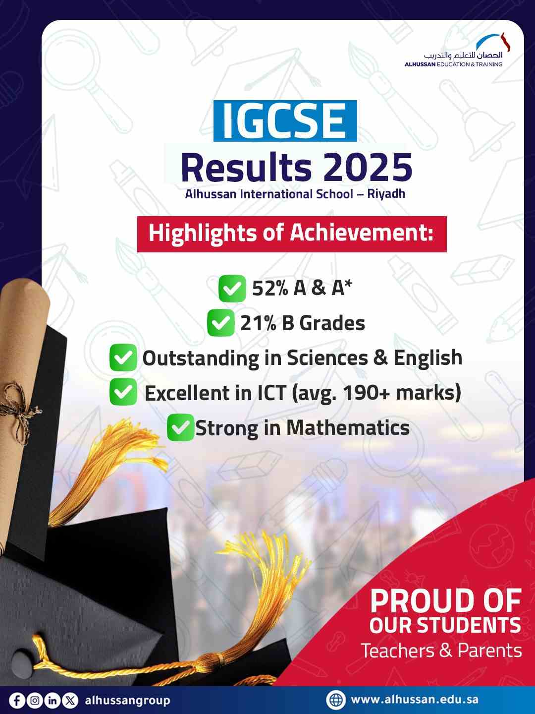 ALHussan International School- Riyadh Learners Excel in International Cambridge Checkpoint Tests03 Sep 2025Read MoreNumber of visitors (106) |