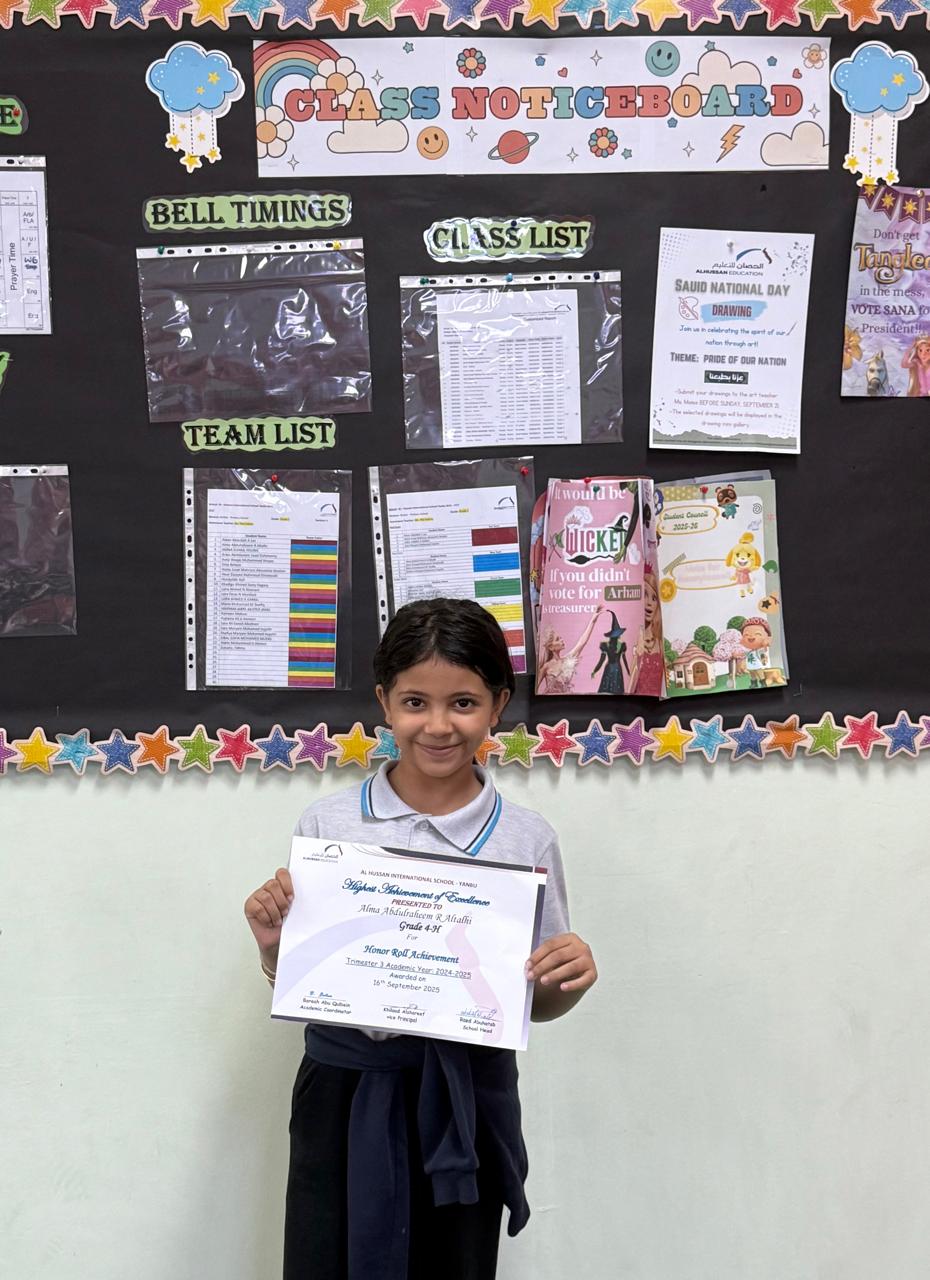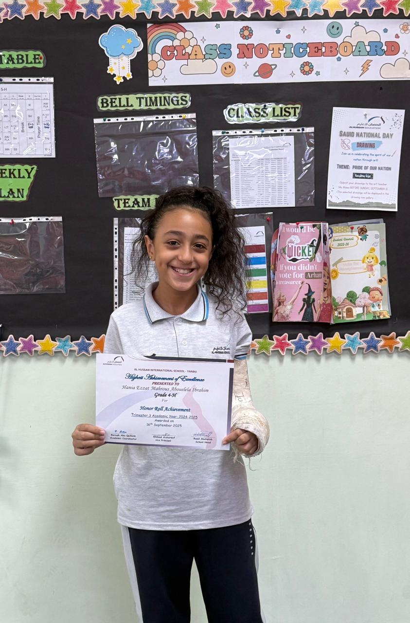 On Tuesday, September 16, 2025, HISY hosted a special Honor Roll and Students Recognition event to celebrate the outstanding academic achievements of its students from the previous semester. The ceremony recognized those who demonstrated exceptional dedication and excellence in their studies, highlighting their hard work and perseverance. Students who earned top grades were proudly acknowledged for their efforts, reinforcing the school's commitment to fostering a culture of excellence and academic success. The event was a memorable occasion, inspiring all to continue striving for greatness in their educational journey.