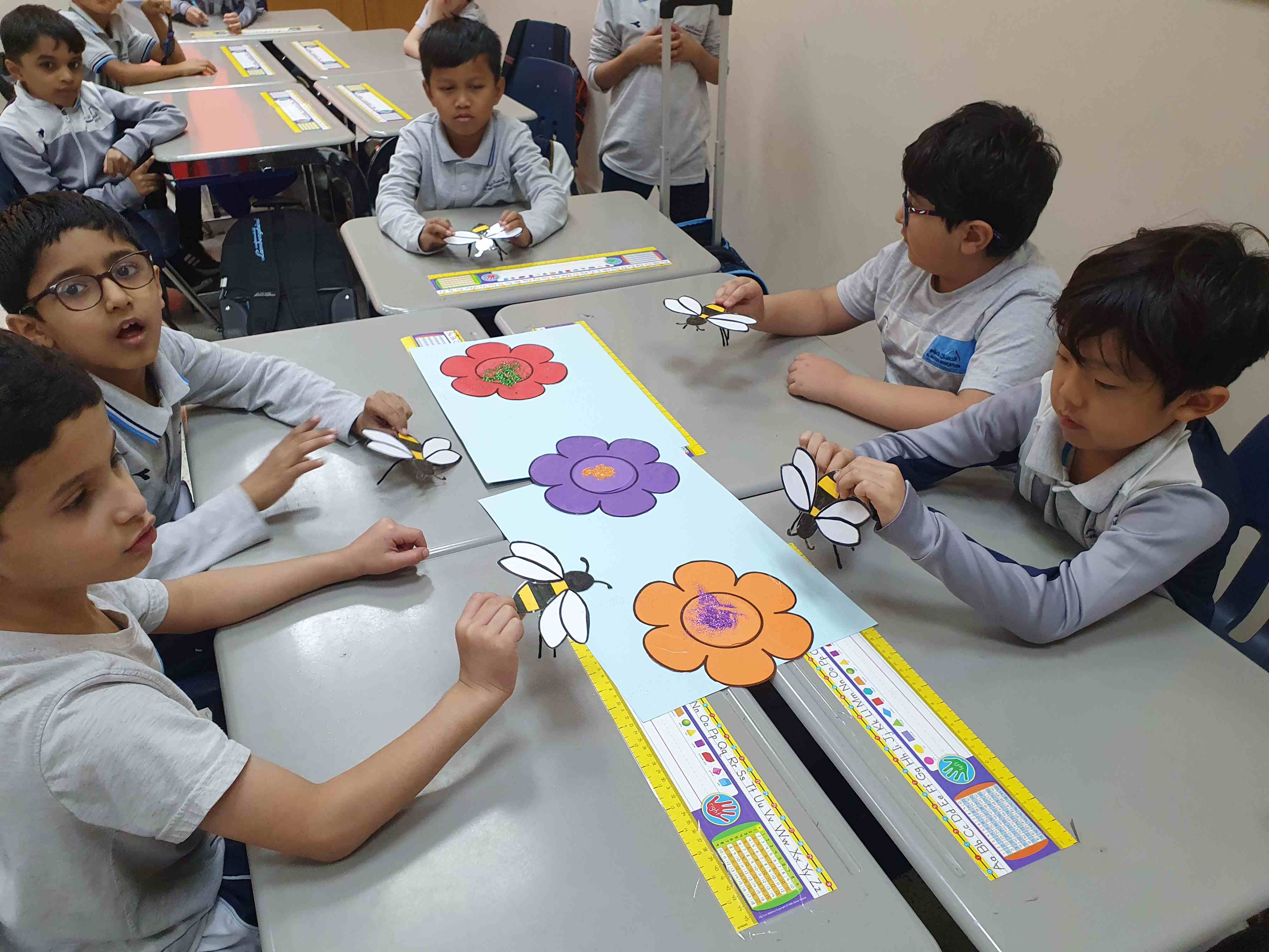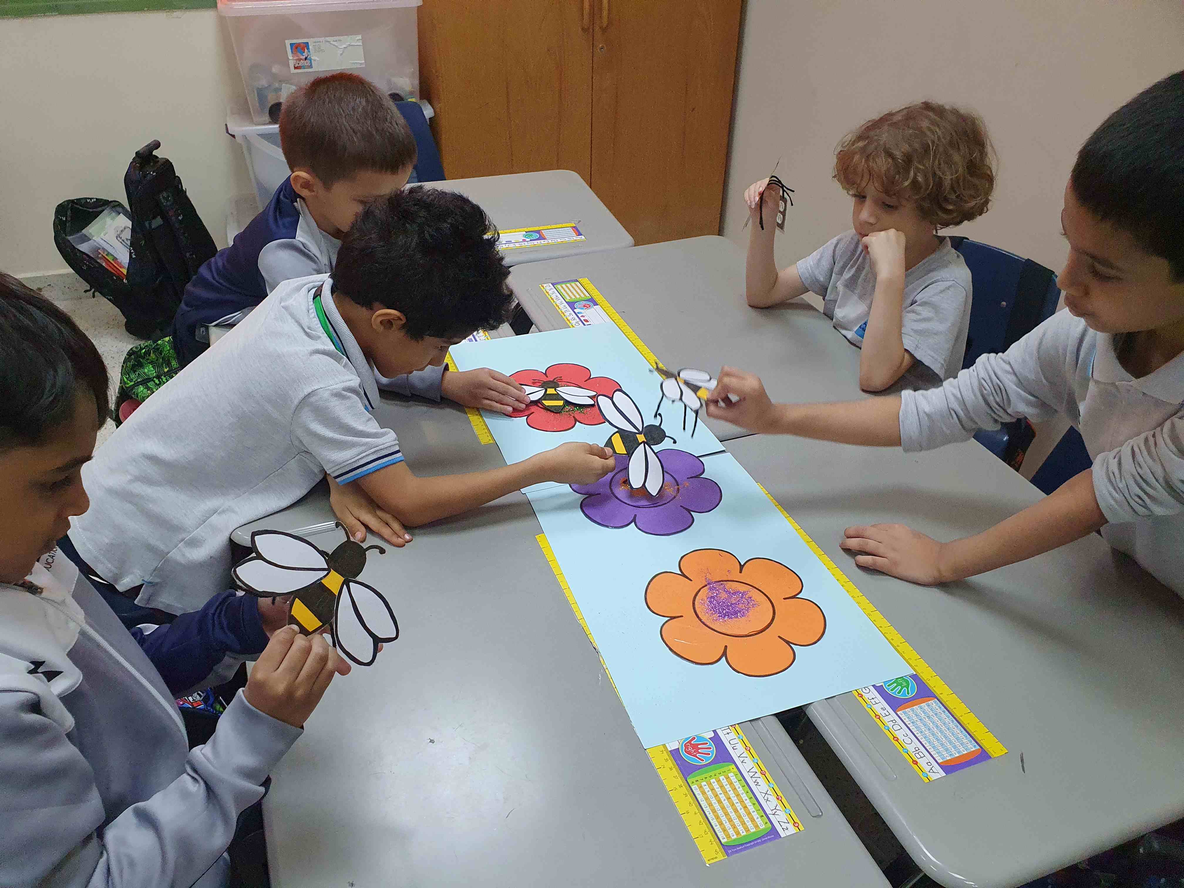 Grade 2-P students used paper bees and glittery flower models to learn how pollination works. Moving the bees from flower to flower showed them how pollen is carried and seeds are formed — a fun and engaging way to understand the vital role of bees!