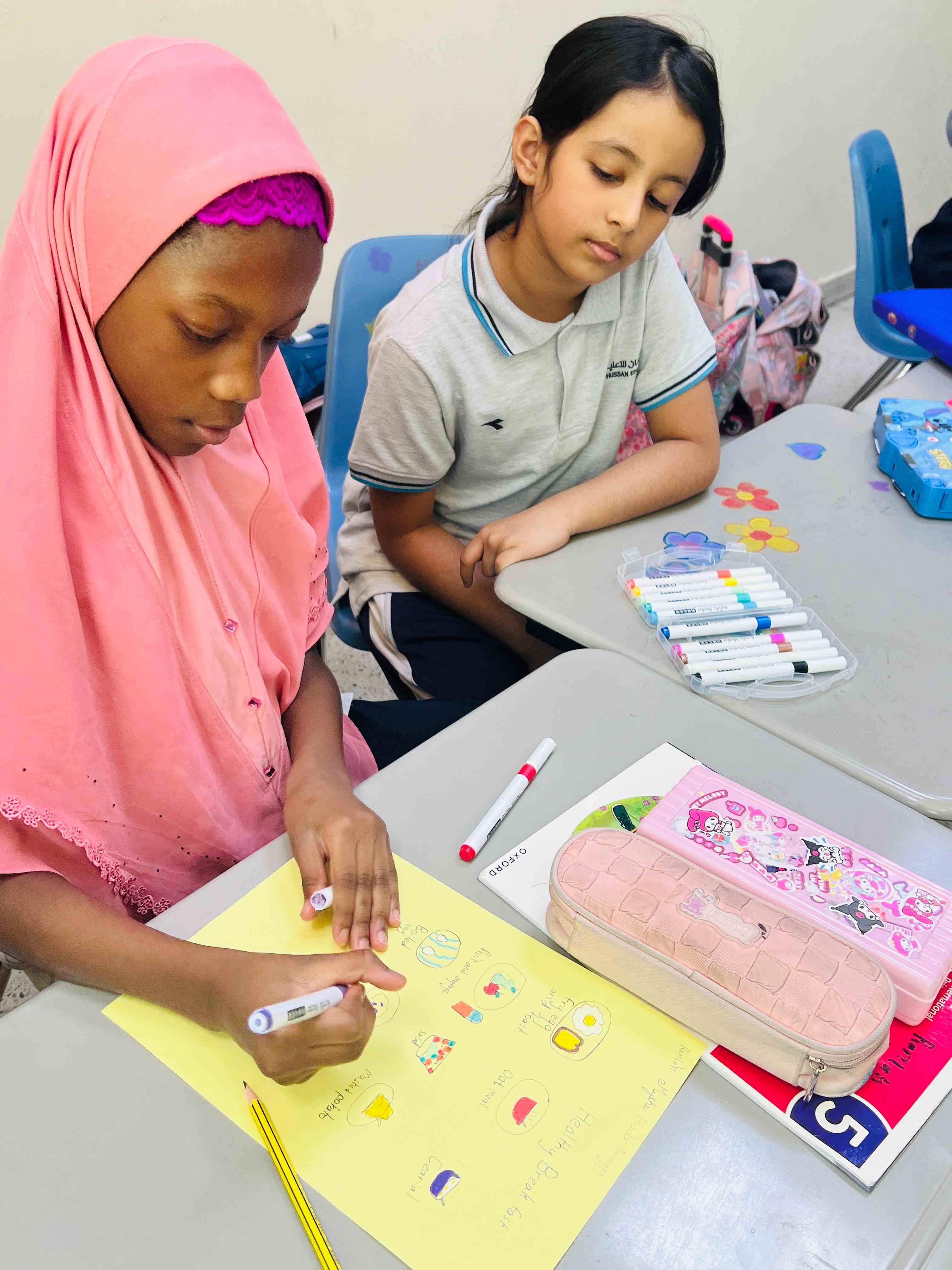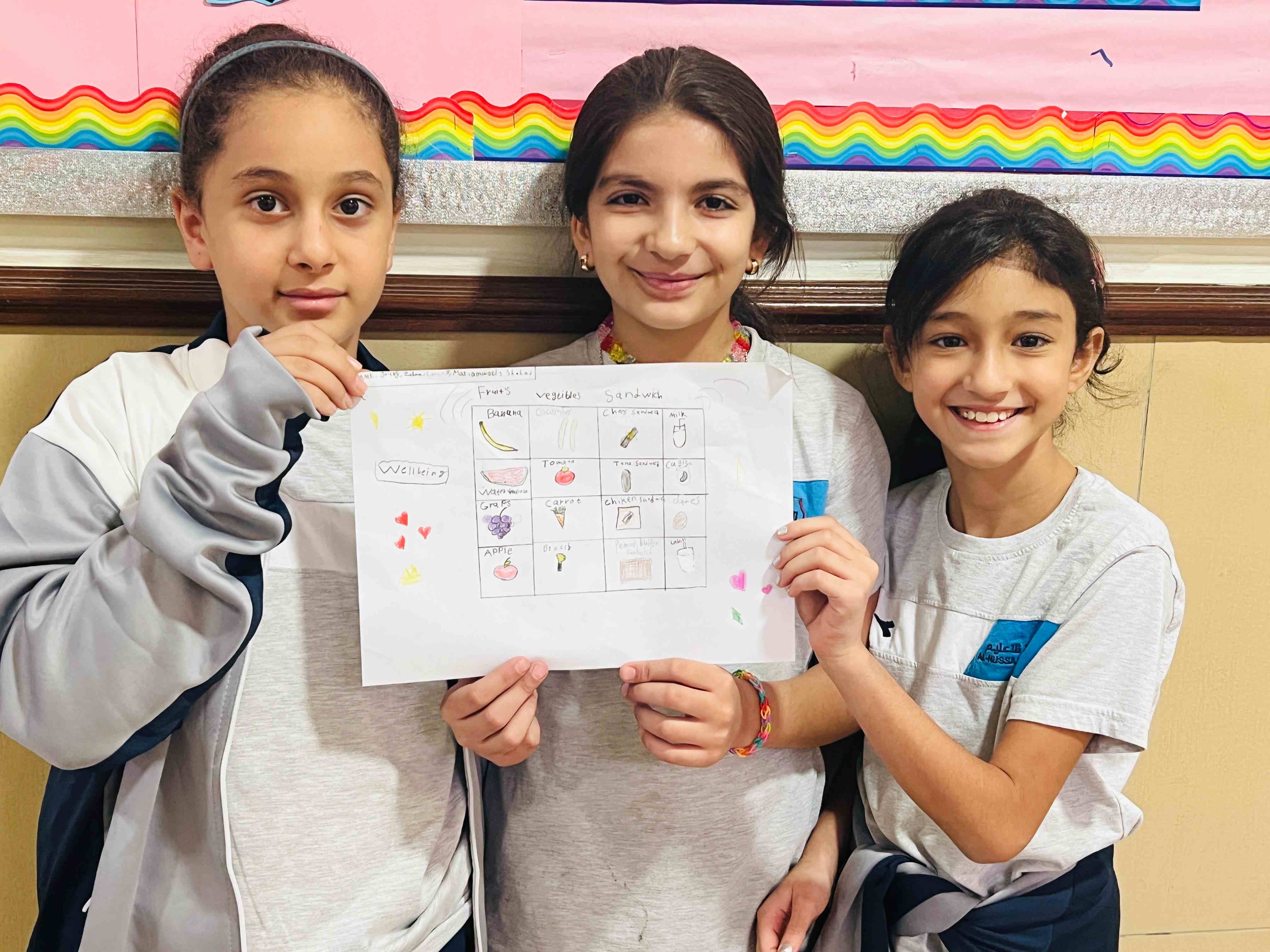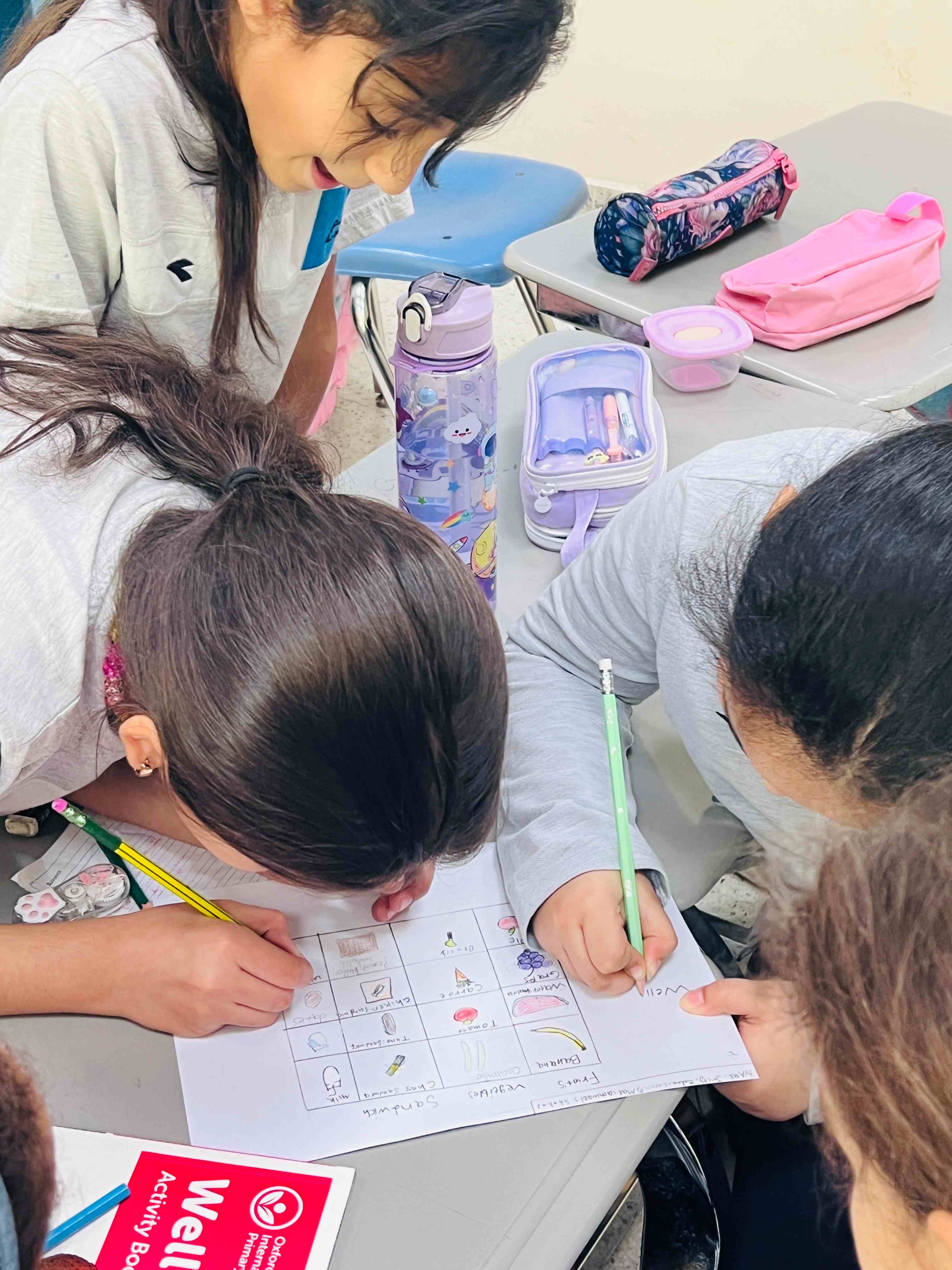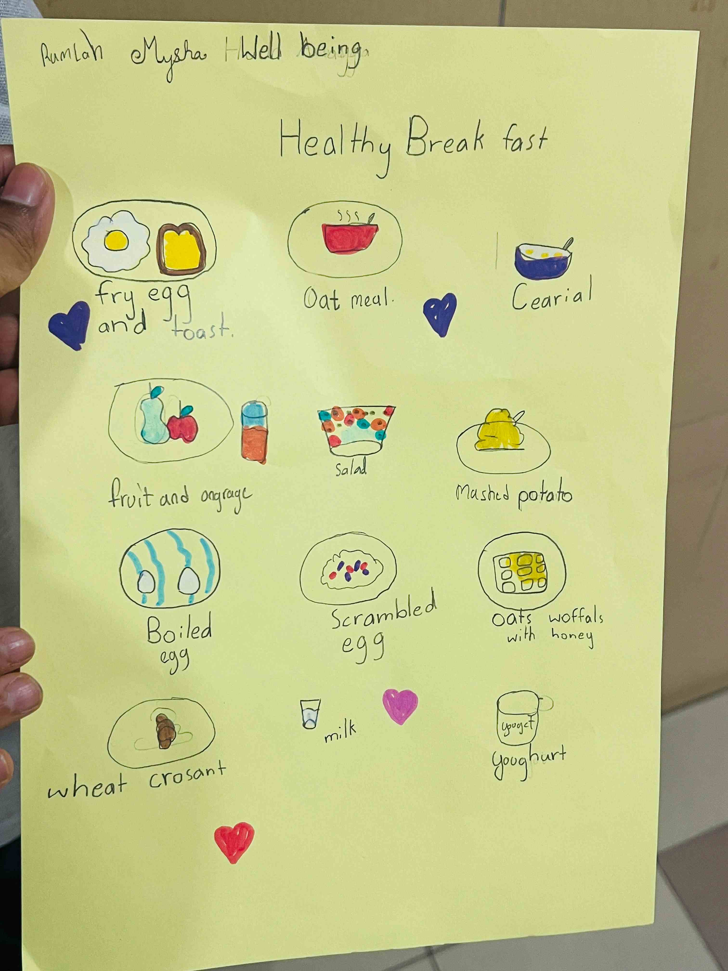 Grade 4 girls enthusiastically joined a well-being activity by designing posters with nutritious menus for breakfast, lunch, snacks, and dinner — encouraging healthy habits in a creative way!
