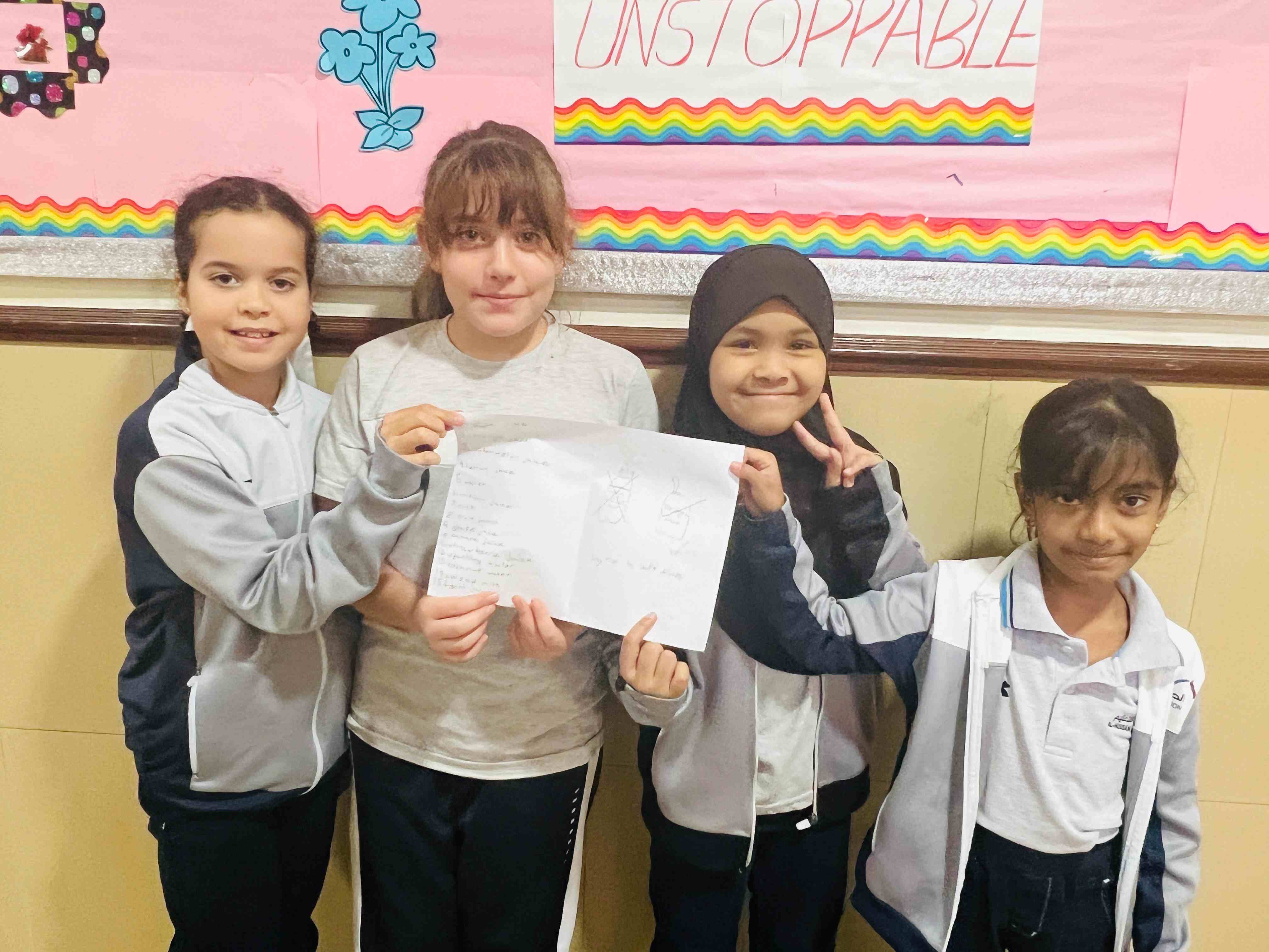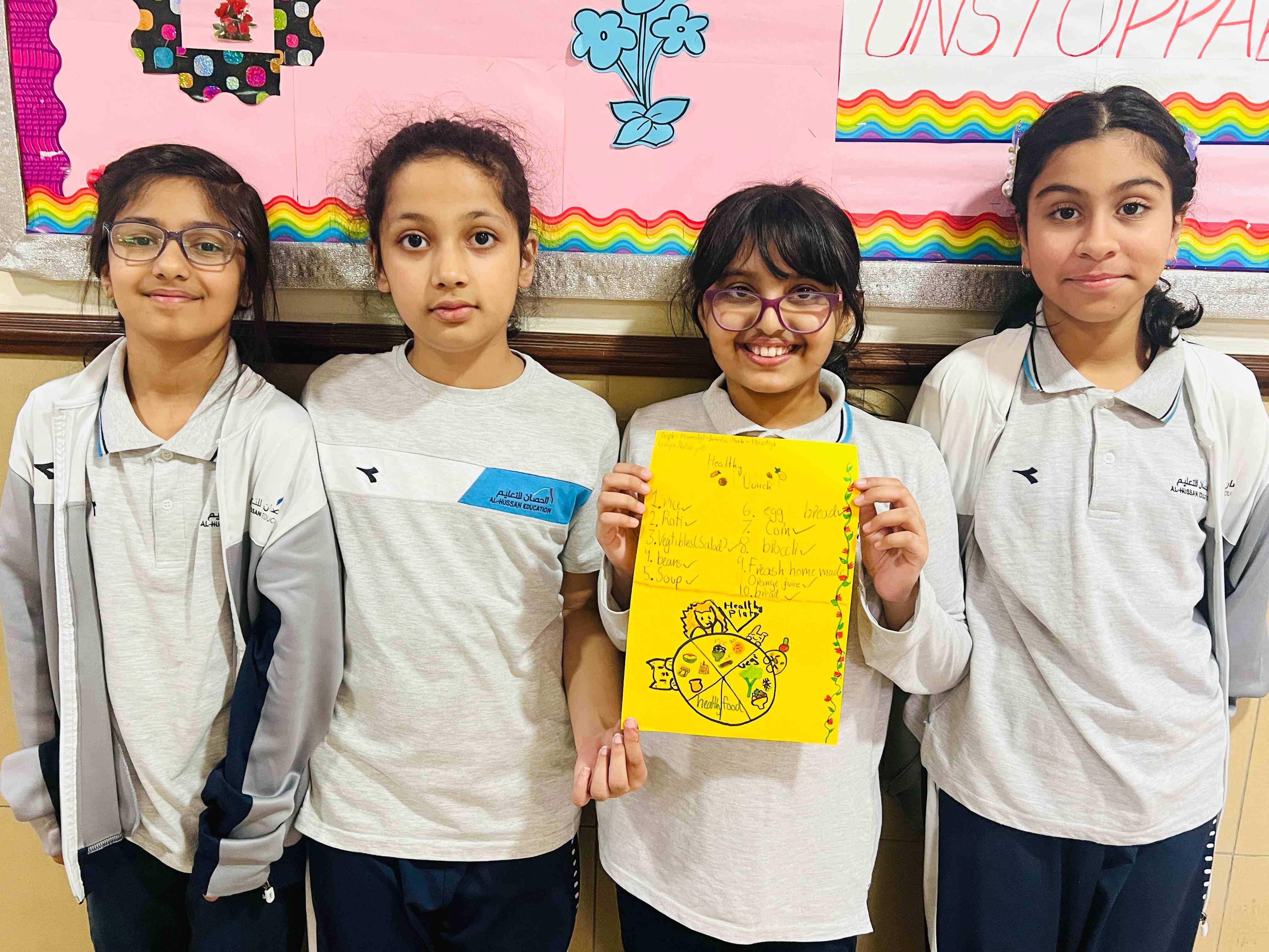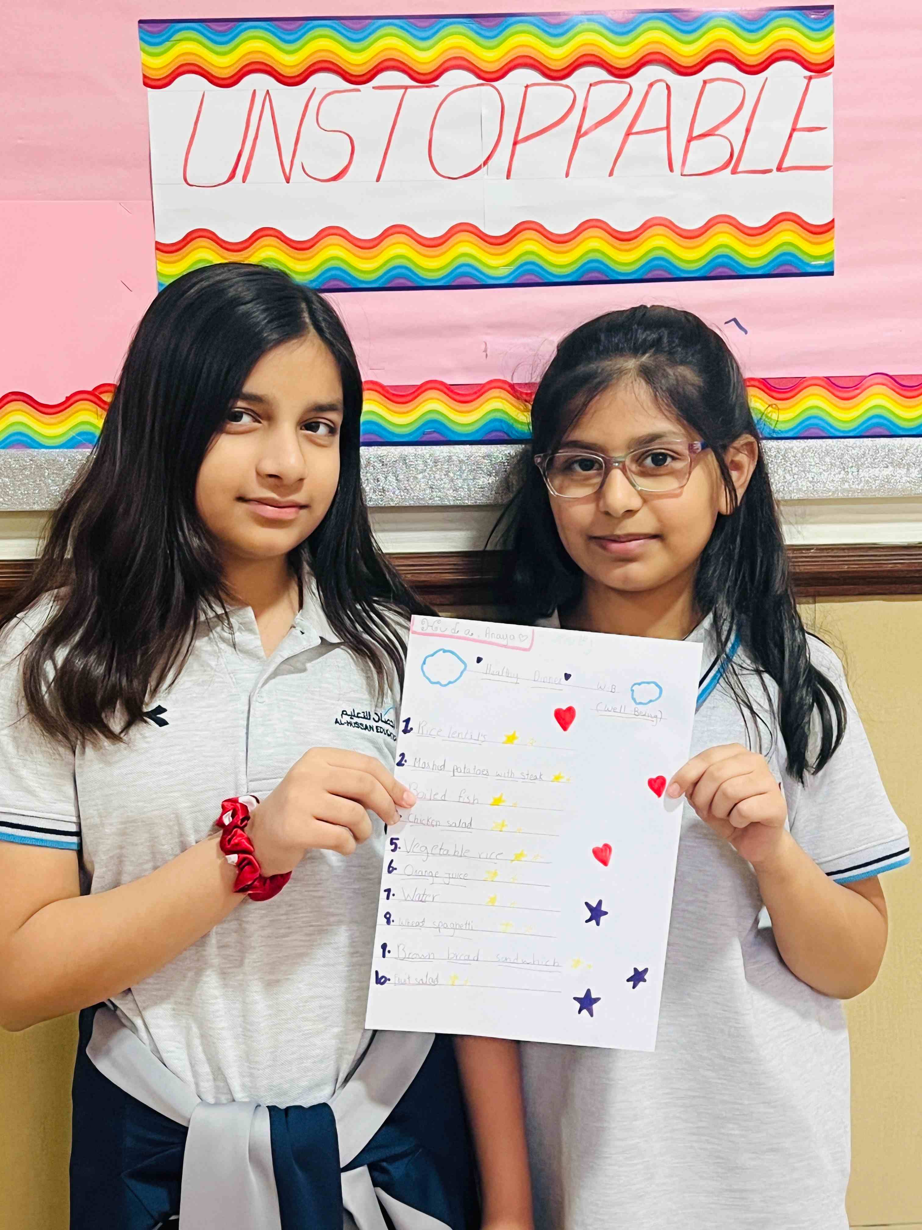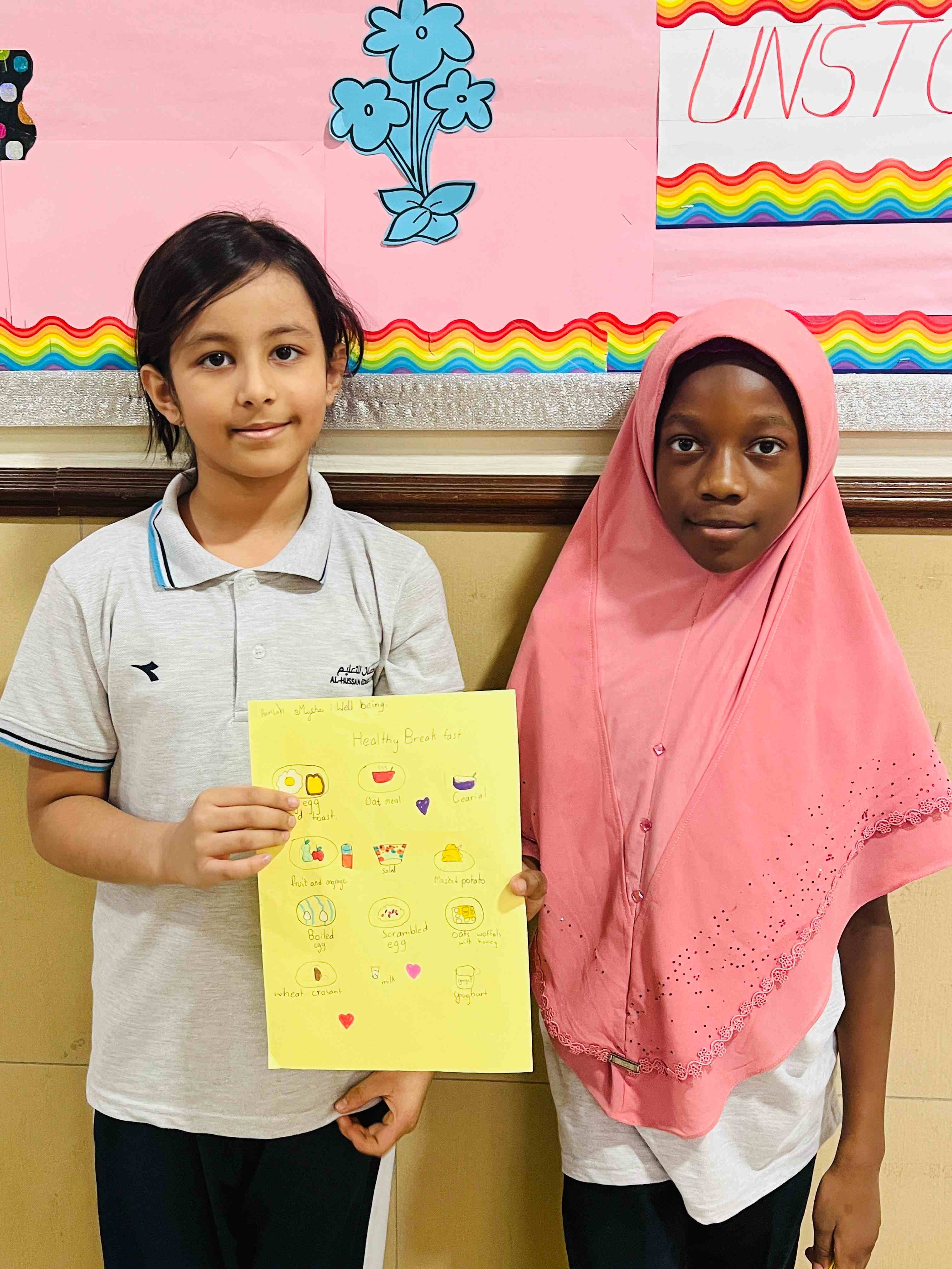 Grade 4 girls enthusiastically joined a well-being activity by designing posters with nutritious menus for breakfast, lunch, snacks, and dinner — encouraging healthy habits in a creative way!