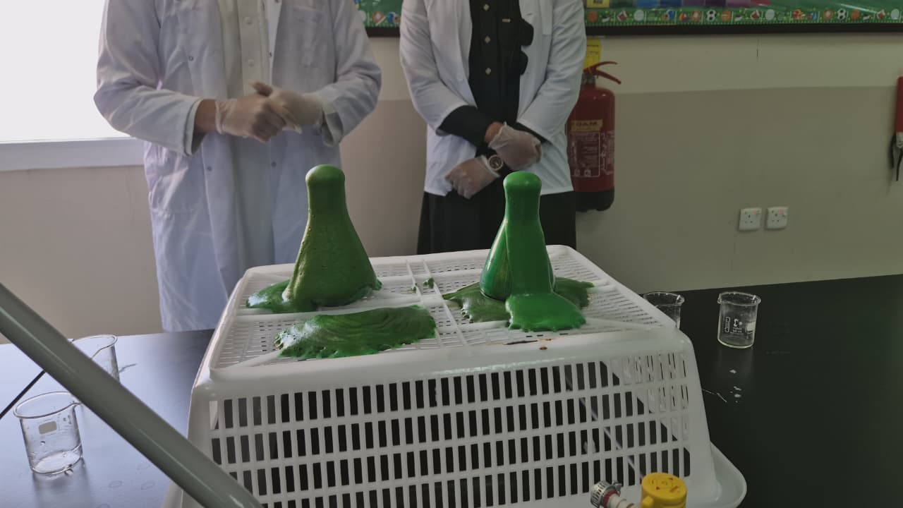 As part of the National Day activities, our students enjoyed a colorful “Elephant Toothpaste” experiment designed in the colors of the Saudi flag.