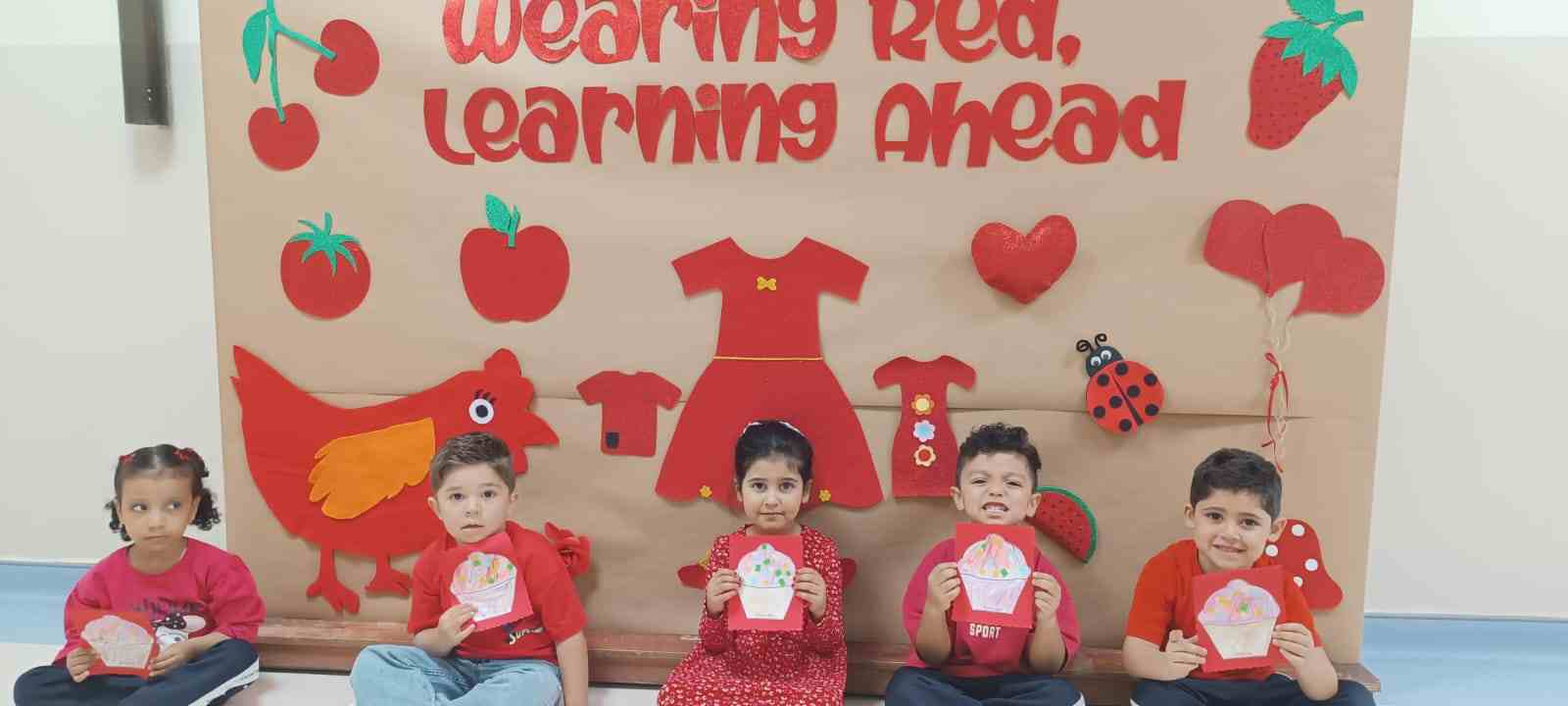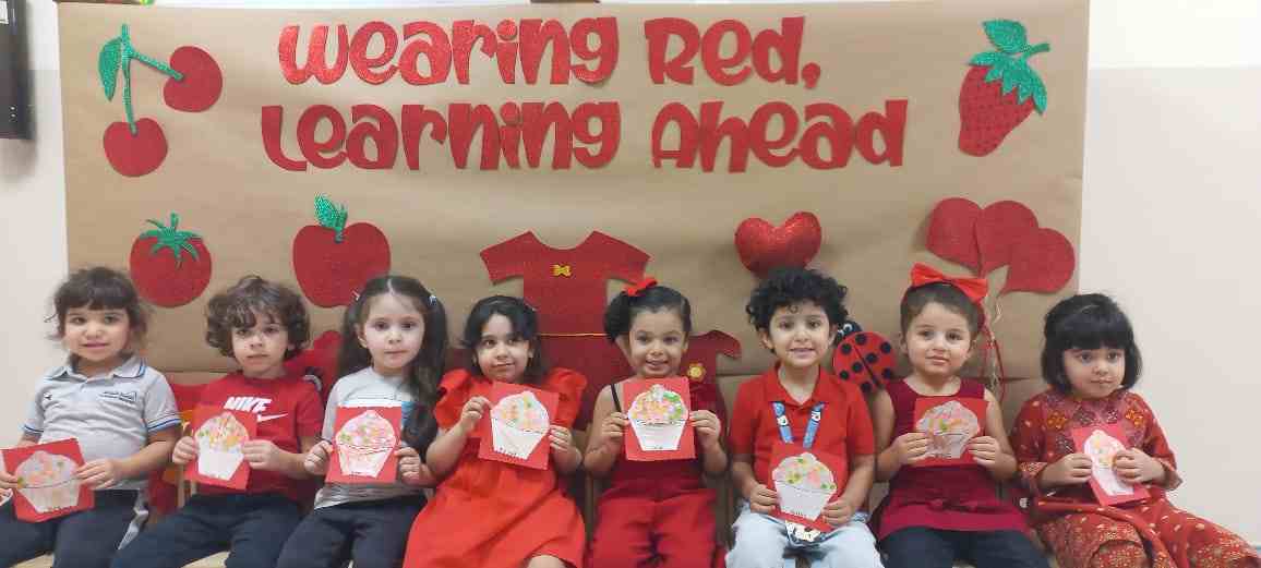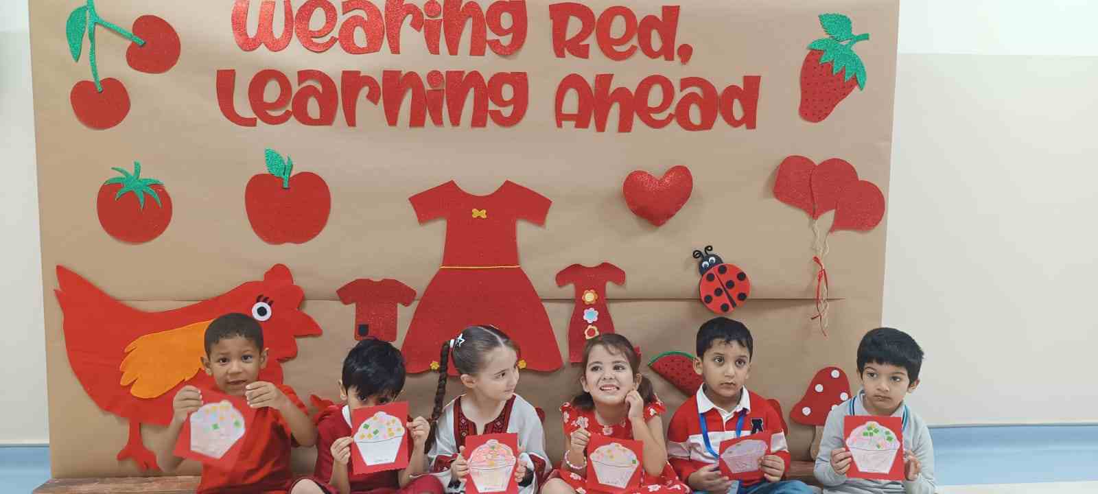 KG students celebrated Red Day with great excitement and enthusiasm. Dressed in vibrant red outfits, the children looked cheerful and full of energy. They participated in fun, hands-on red-themed crafts, helping them recognize and appreciate the color red in a playful and engaging way. It was a joyful day filled with learning, creativity, and color!