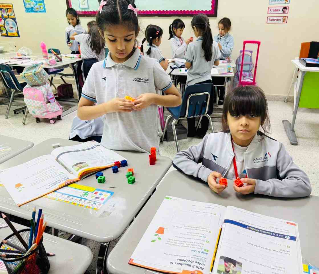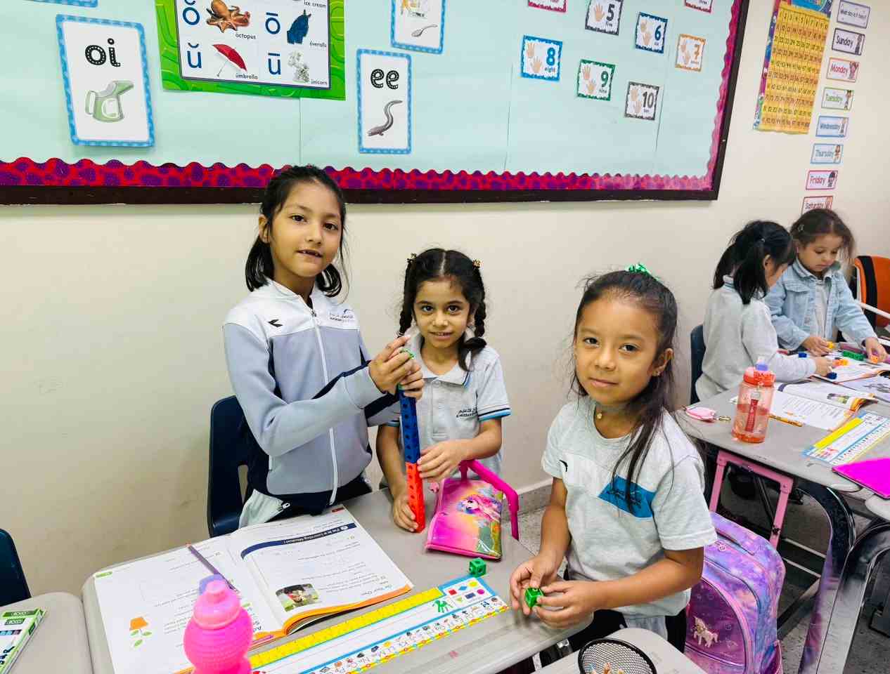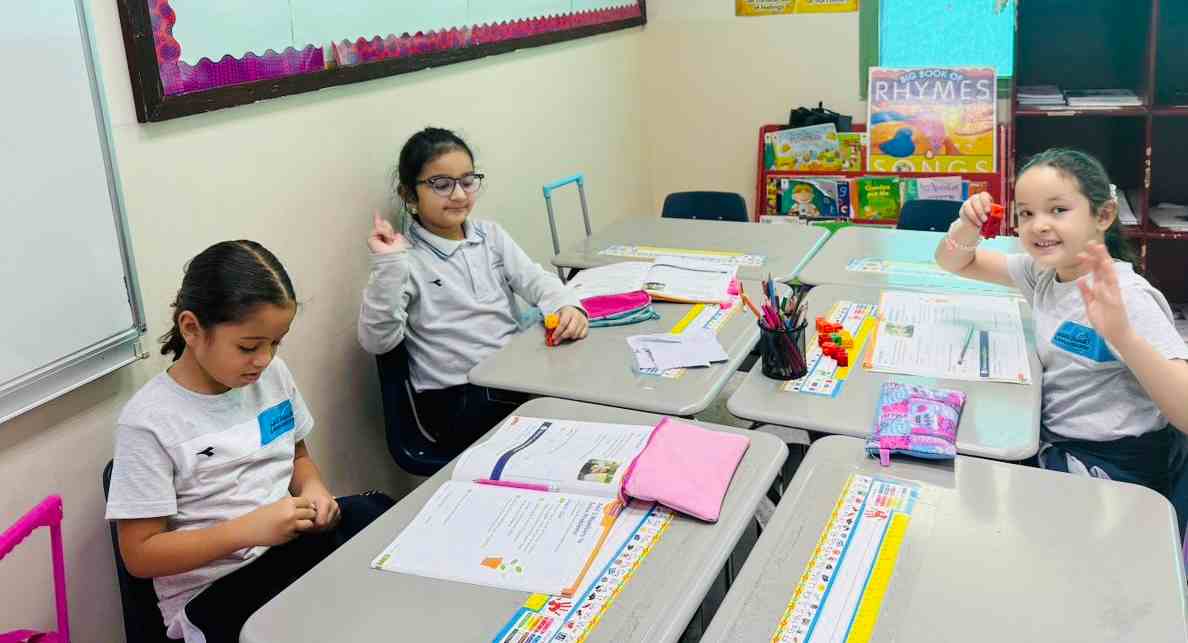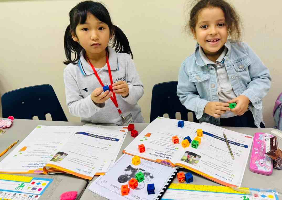 Grade 1-H girls explored strategies to add three numbers — like adding the first two and then the third. They enjoyed the activity and discovered that math can be fun.