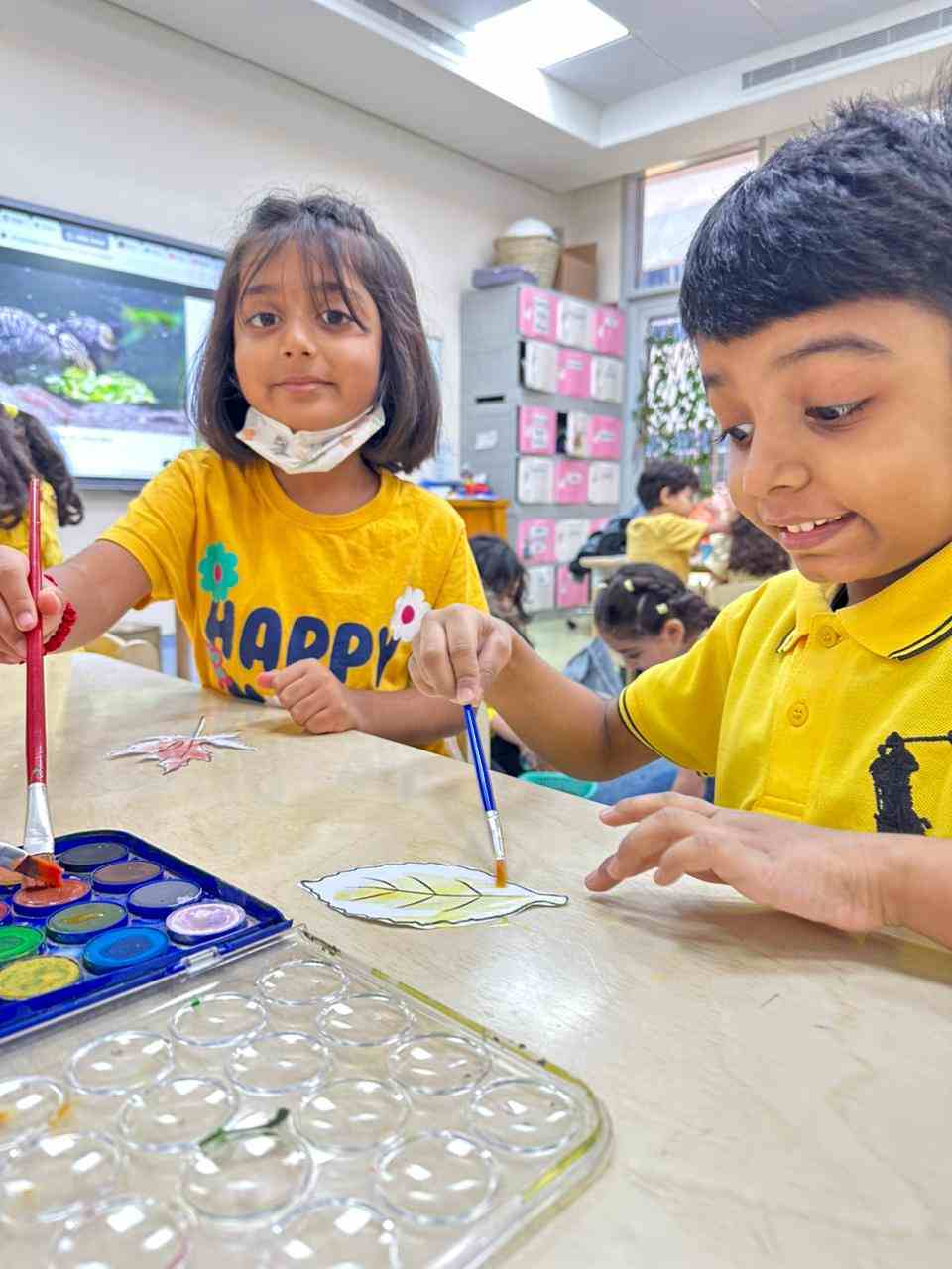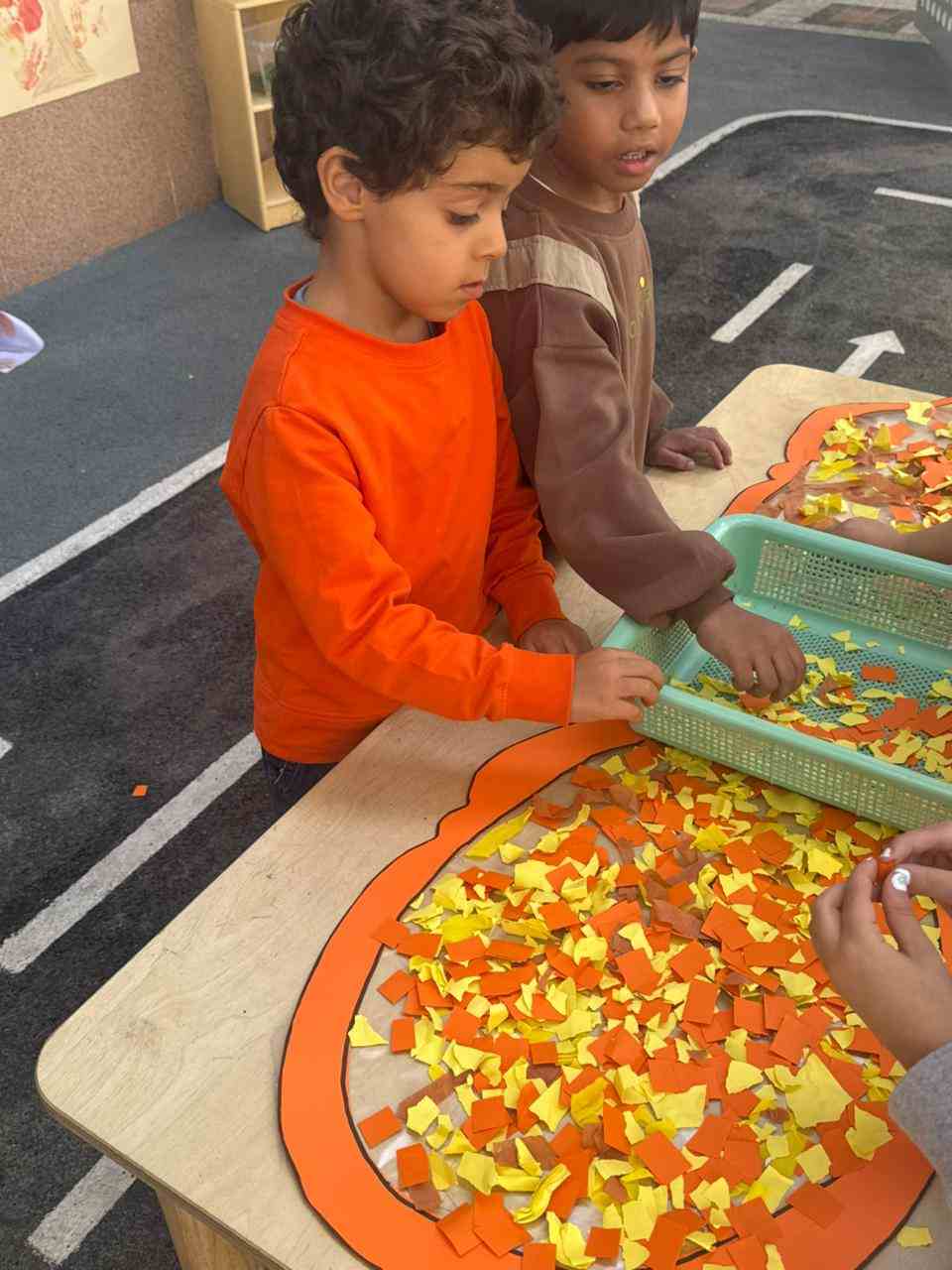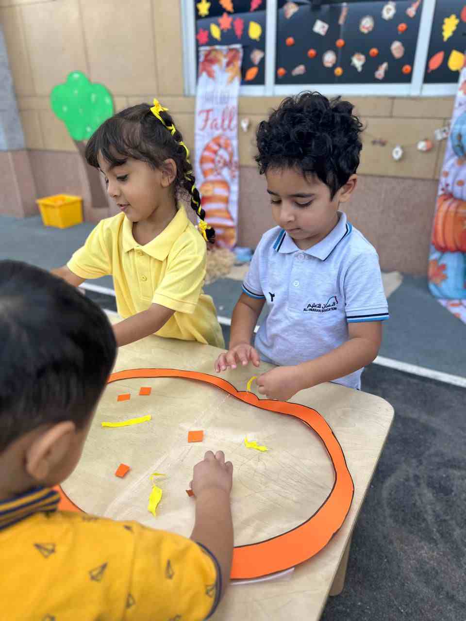At Al Hussan International Academy, our KG students celebrated the arrival of fall with laughter and creativity! Activities included sorting colorful leaves, building pumpkin stacks, and creating vibrant handprints. Outdoor games promoted teamwork and discovery, while students brought fall fruits and vegetables like apples and pumpkins in their lunch boxes to encourage healthy eating.