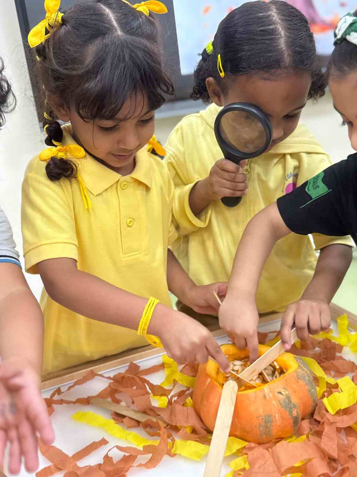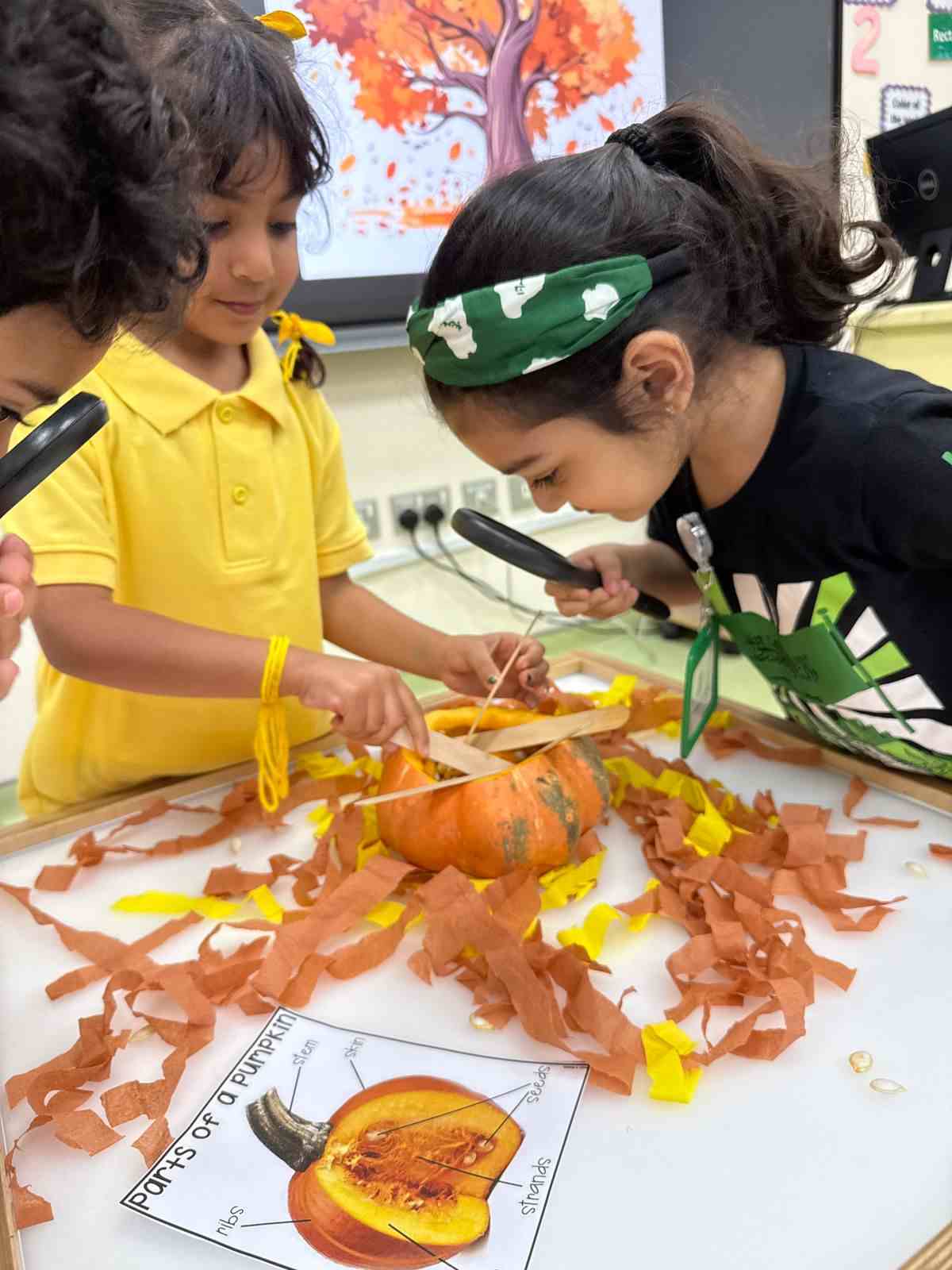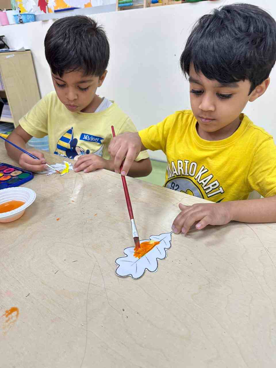 At Al Hussan International Academy, our KG students celebrated the arrival of fall with laughter and creativity! Activities included sorting colorful leaves, building pumpkin stacks, and creating vibrant handprints. Outdoor games promoted teamwork and discovery, while students brought fall fruits and vegetables like apples and pumpkins in their lunch boxes to encourage healthy eating.