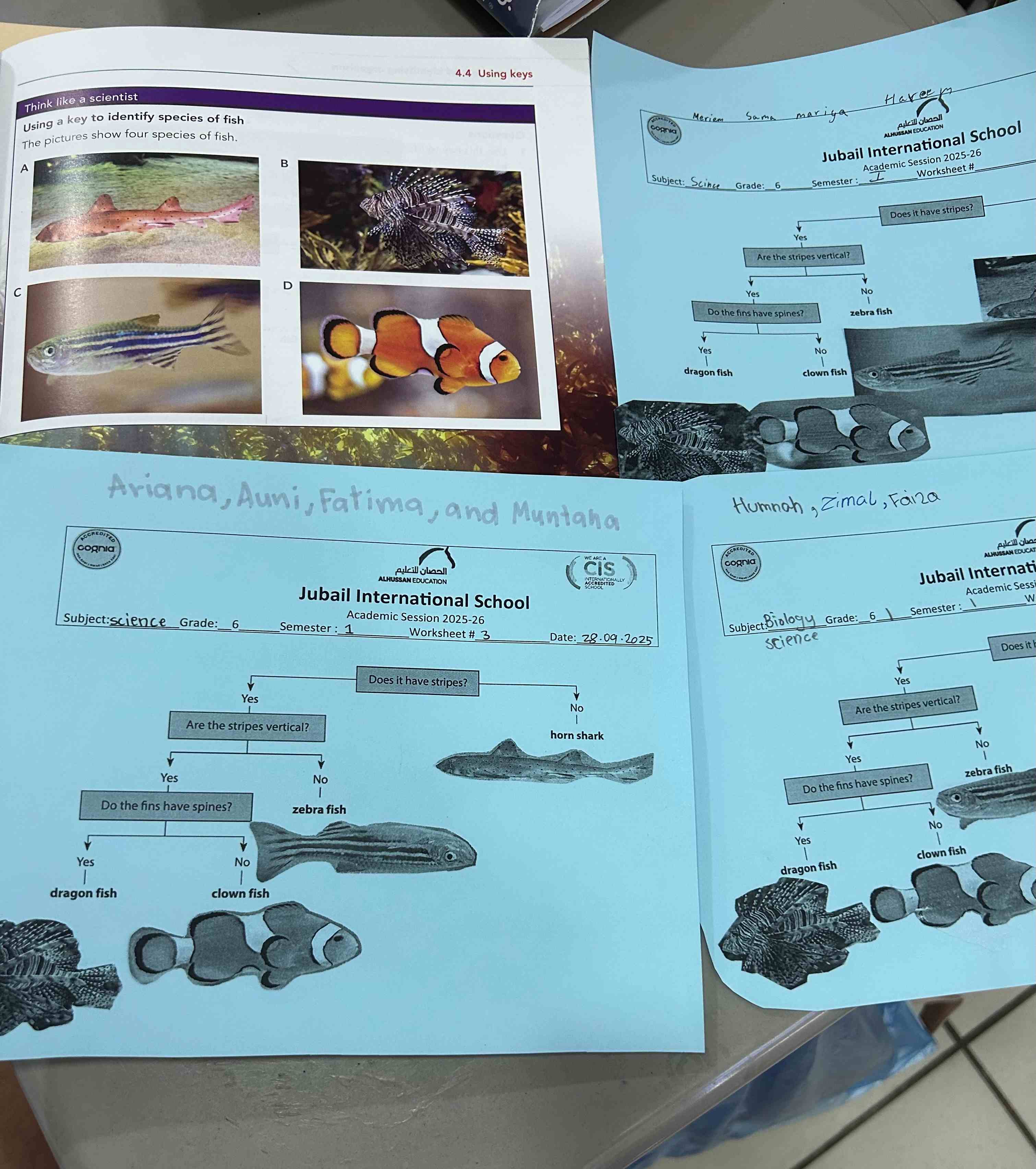 Grade 6-I girls worked in multicultural groups to identify fish species using classification keys. The activity strengthened their science skills and teamwork while making learning fun!