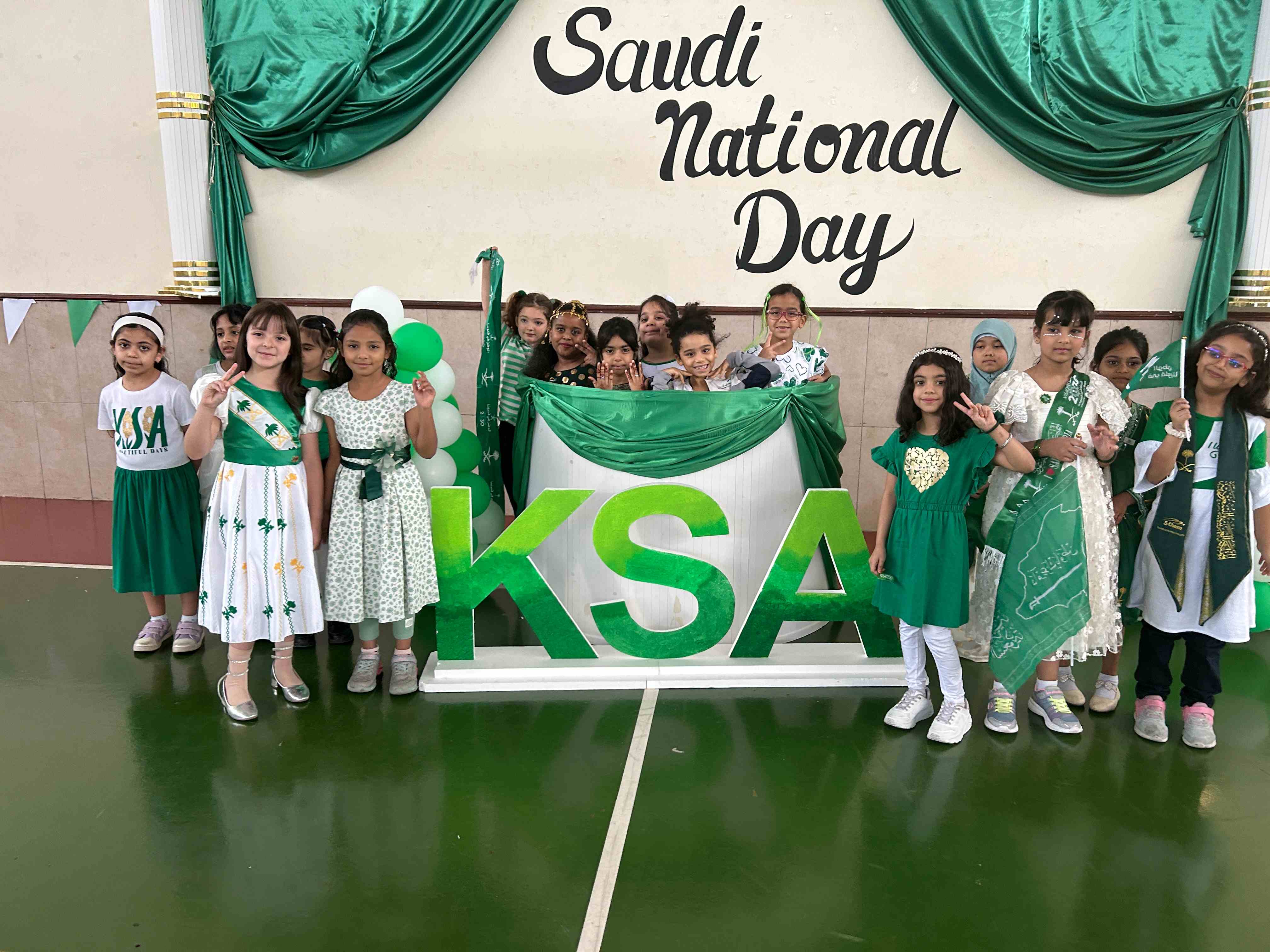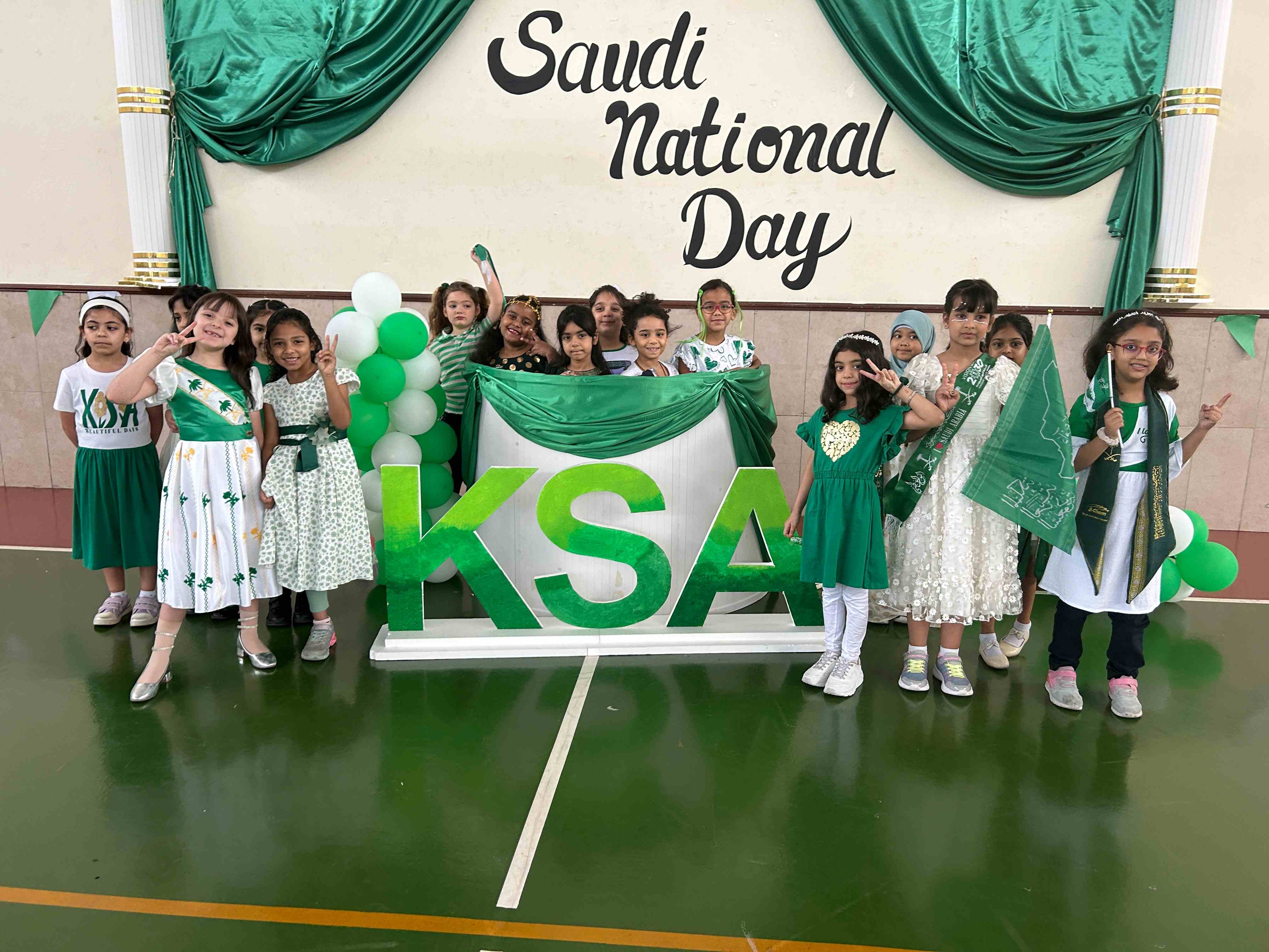 Grade 2-H students celebrated Saudi National Day in style, dressed in traditional attire and sharing sweets and gifts with friends. The unity and affection among students of all nationalities made the day truly special!