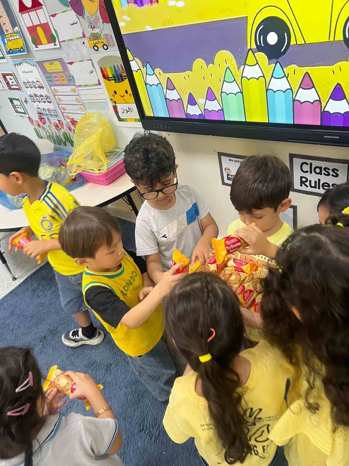 KG.2-H students arrived in bright yellow outfits and enjoyed fun-filled activities in a cheerfully decorated classroom — making learning joyful and memorable!