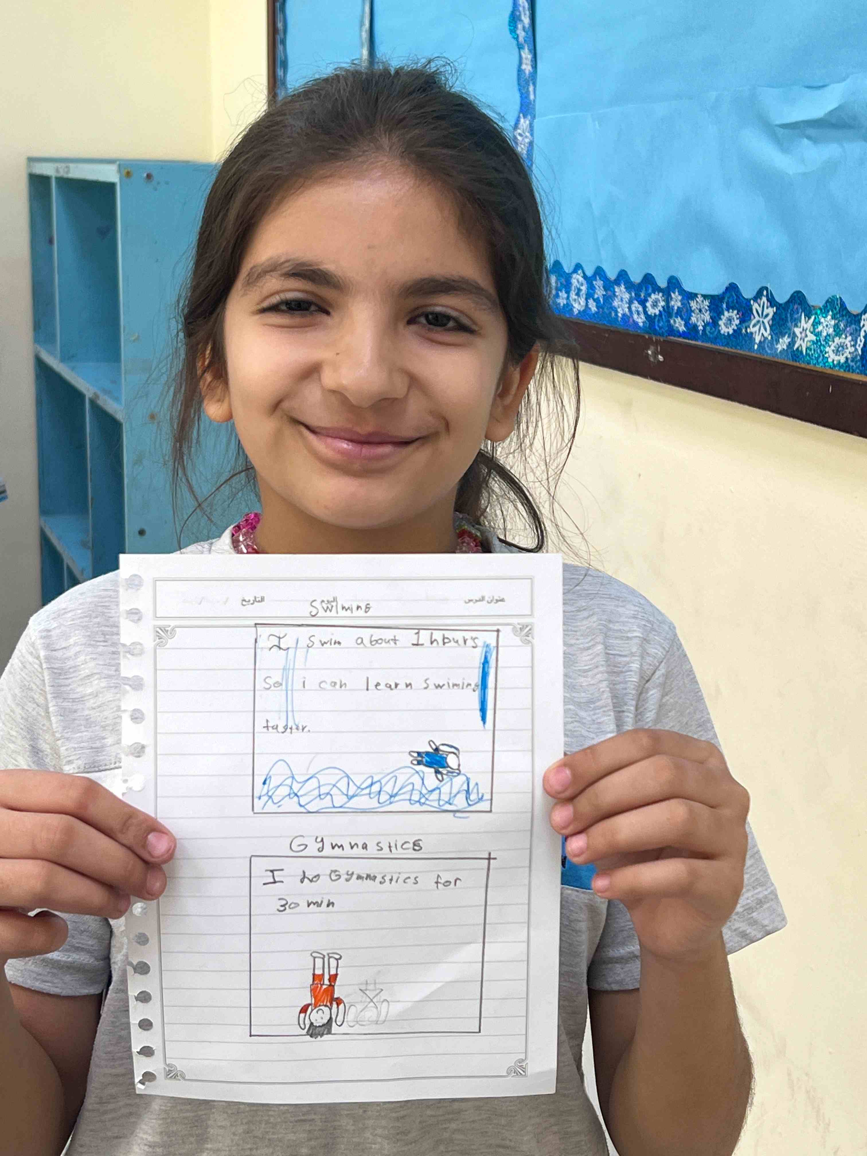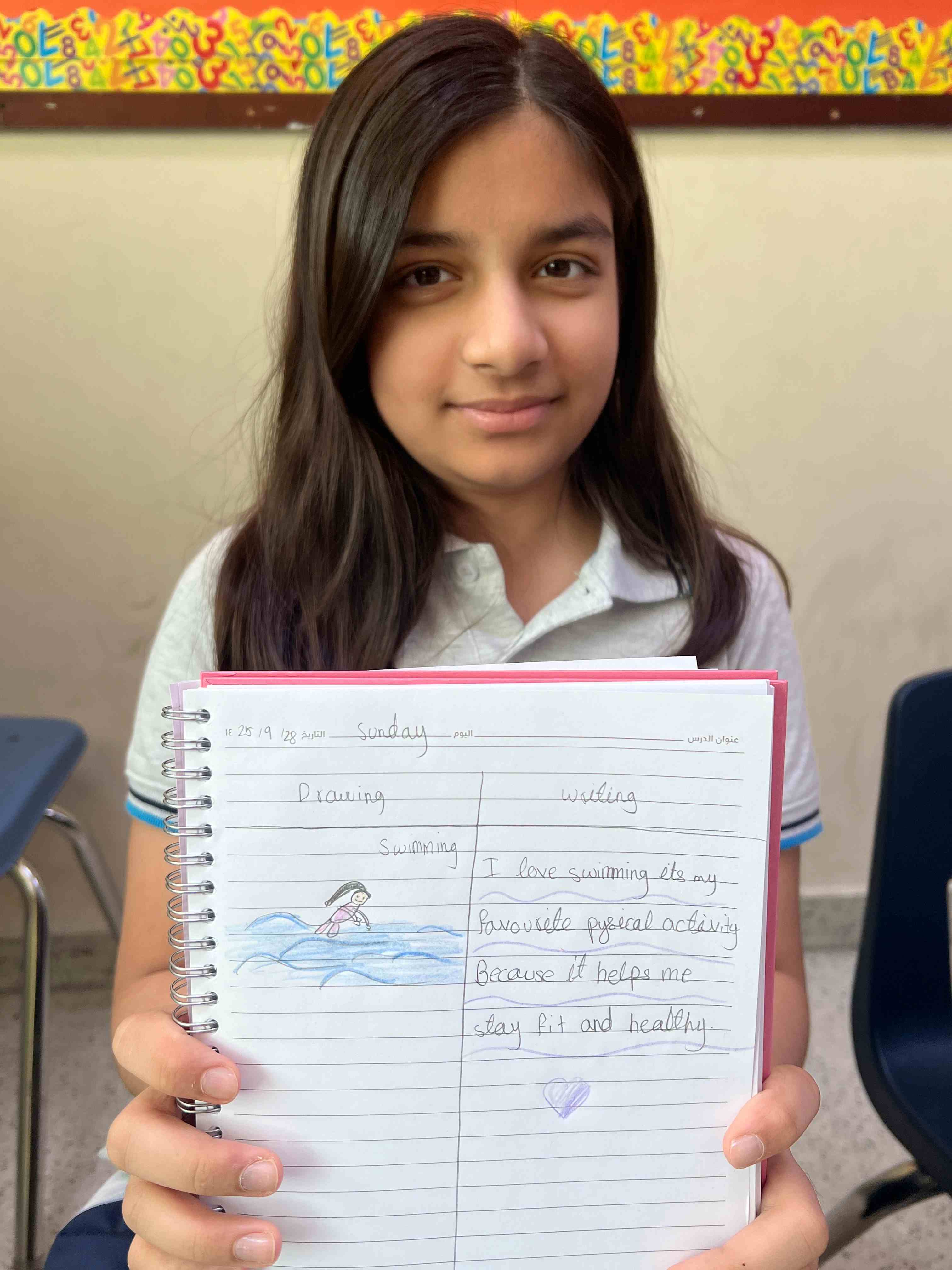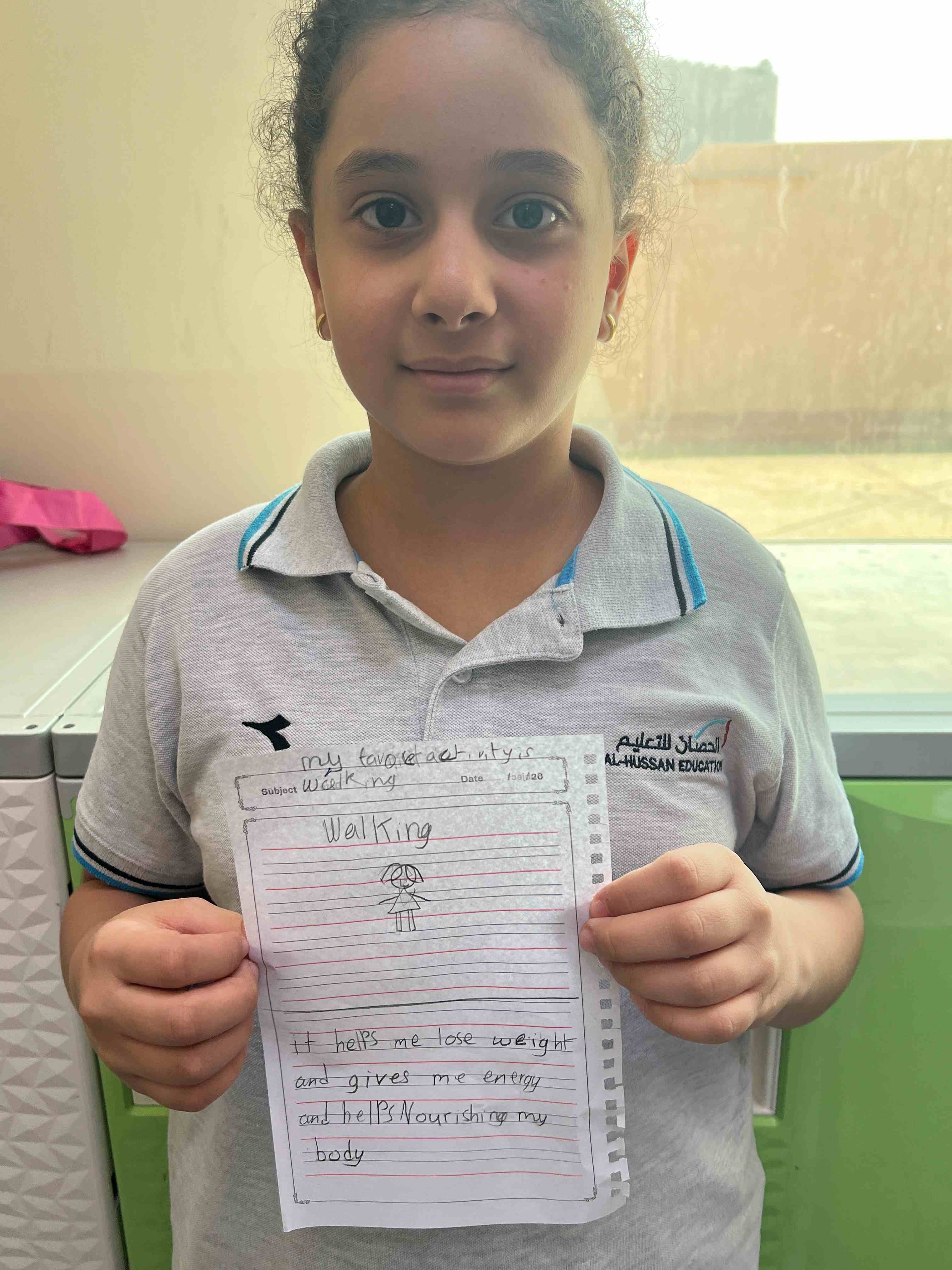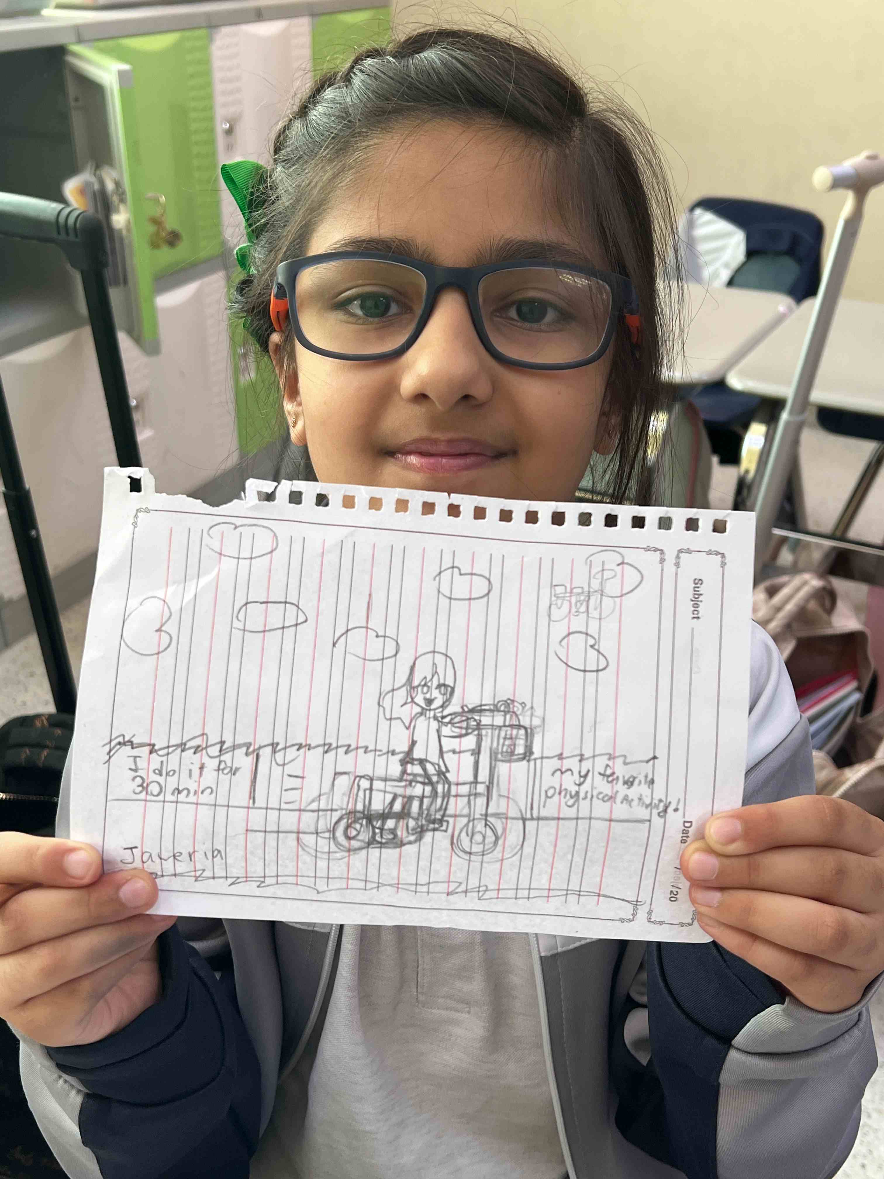 Grade 4 girls wrote and illustrated their favourite physical activities, sharing with excitement how much they enjoy staying active!