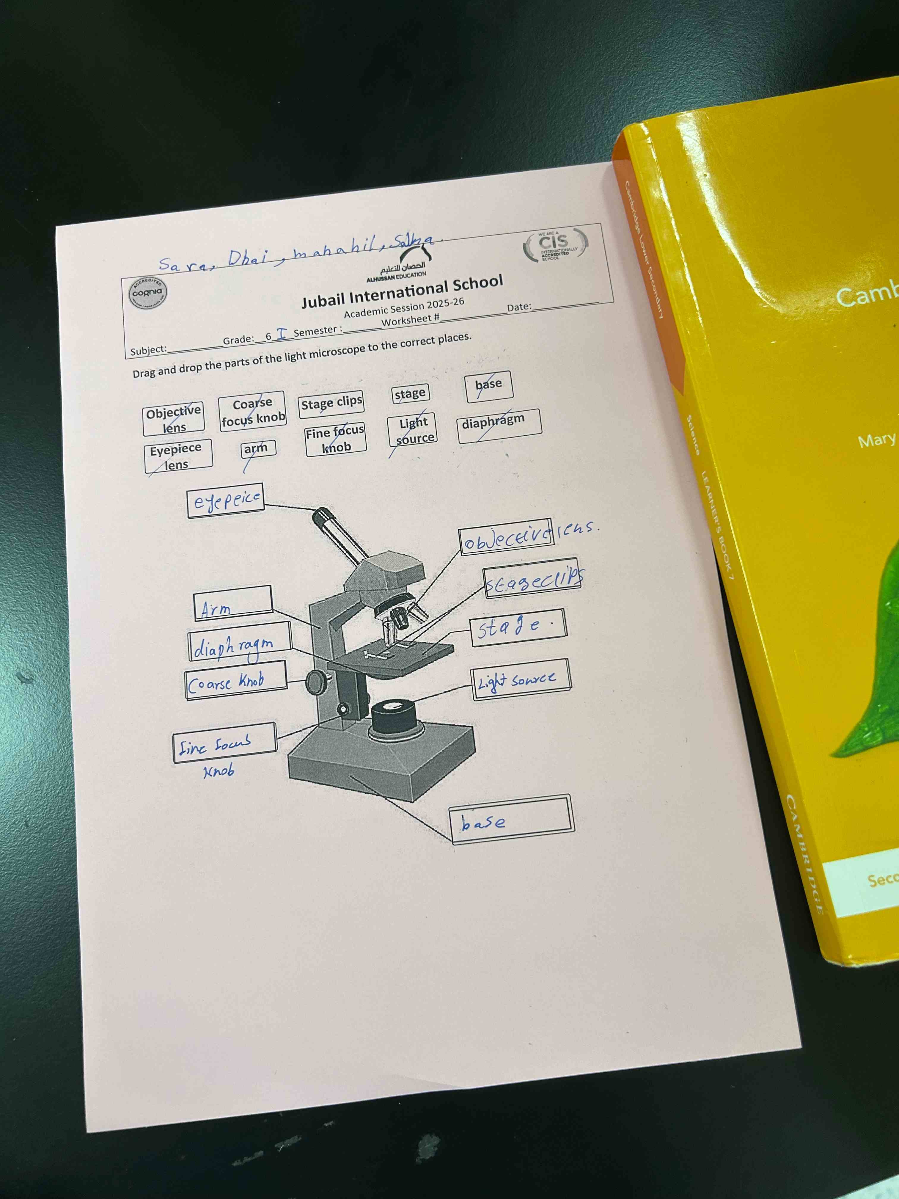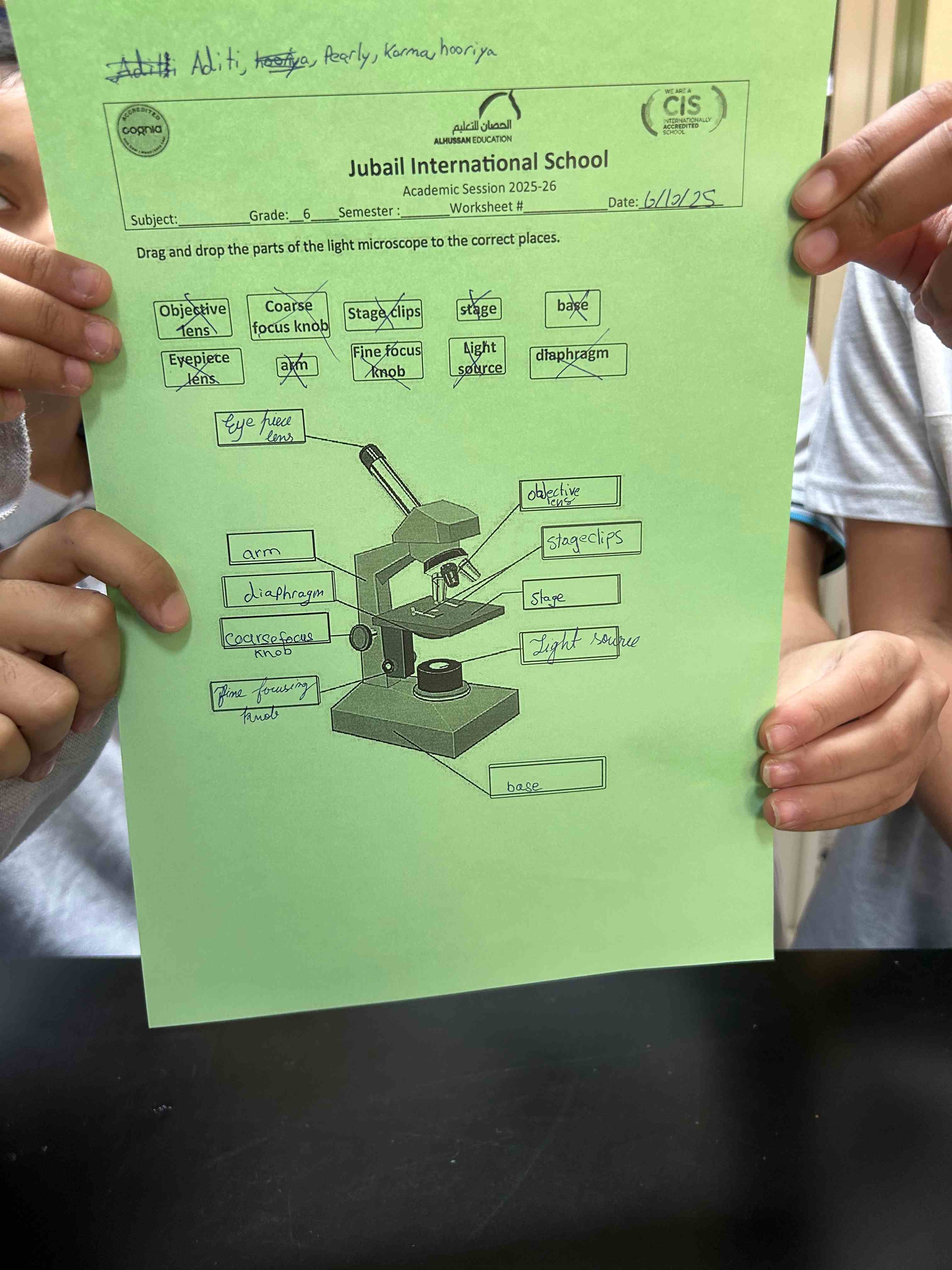 Grade 6-I girls had an engaging hands-on session in the science lab, where they explored the different parts of a microscope. They worked in groups to observe, discuss, and label each part through an interactive activity. A great step toward building their scientific skills!