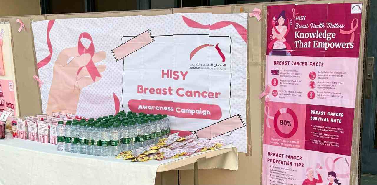 On Thursday, 16 October 2025, the girls’ section at AL Hussan International School- Yanbu, held a Breast Cancer Awareness Campaign aimed at spreading knowledge and support within the school community. The event featured informative sessions and engaging activities designed to educate students about the importance of early detection and support for those affected. Dressed in pink to show solidarity, students and staff came together to promote awareness and hope in the fight against breast cancer.