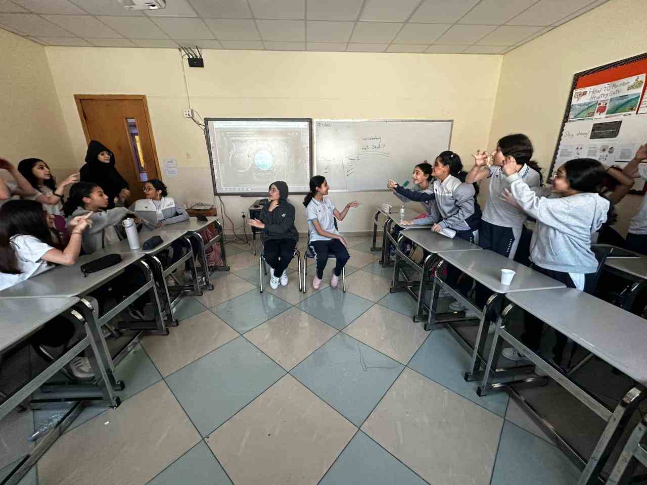 Grade 7 are enjoying their English sessions since game-based learning is an essential part of our strategies. Hot Seat Challenge in action quick thinking, acting, confident speaking!