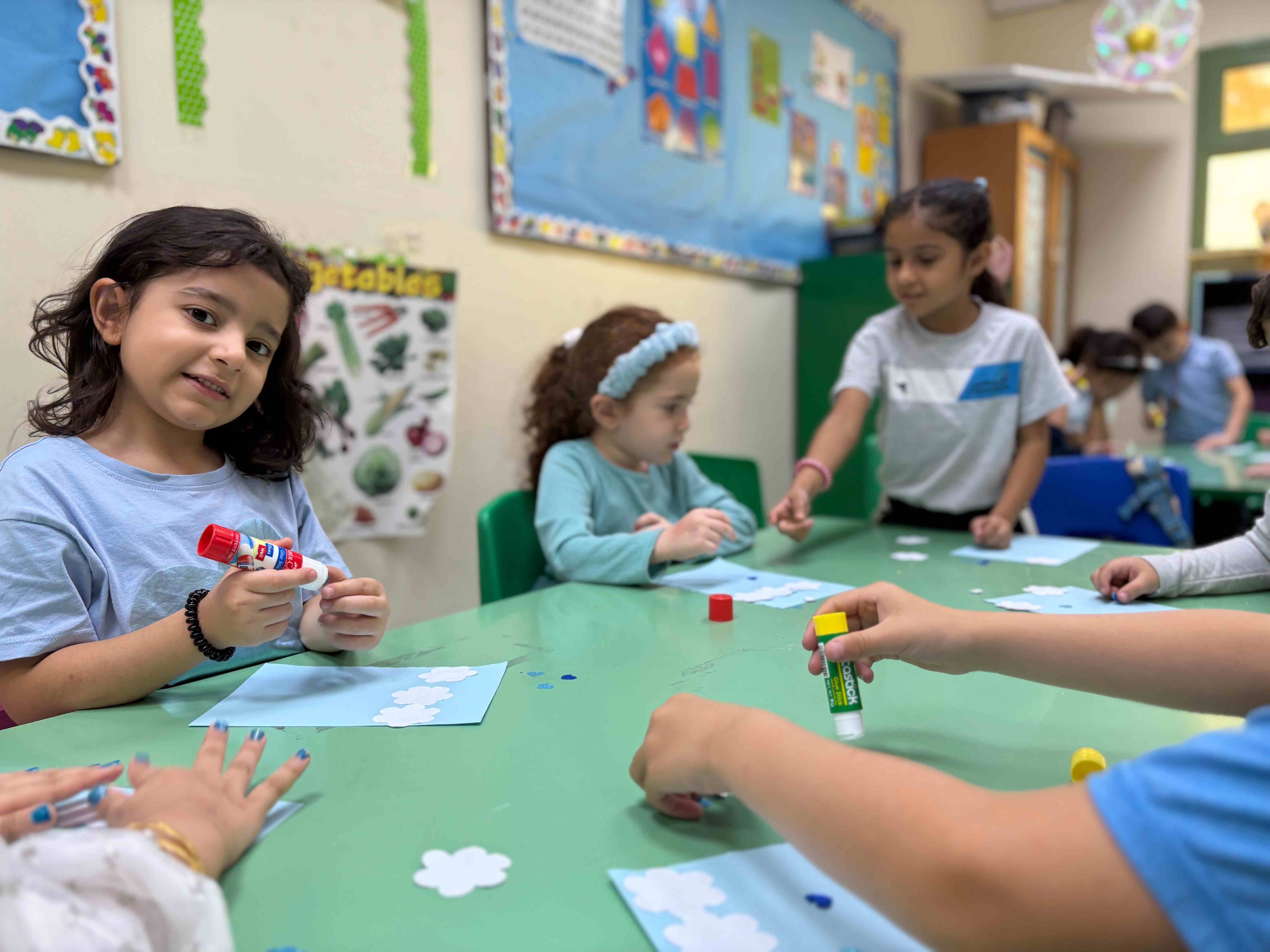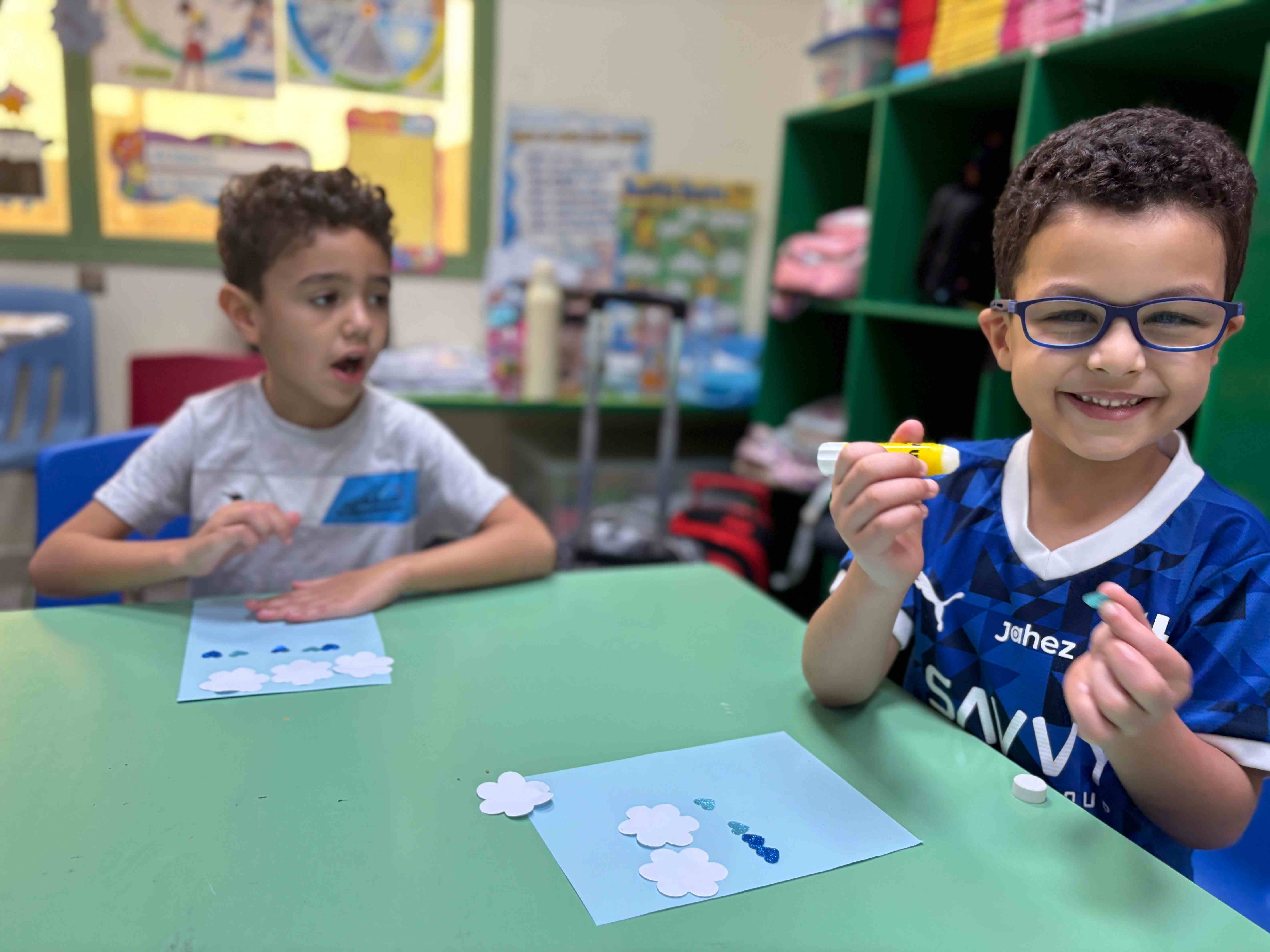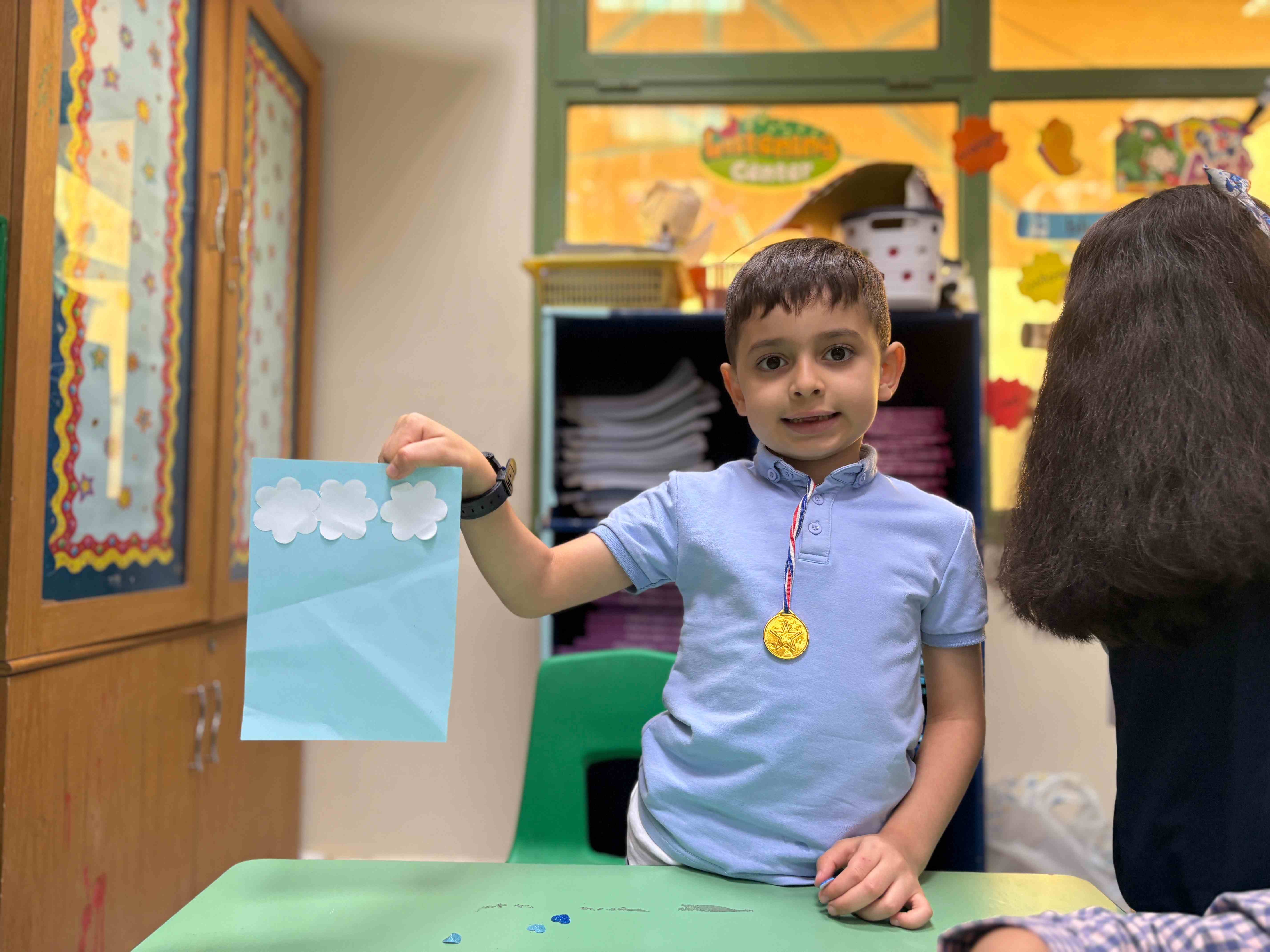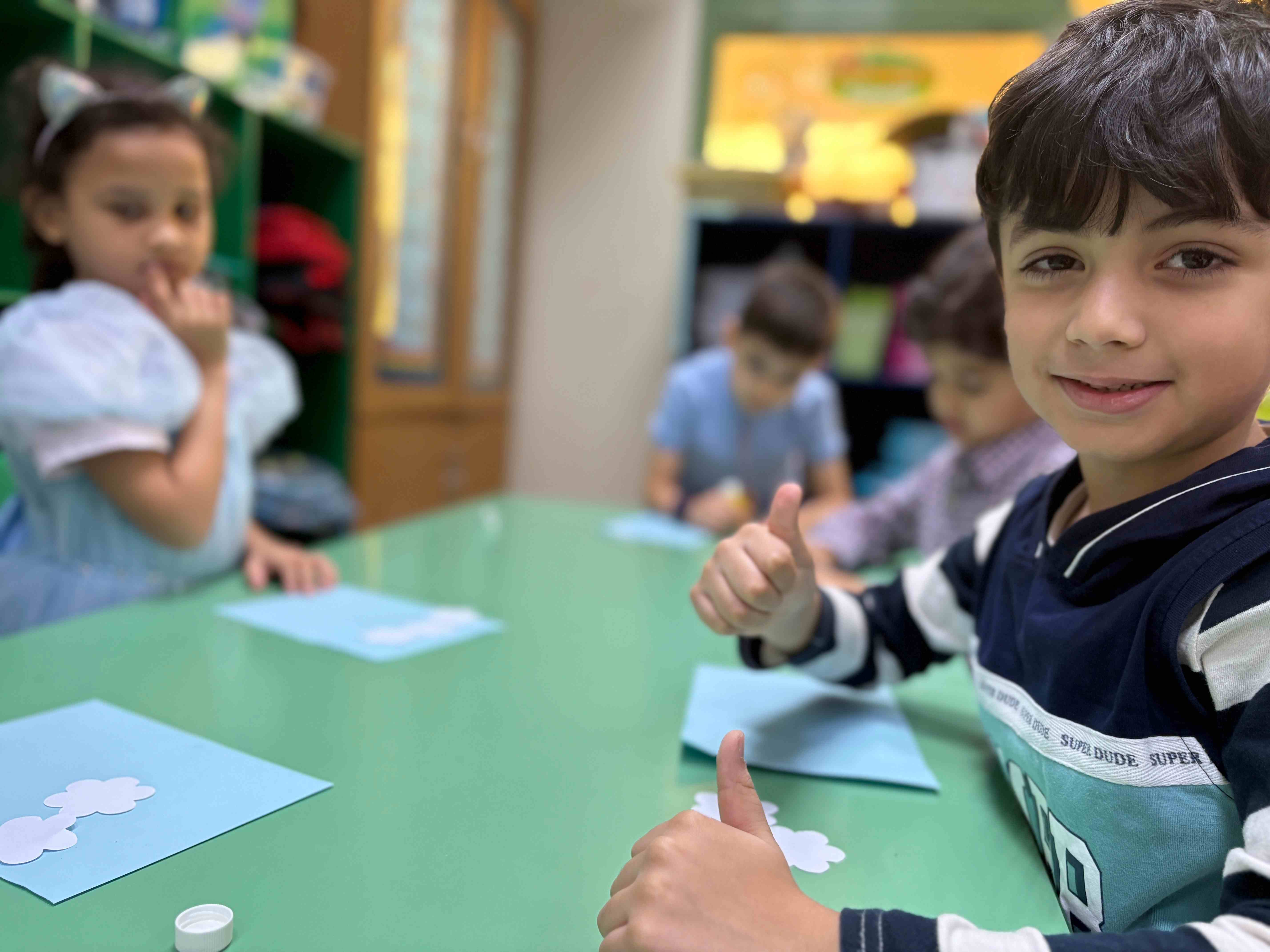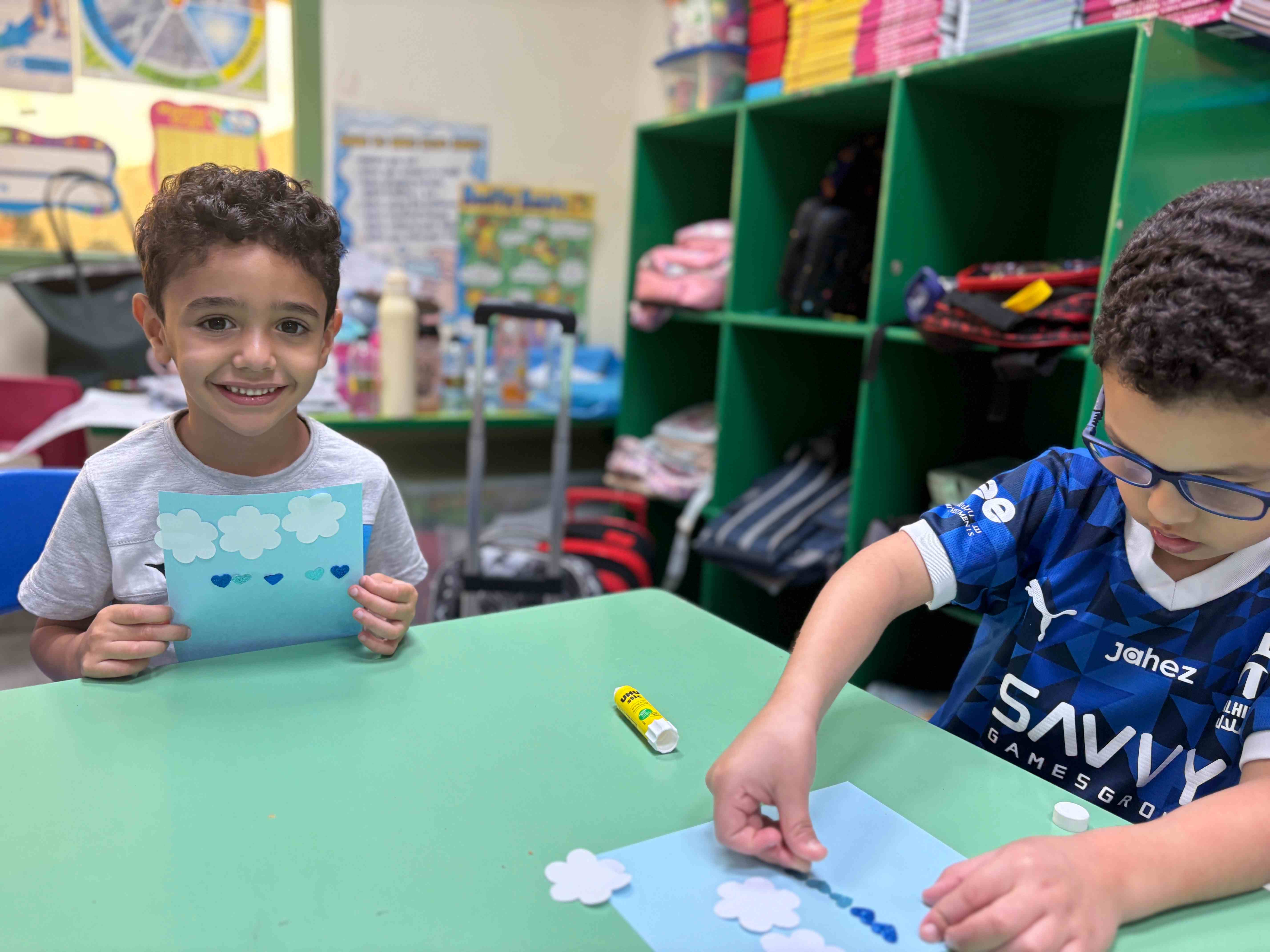 KG3-H students enjoyed a fun Blue Day celebration. They created rainy cloud crafts using different shades of blue and explored blue objects around the classroom.