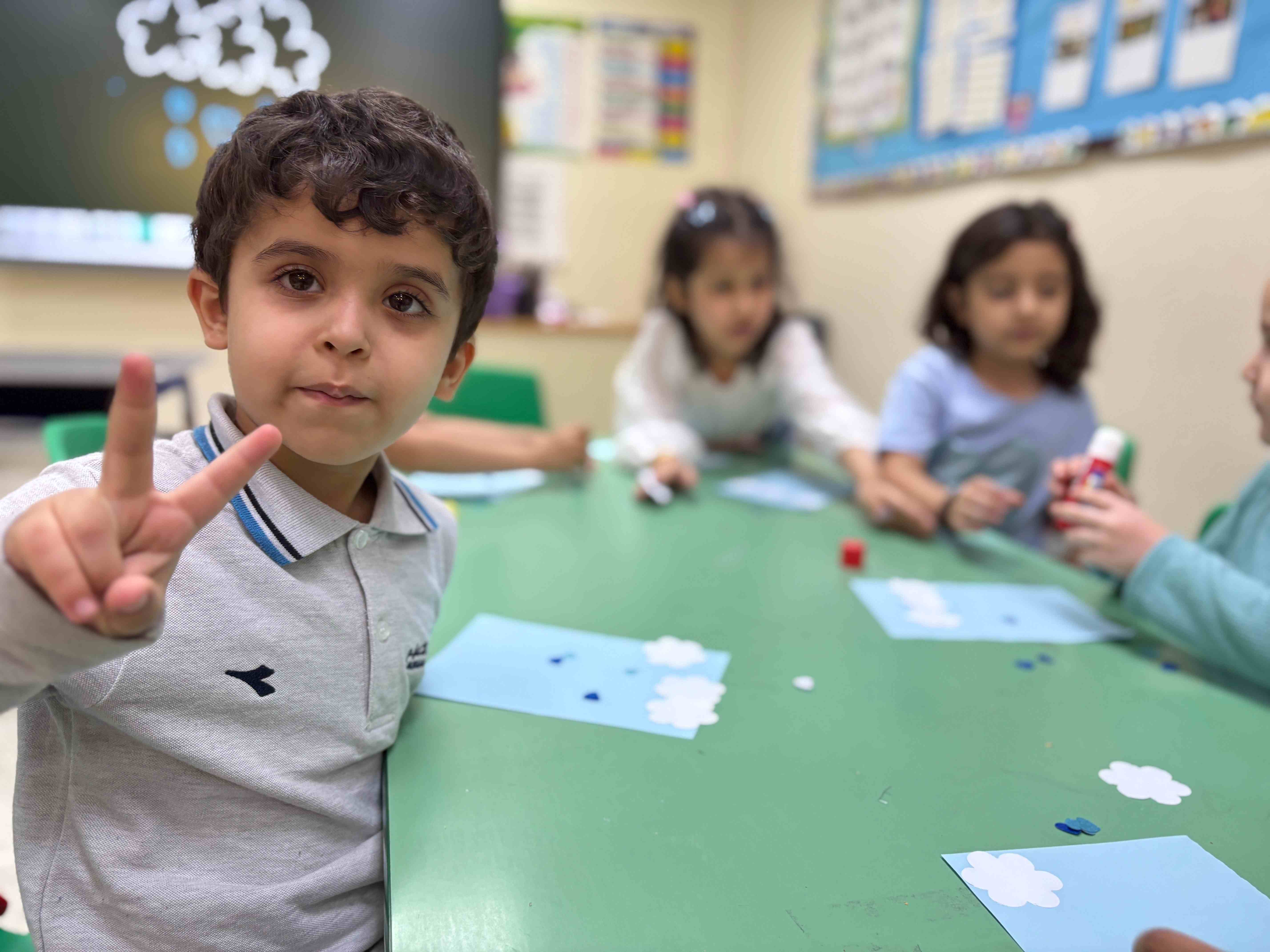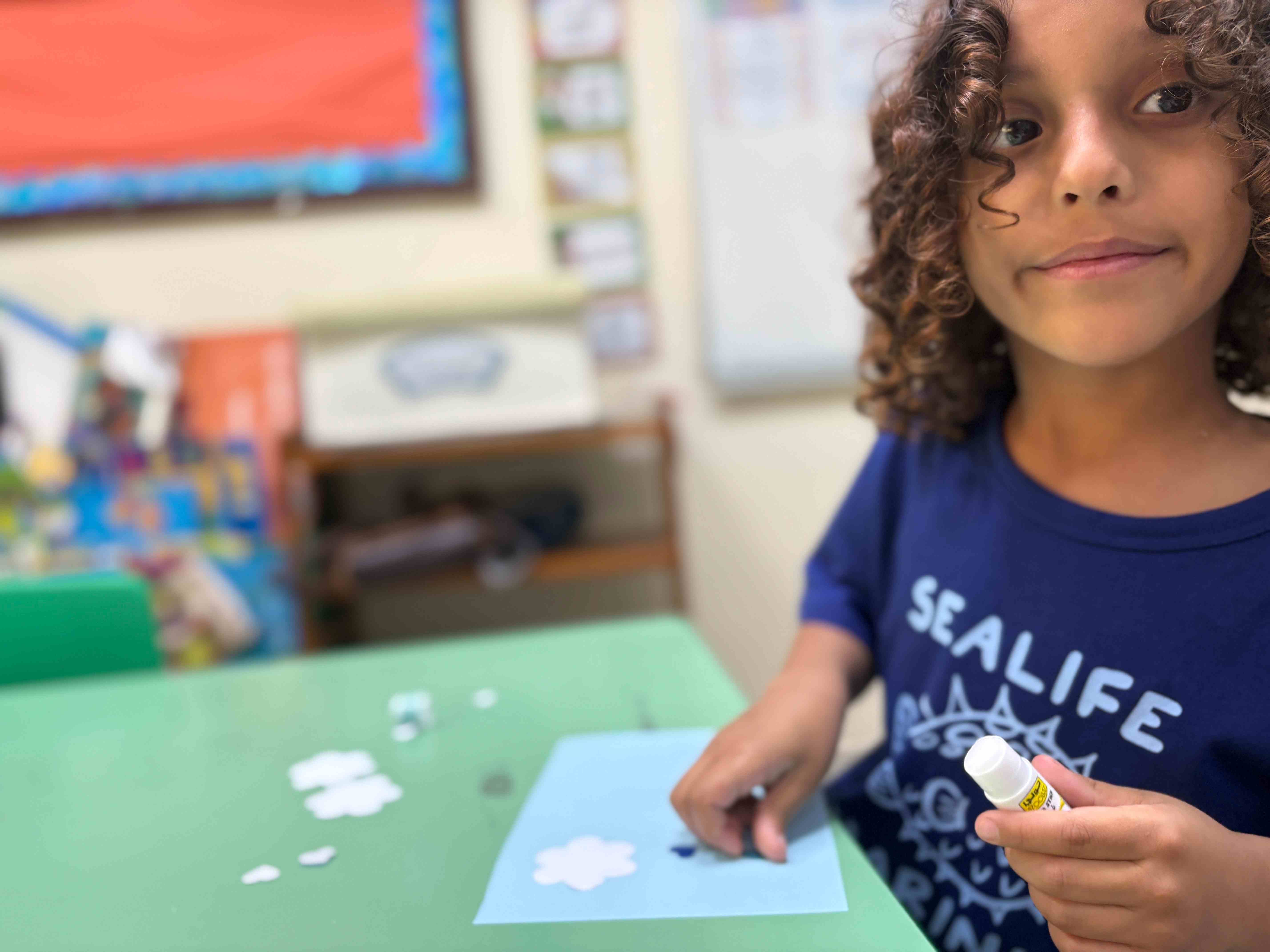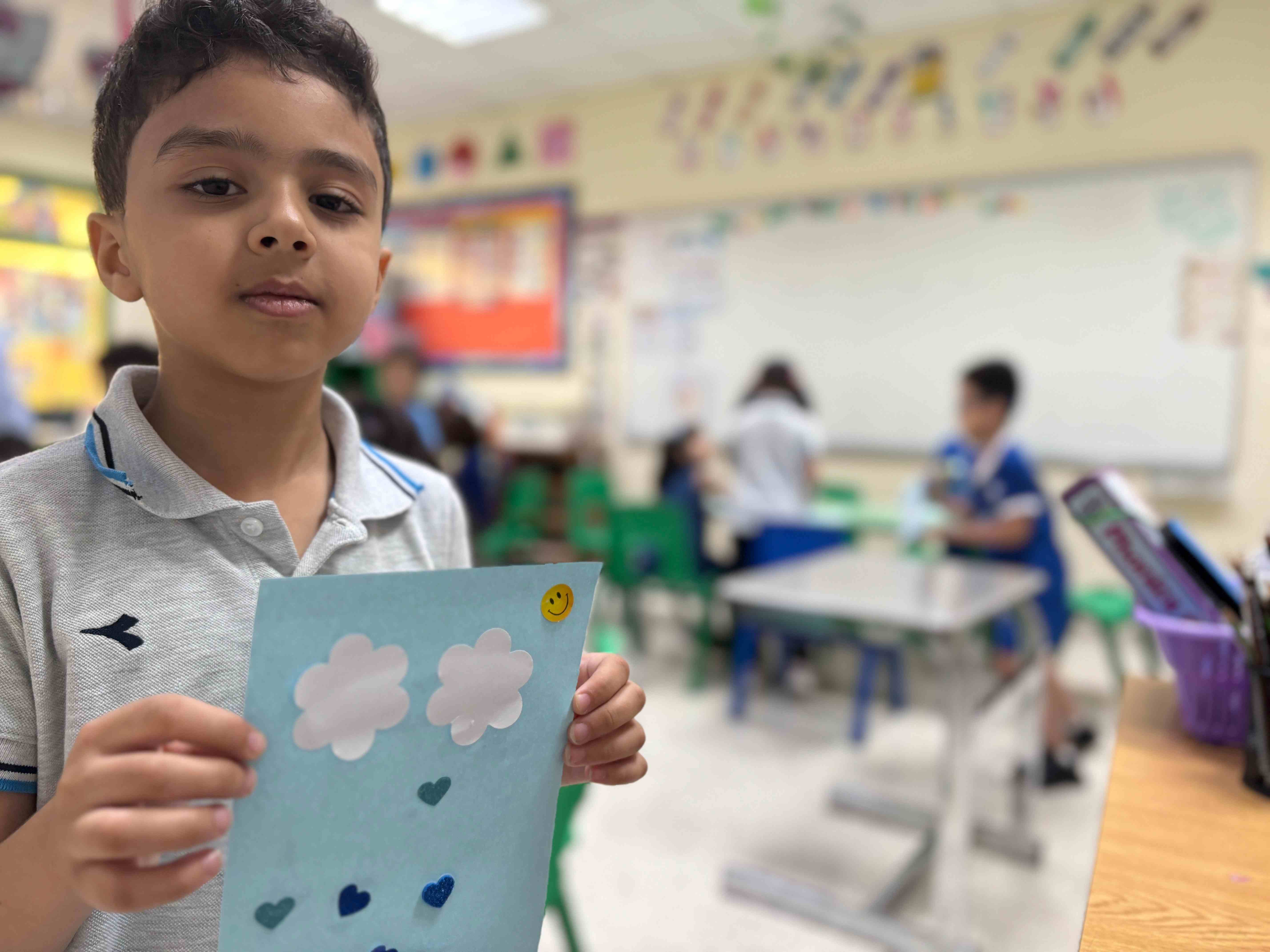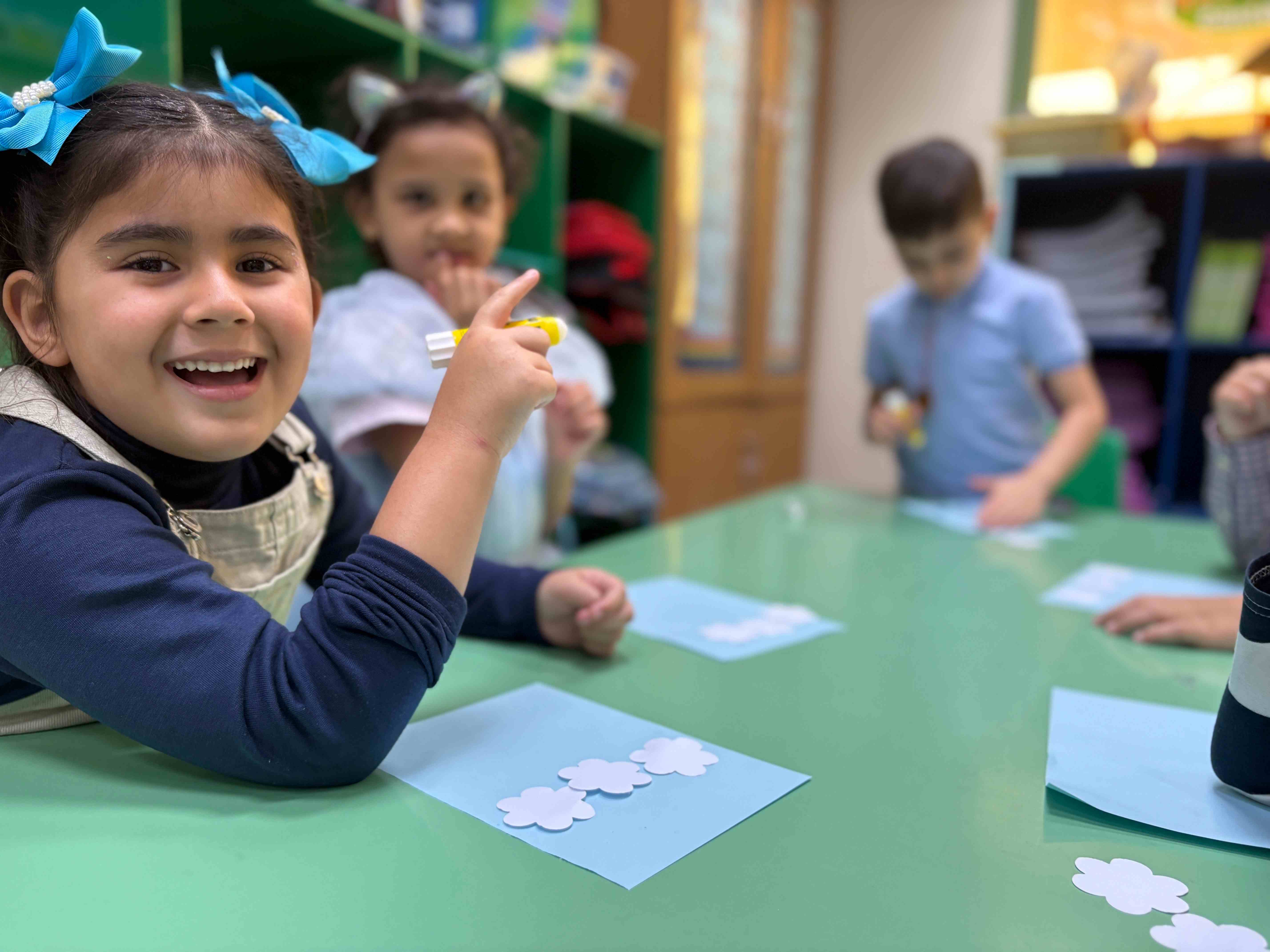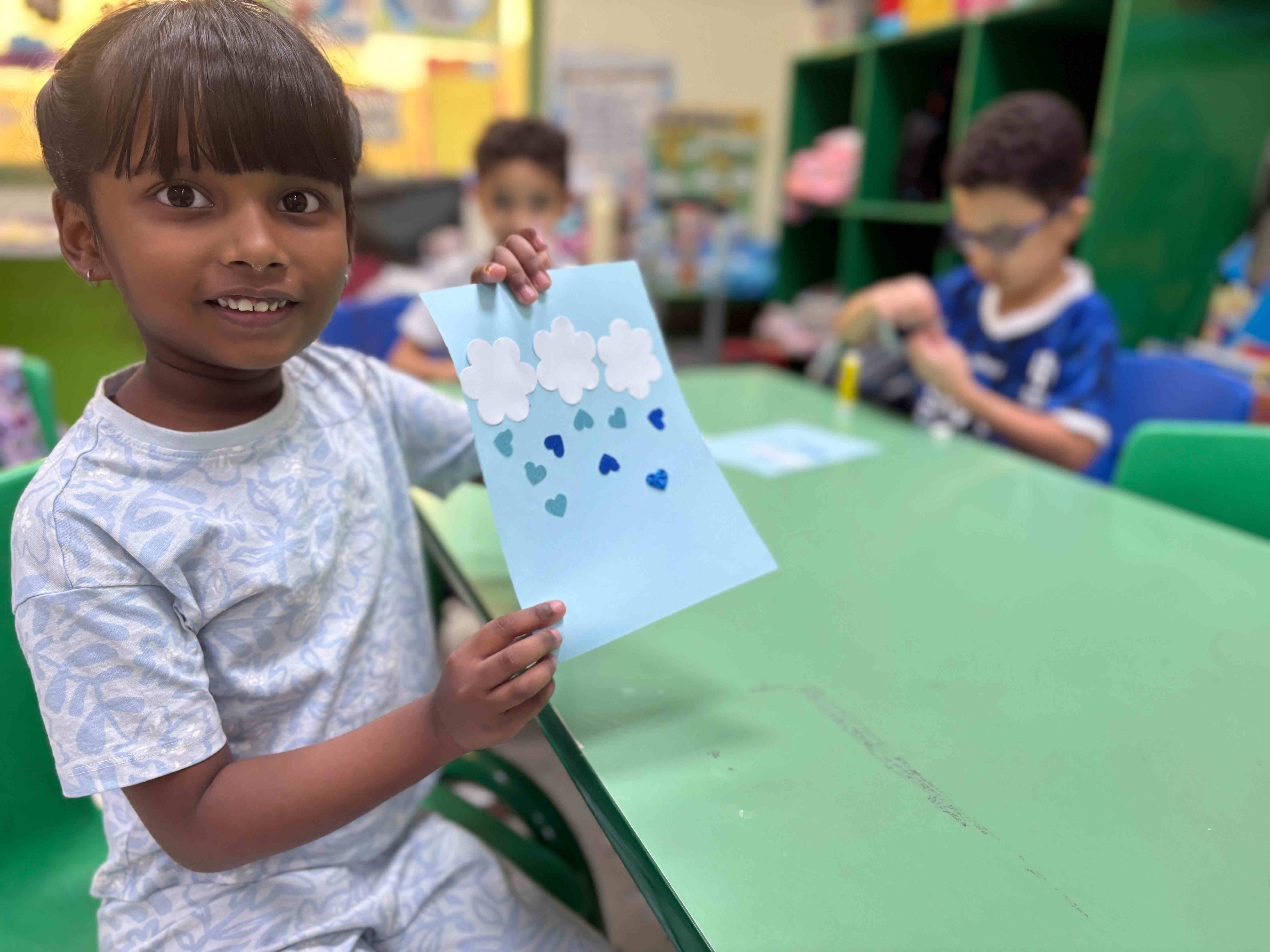 KG3-H students enjoyed a fun Blue Day celebration. They created rainy cloud crafts using different shades of blue and explored blue objects around the classroom.