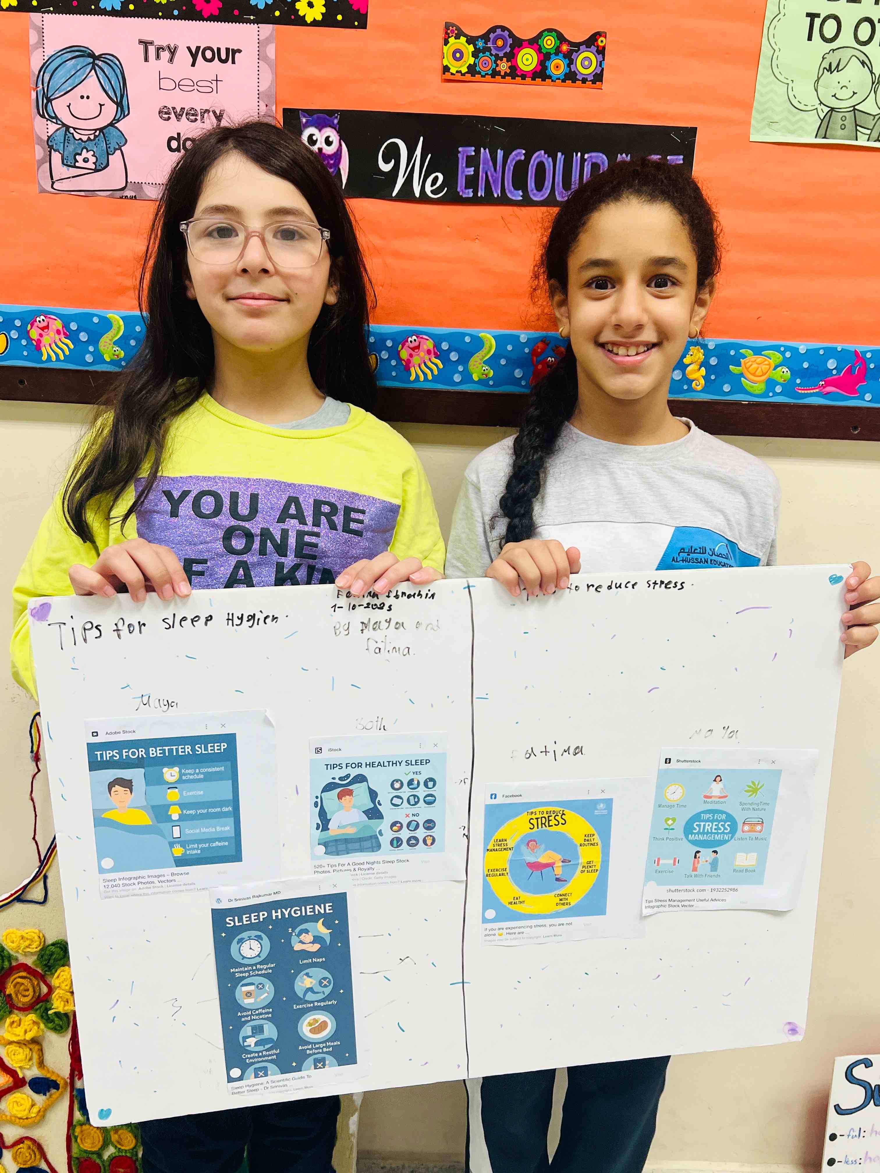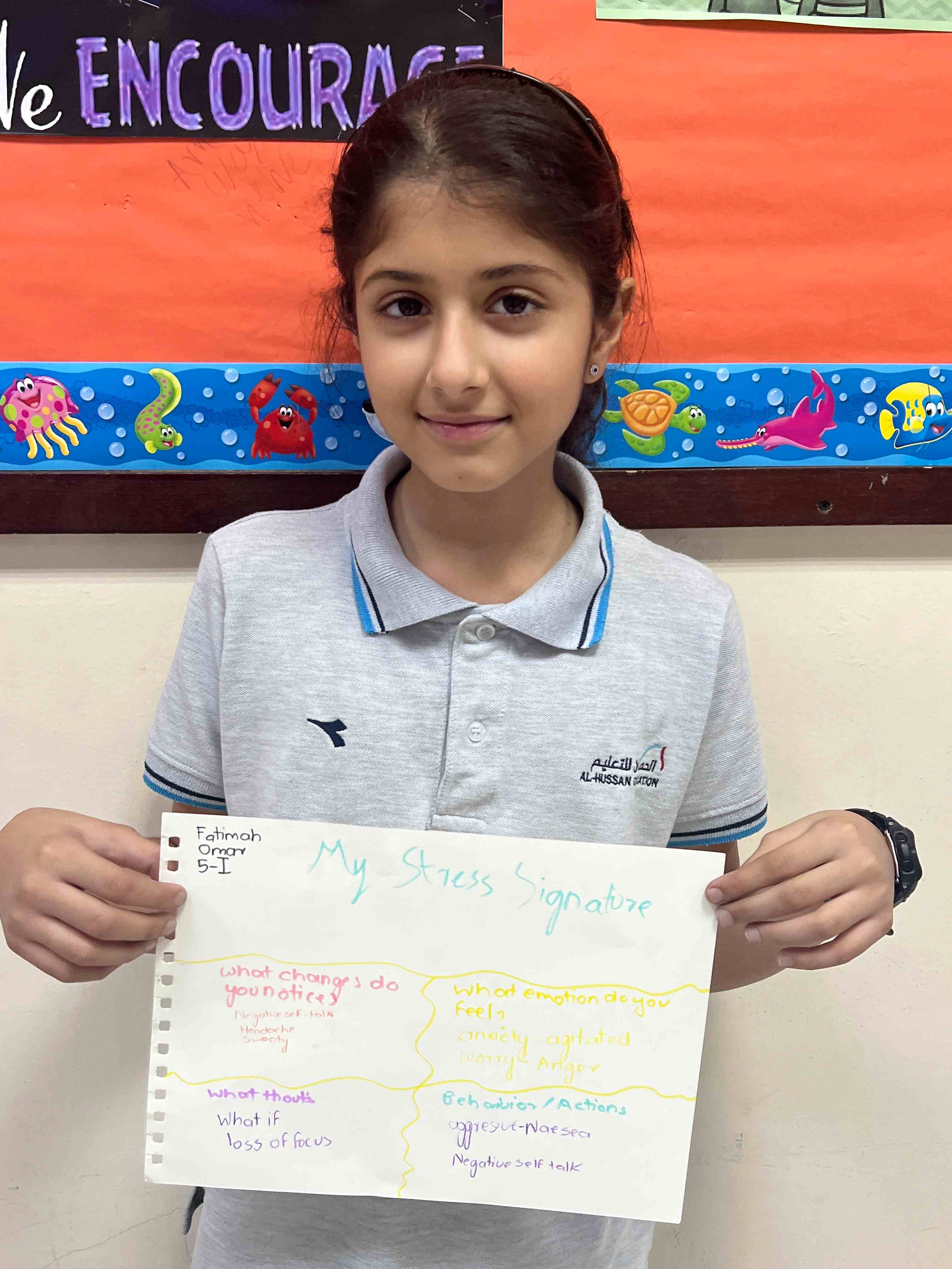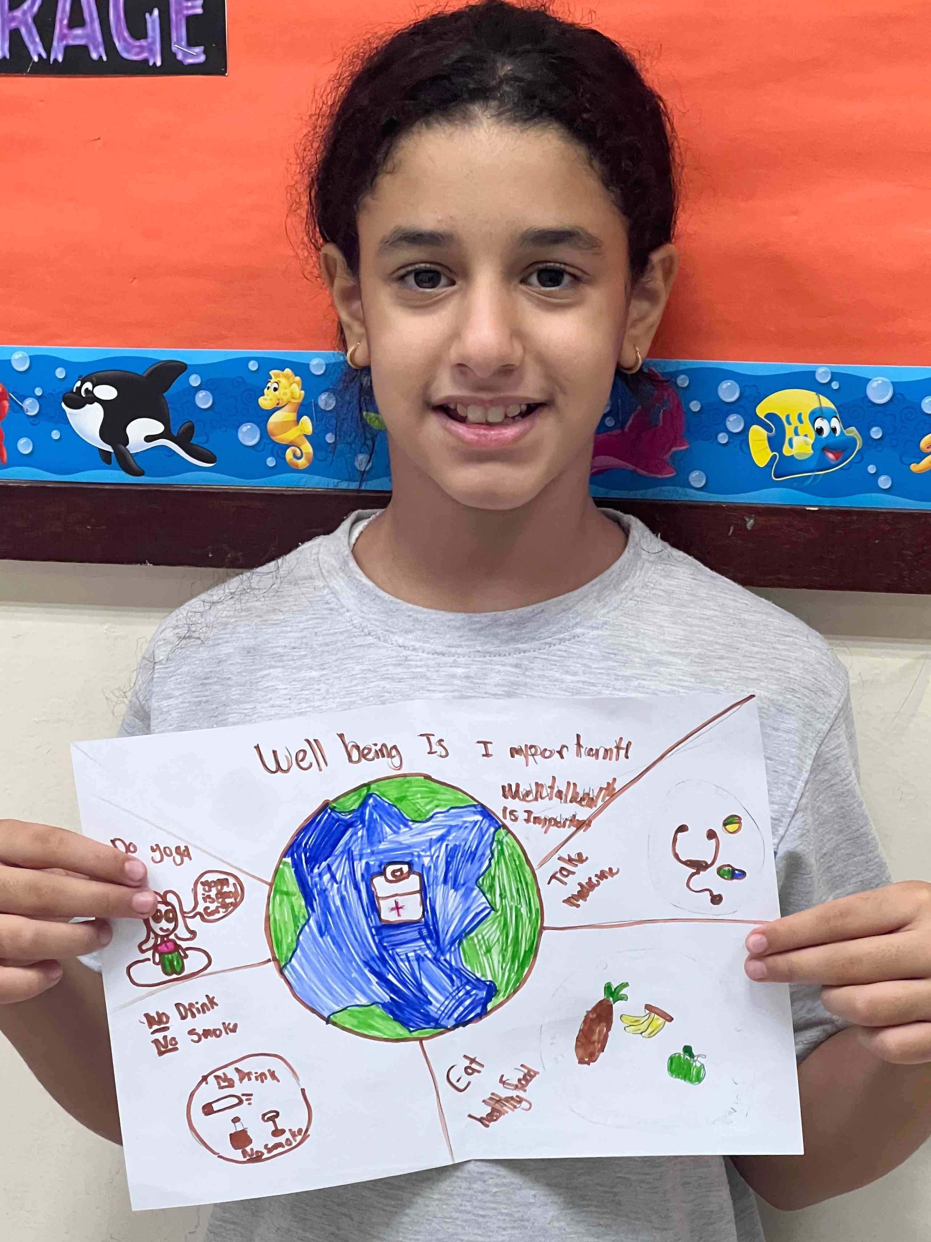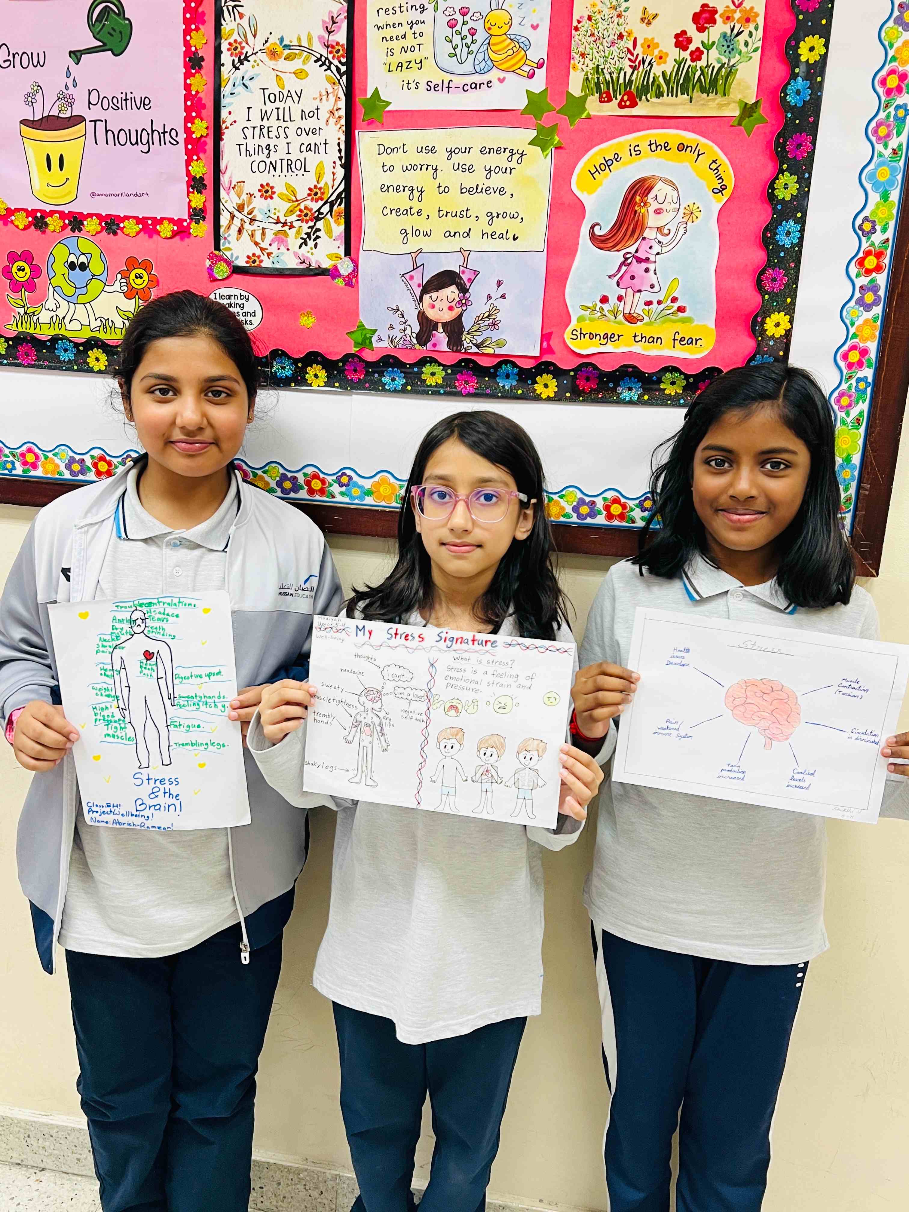 Are Grade 5 students took part in a well-being activity on stress management, creating colorful posters and charts to share positive ways to cope — like staying active, practicing mindfulness, and maintaining balance. The activity promoted creativity, open discussion, and self-awareness, highlighting the importance of emotional well-being