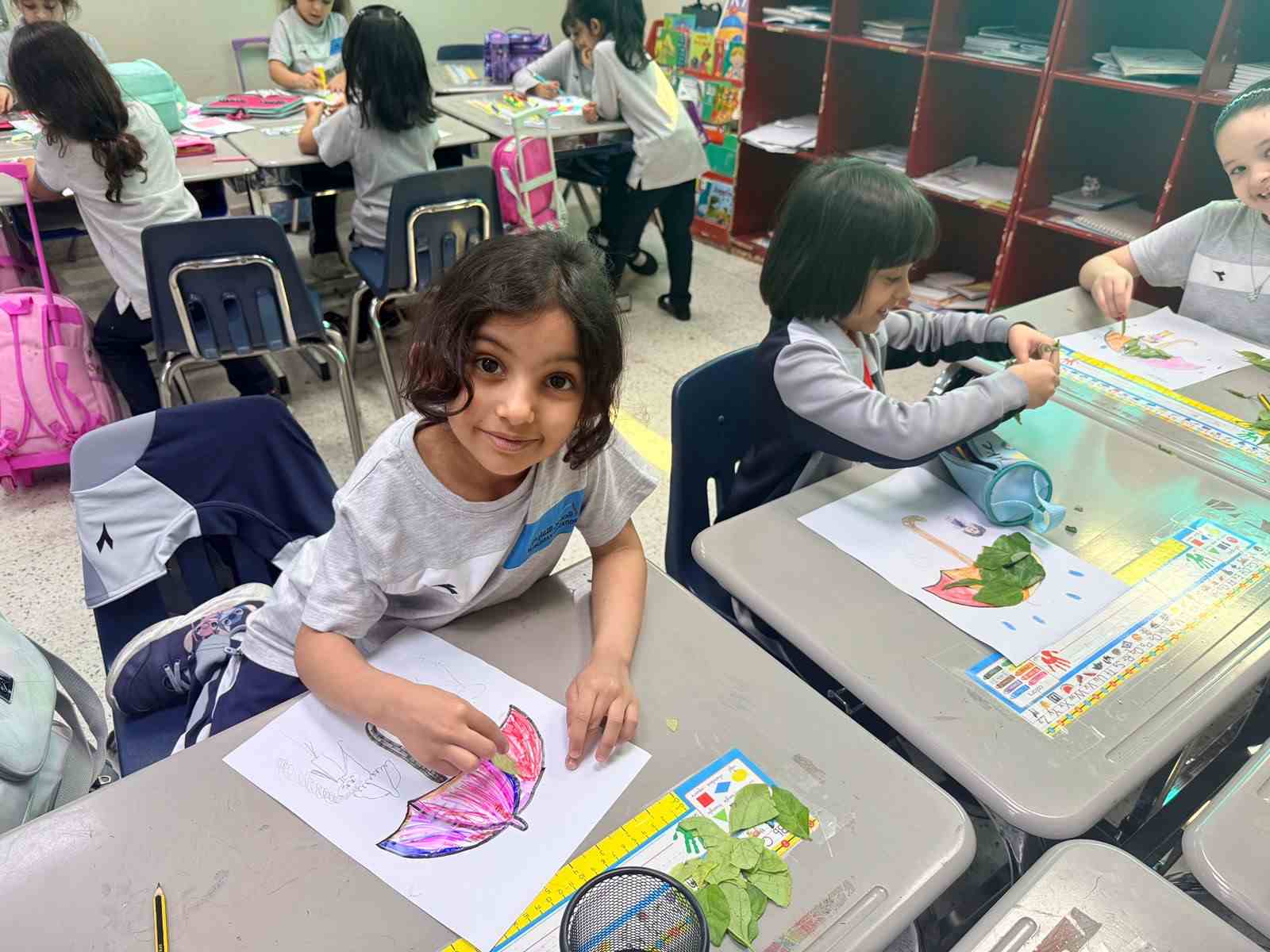 Are Grade 1H girls enjoyed a fun STEM activity exploring how nature inspires inventions. They discovered how ideas like the shape of a leaf can help create useful tools such as umbrellas