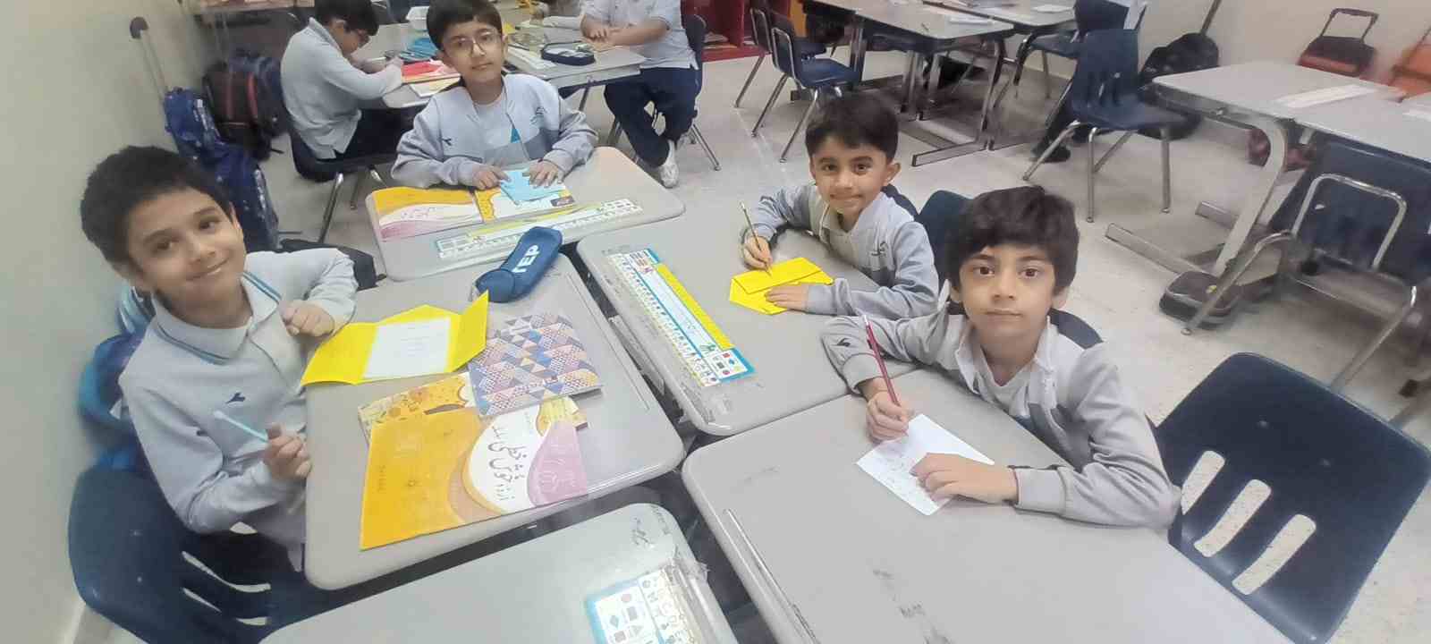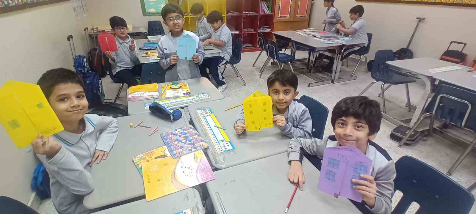 Little hands, big dreams! are Grade 2-O and 2-P students wrote lovely Nasr Nigari pieces on “Mera Ghar” and crafted adorable paper homes, showcasing their creativity and Urdu writing skills.