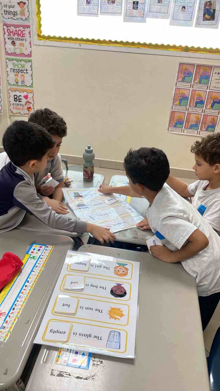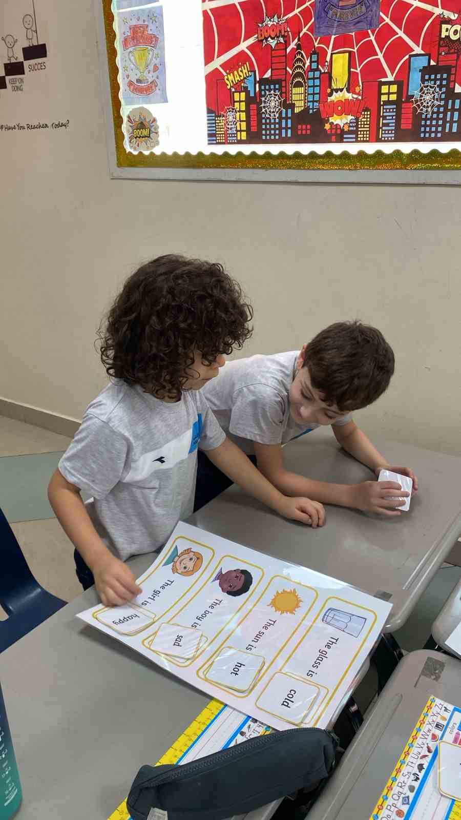 Students work together in small groups to read sentences and choose the correct adjective that best describes the noun. Each group discusses their answers and explains why they chose that adjective. This activity helps students practice vocabulary, improve teamwork, and understand how adjectives describe nouns.