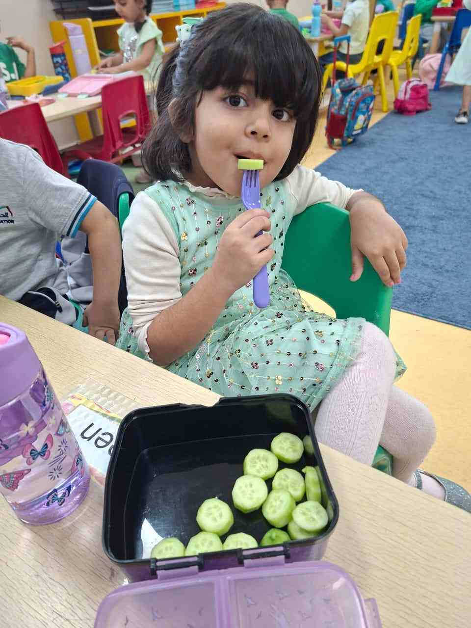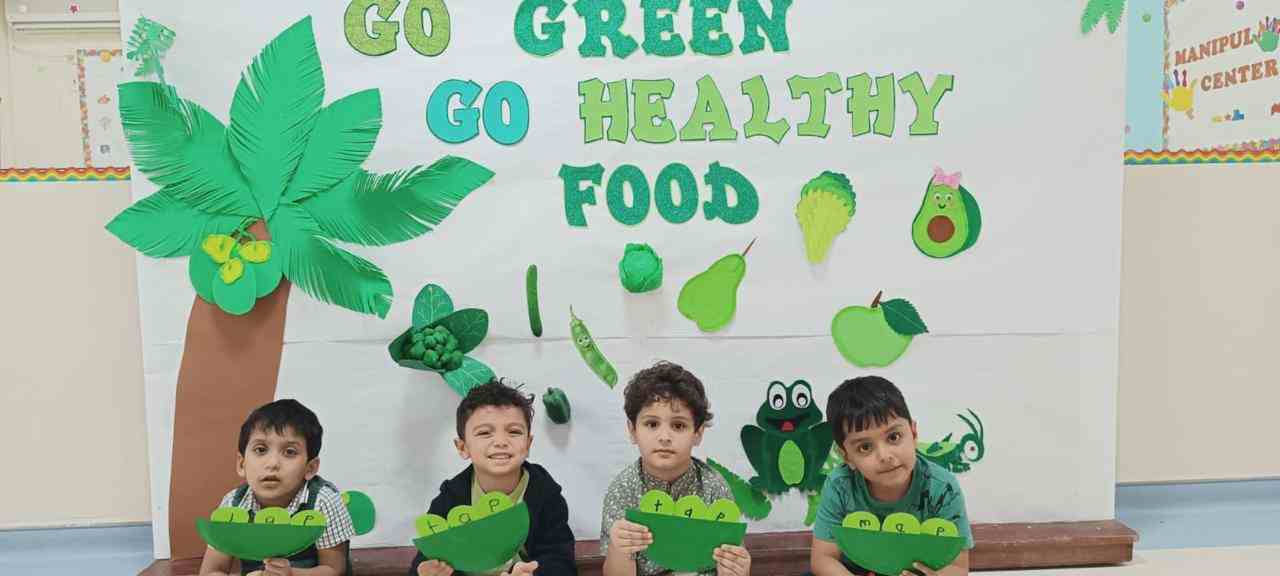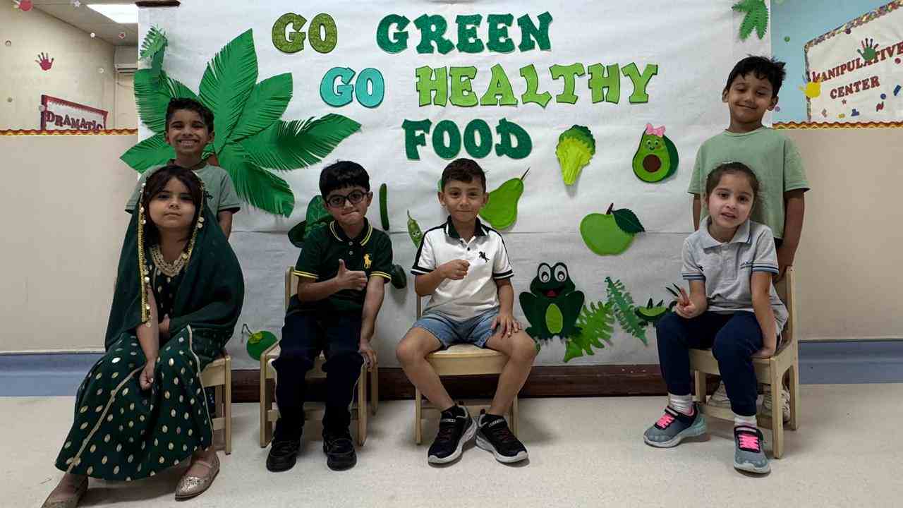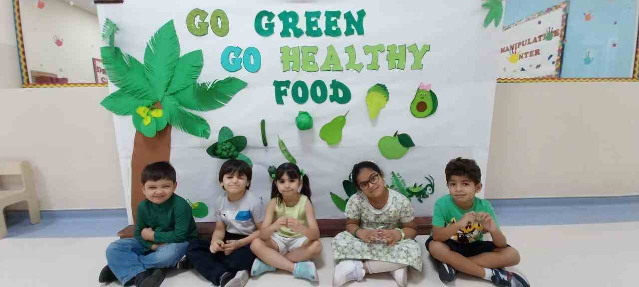 In addition to this, the day highlighted our wellness initiative — “Healthy Snack, Healthy Student” — encouraging our young learners to bring healthy green foods in their lunch boxes. From crunchy cucumbers and fresh lettuce to juicy green apples and kiwis, the students proudly embraced the importance of eating nutritious meals for a healthy lifestyle