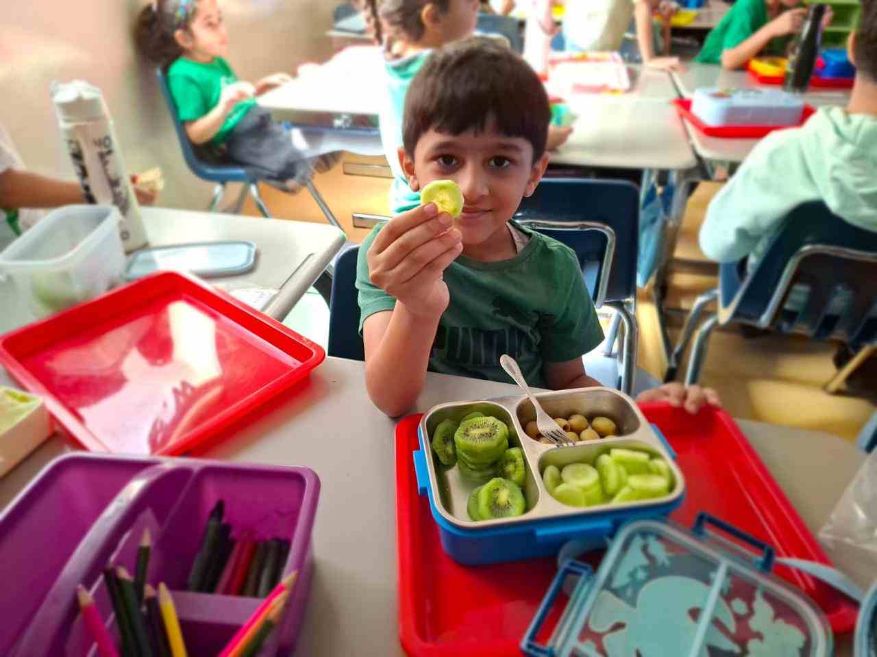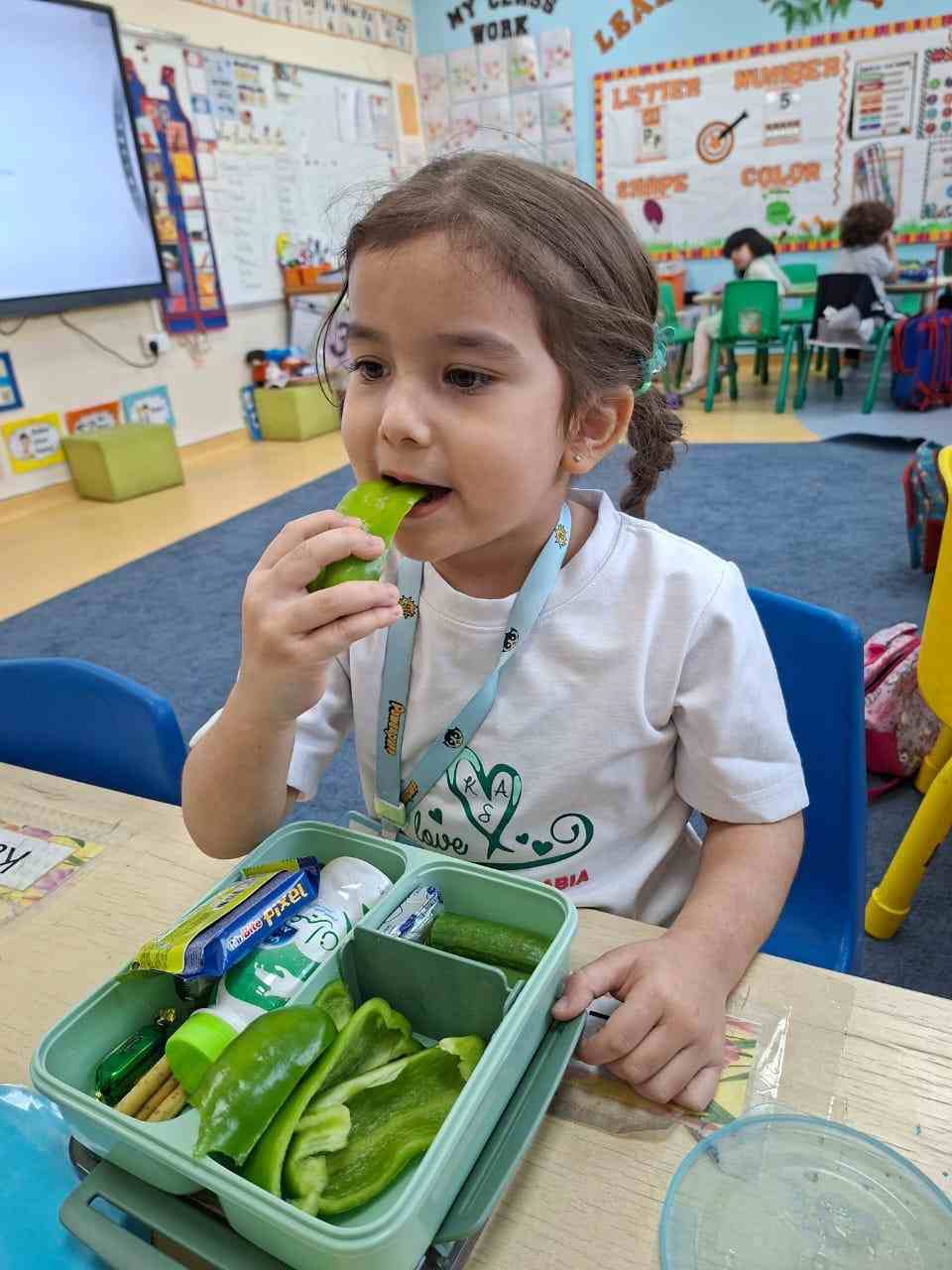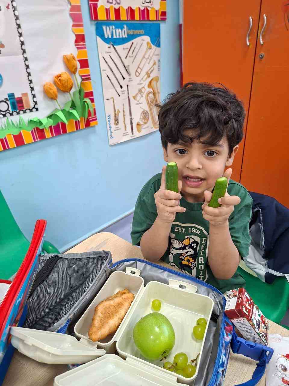 In addition to this, the day highlighted our wellness initiative — “Healthy Snack, Healthy Student” — encouraging our young learners to bring healthy green foods in their lunch boxes. From crunchy cucumbers and fresh lettuce to juicy green apples and kiwis, the students proudly embraced the importance of eating nutritious meals for a healthy lifestyle