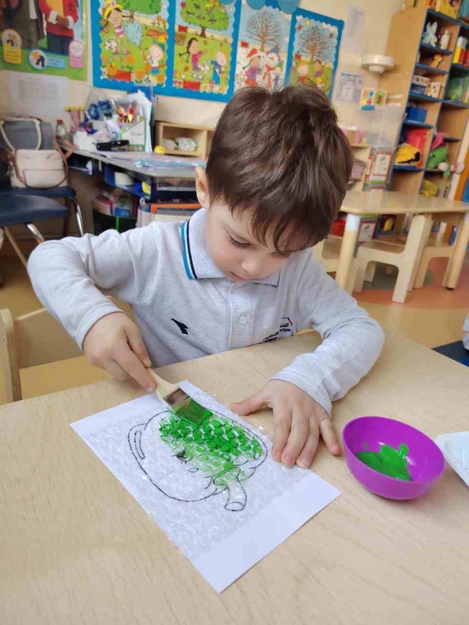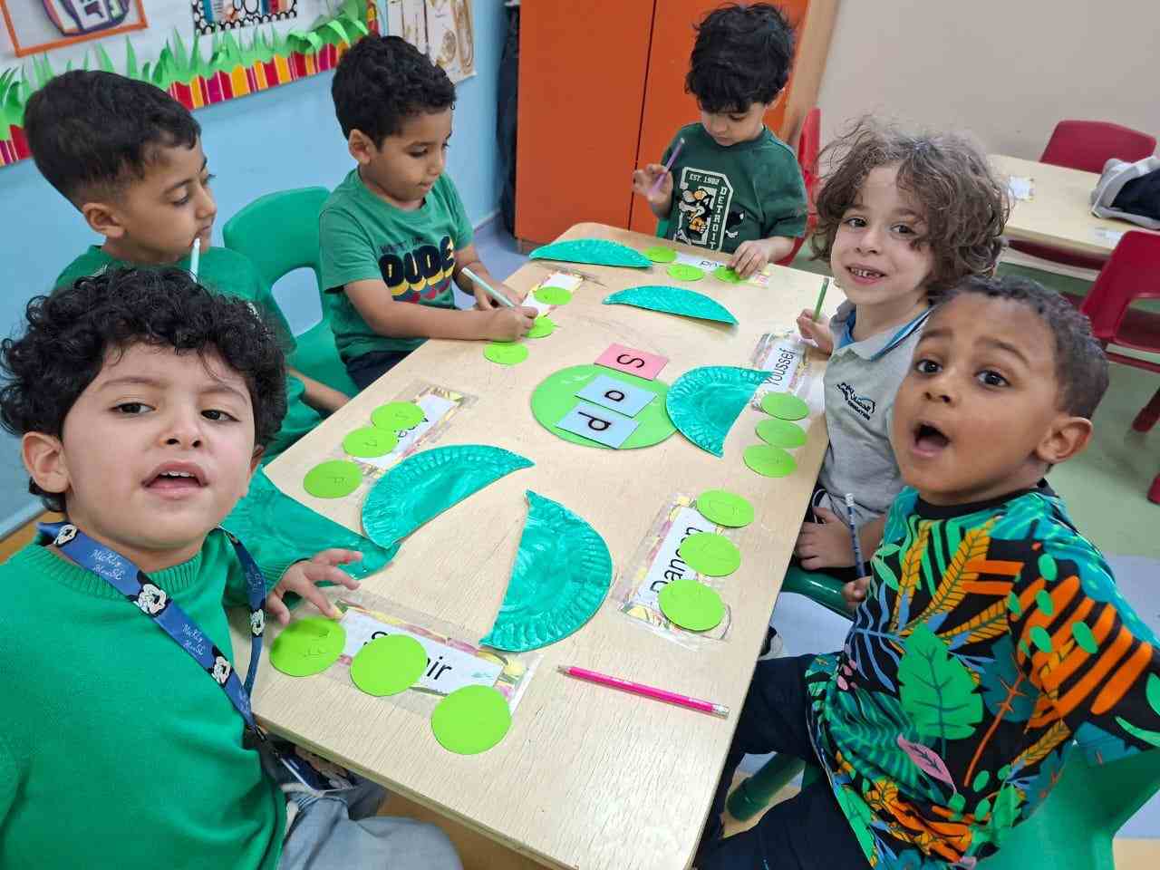 At School, dressed in vibrant shades of green, our Kindergarten students enjoyed a fun-filled day of learning and creativity! The children enthusiastically participated in a phonics and blending-themed craft activity, strengthening their early literacy skills through hands-on engagement.