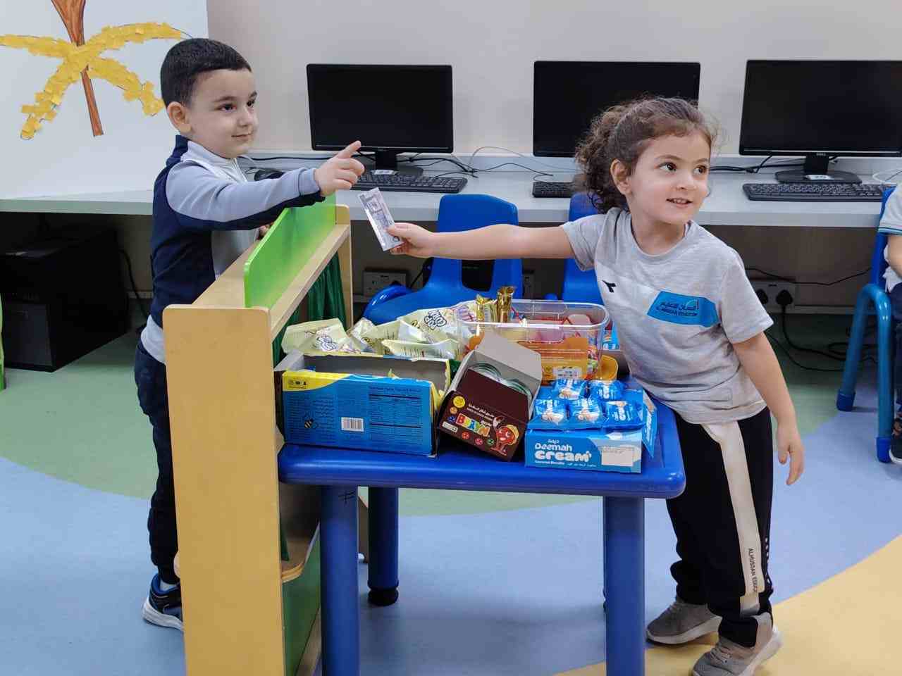 At School, Our Kindergarten students enjoyed an engaging and interactive activity focused on learning about currency. Through dramatic play, the children pretended to buy and sell items using play money, helping them understand the concept of money and basic transactions in a fun and meaningful way. The activity encouraged teamwork, communication, and real-world learning through play!