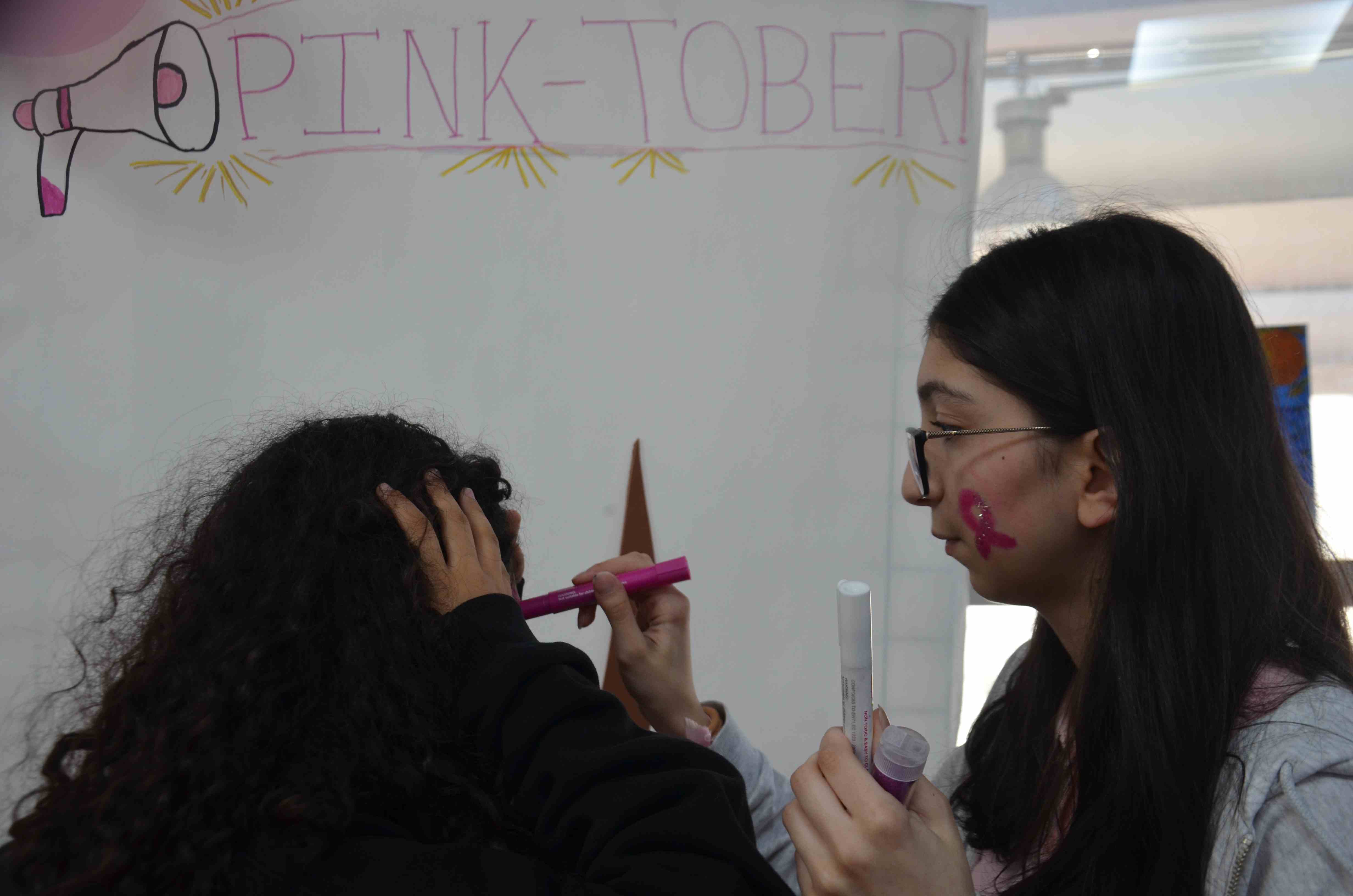 Another touching part of the event was when students and audience members fingerprinted hearts using pink paint to form a large pink awareness ribbon, symbolizing unity, love, and strength. Everyone proudly wore pink shirts and pink paint to show solidarity and raise awareness.