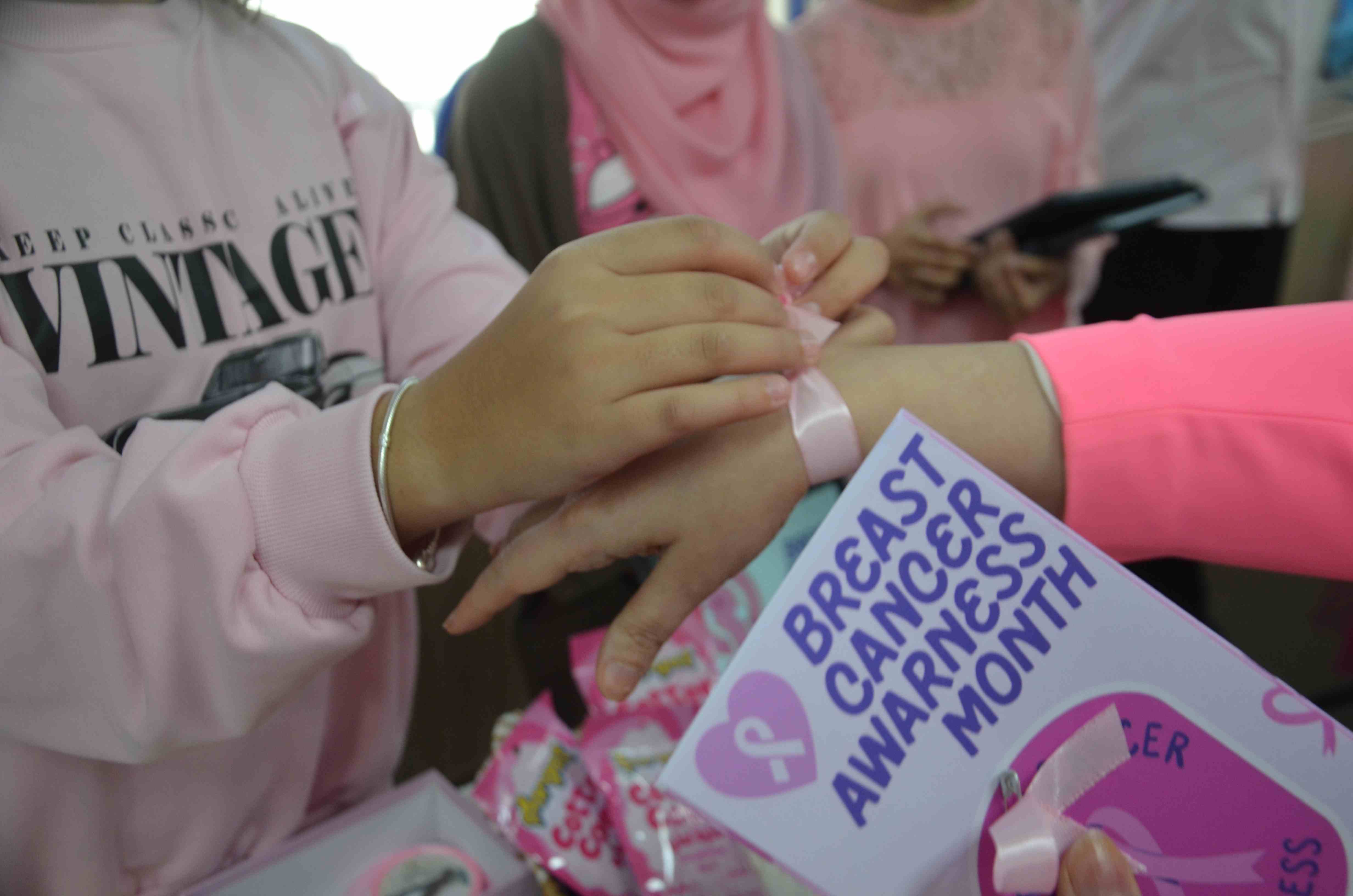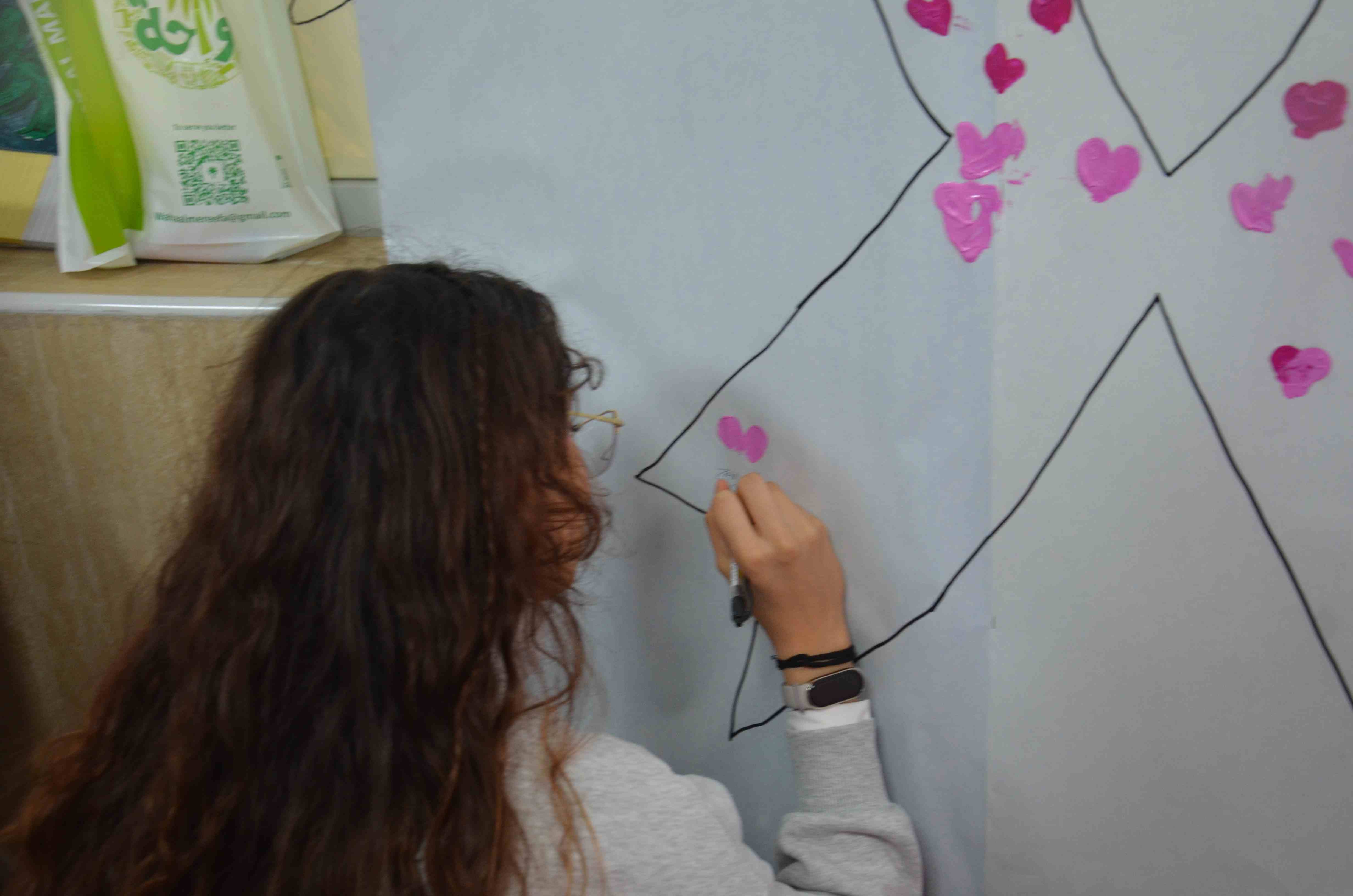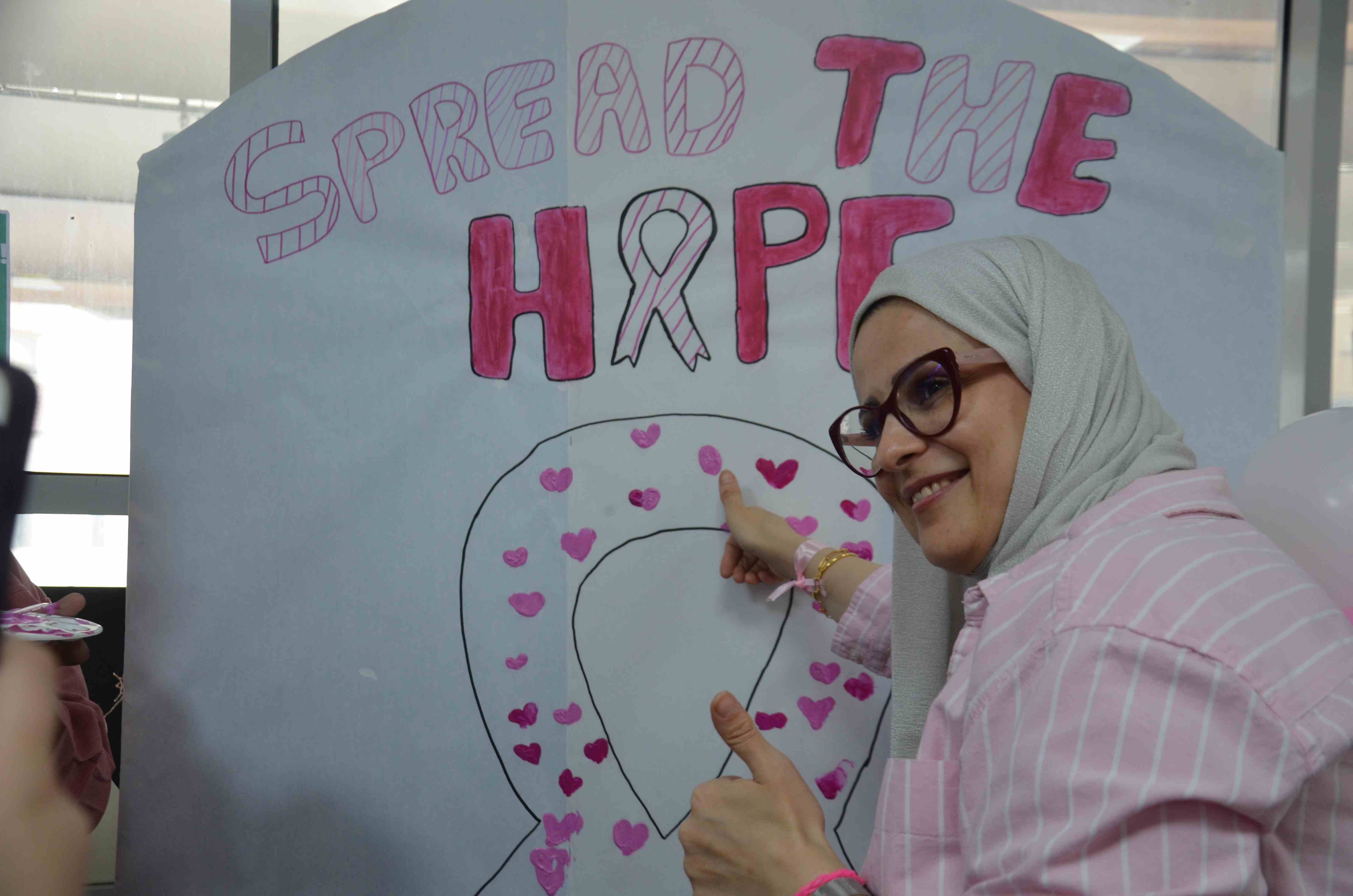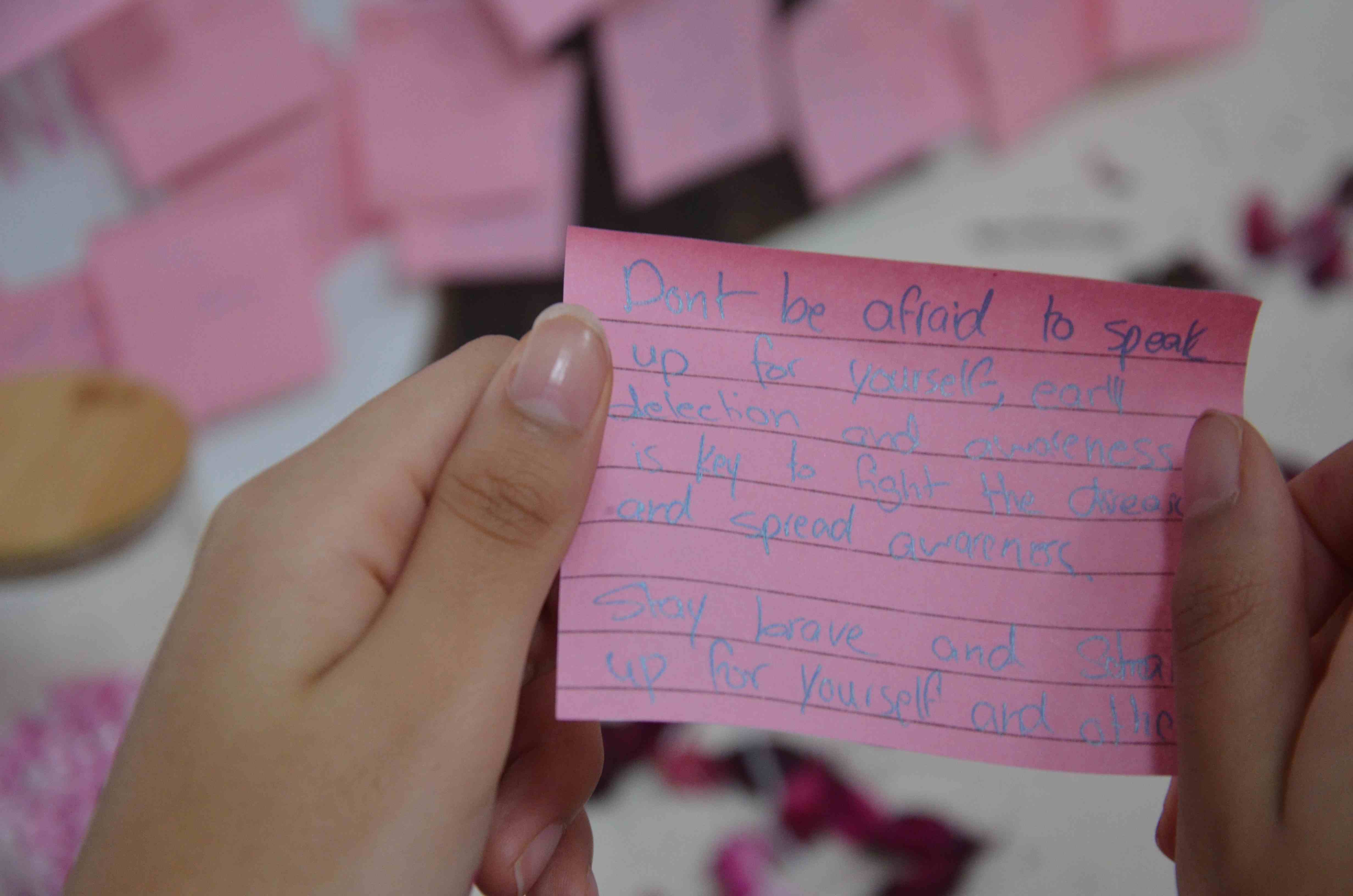 During the campaign, students encouraged the audience to write positive and motivational messages for breast cancer fighters and attach them to a “Tree of Hope” decorated with pink ribbons. They also invited everyone to share their relatives’ experiences or stories with breast cancer and stick them on the “Pledge Wall,” creating a powerful display of empathy, connection, and support.