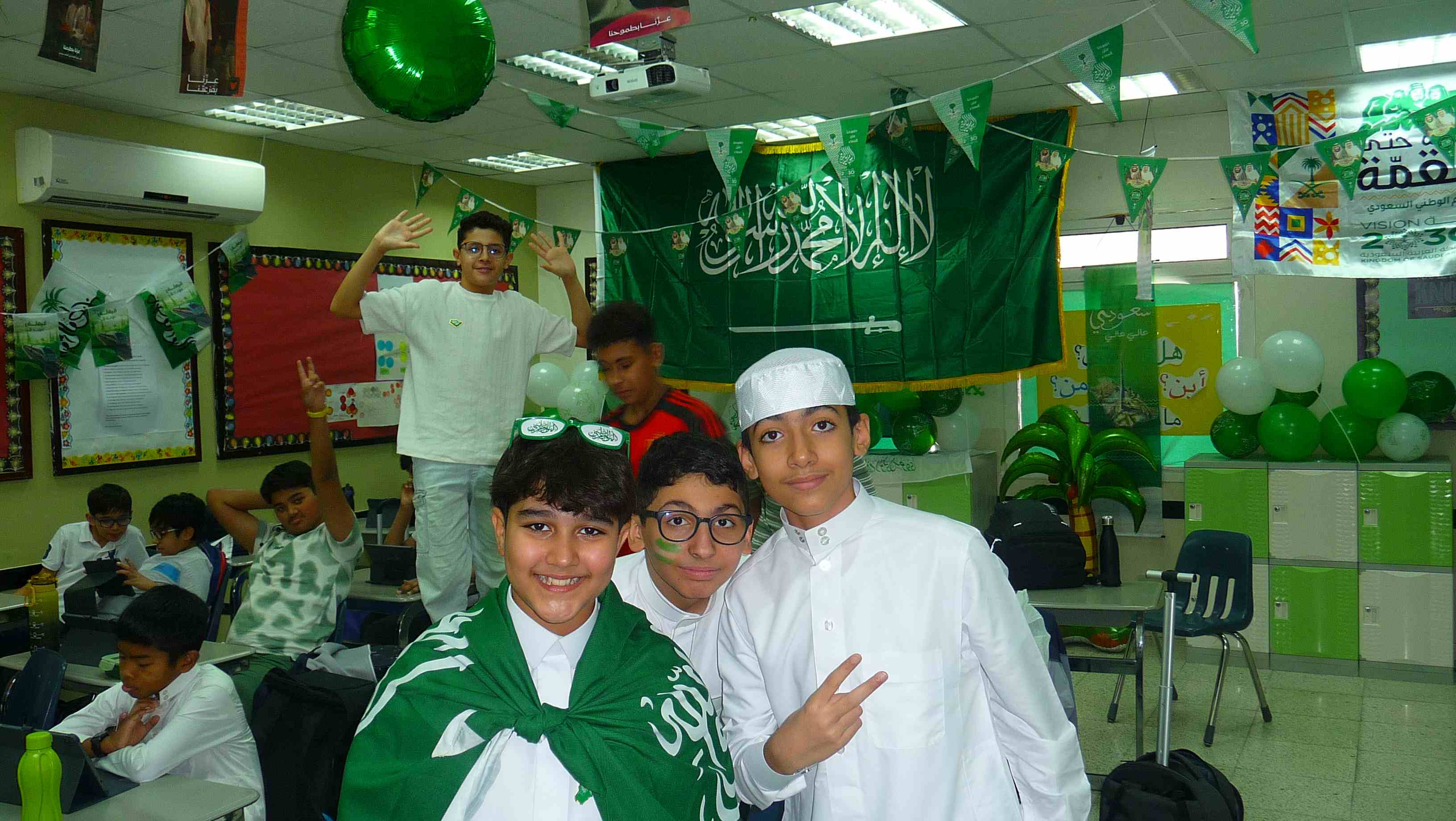 Students filled classrooms and hallways with creativity, decorating the school in green and white to mark Saudi National Day.