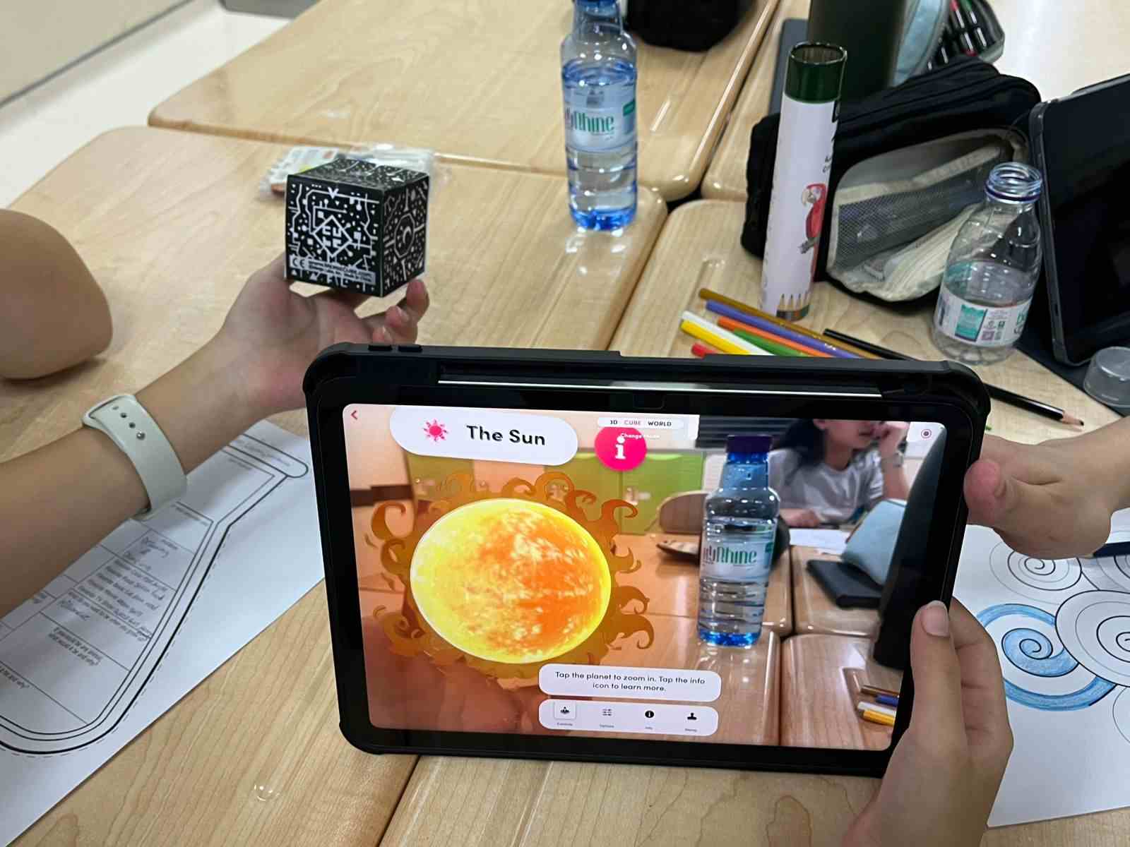 The Grade 9 Chemistry Students at girls' American section explored so much more than just science. With Augmented Reality, they discovered planets, objects, and concepts in an interactive way — holding knowledge right in their hands!