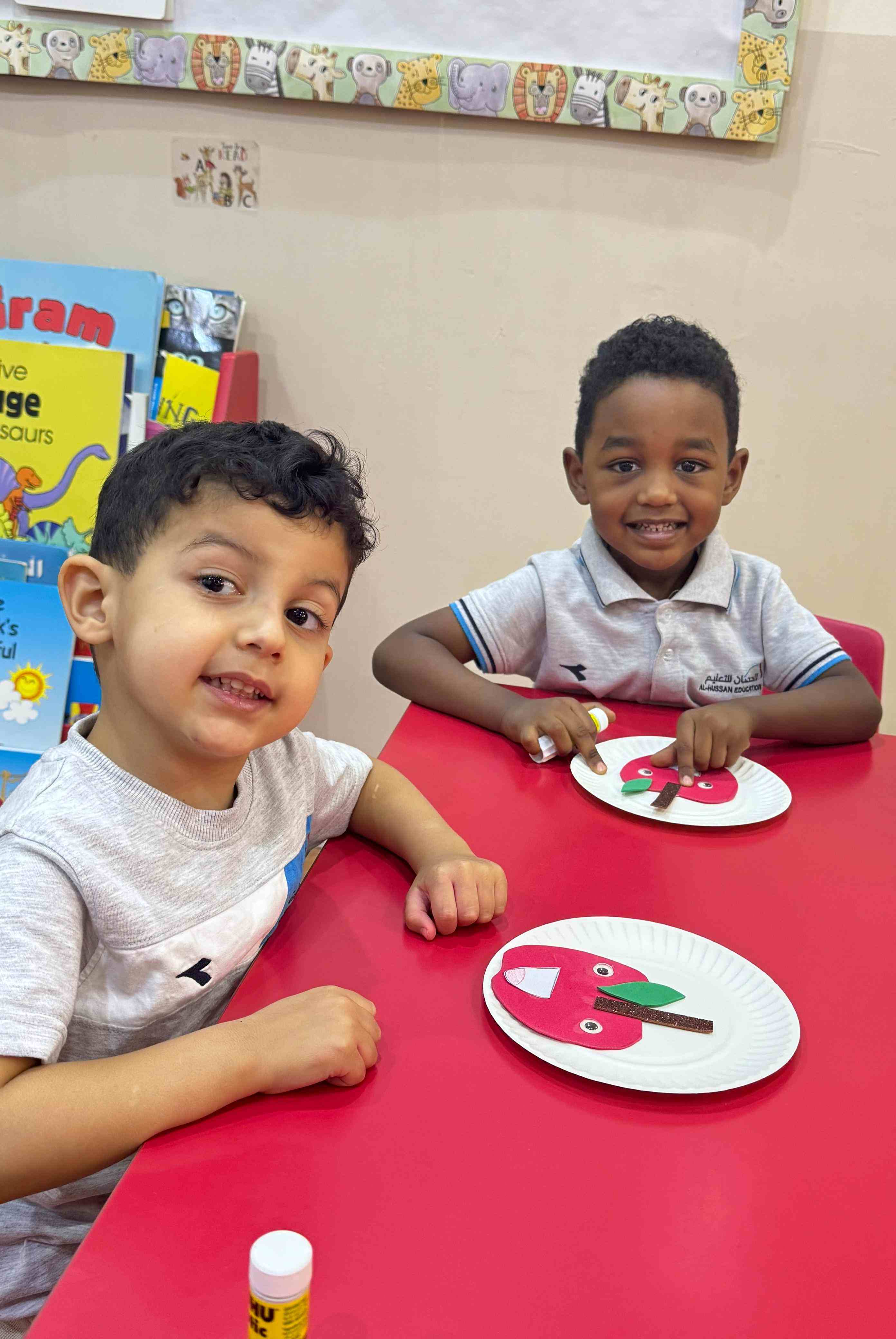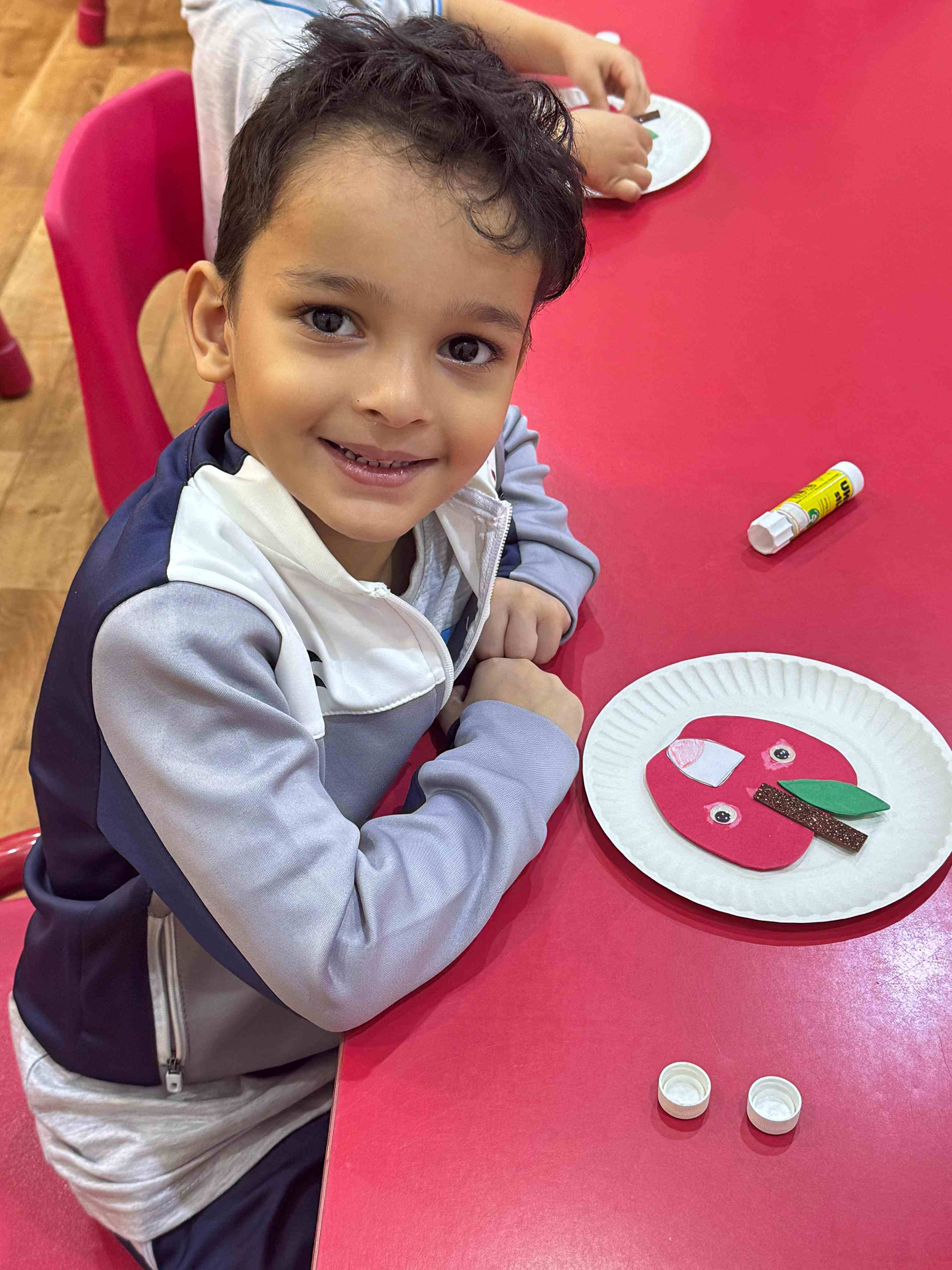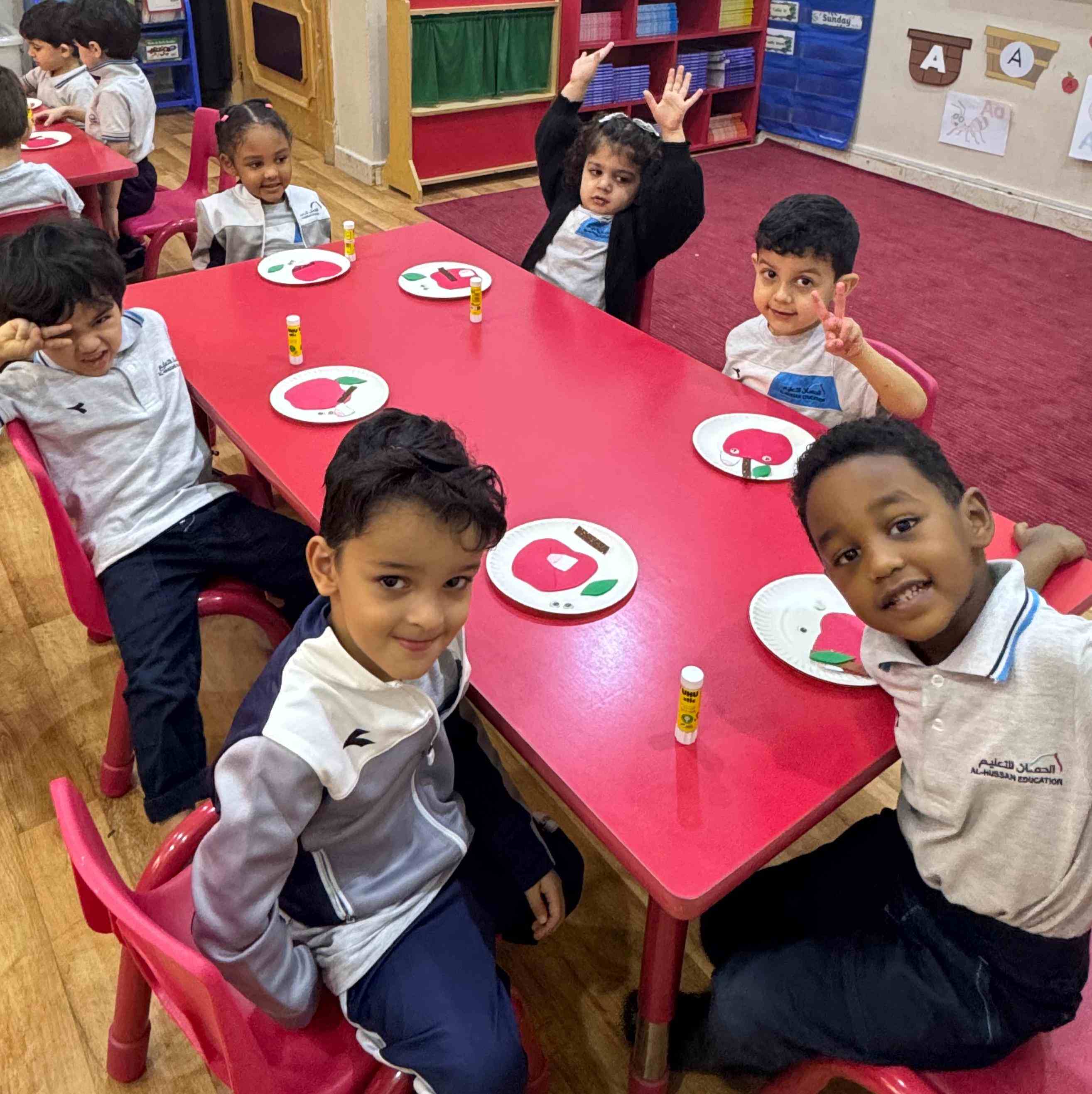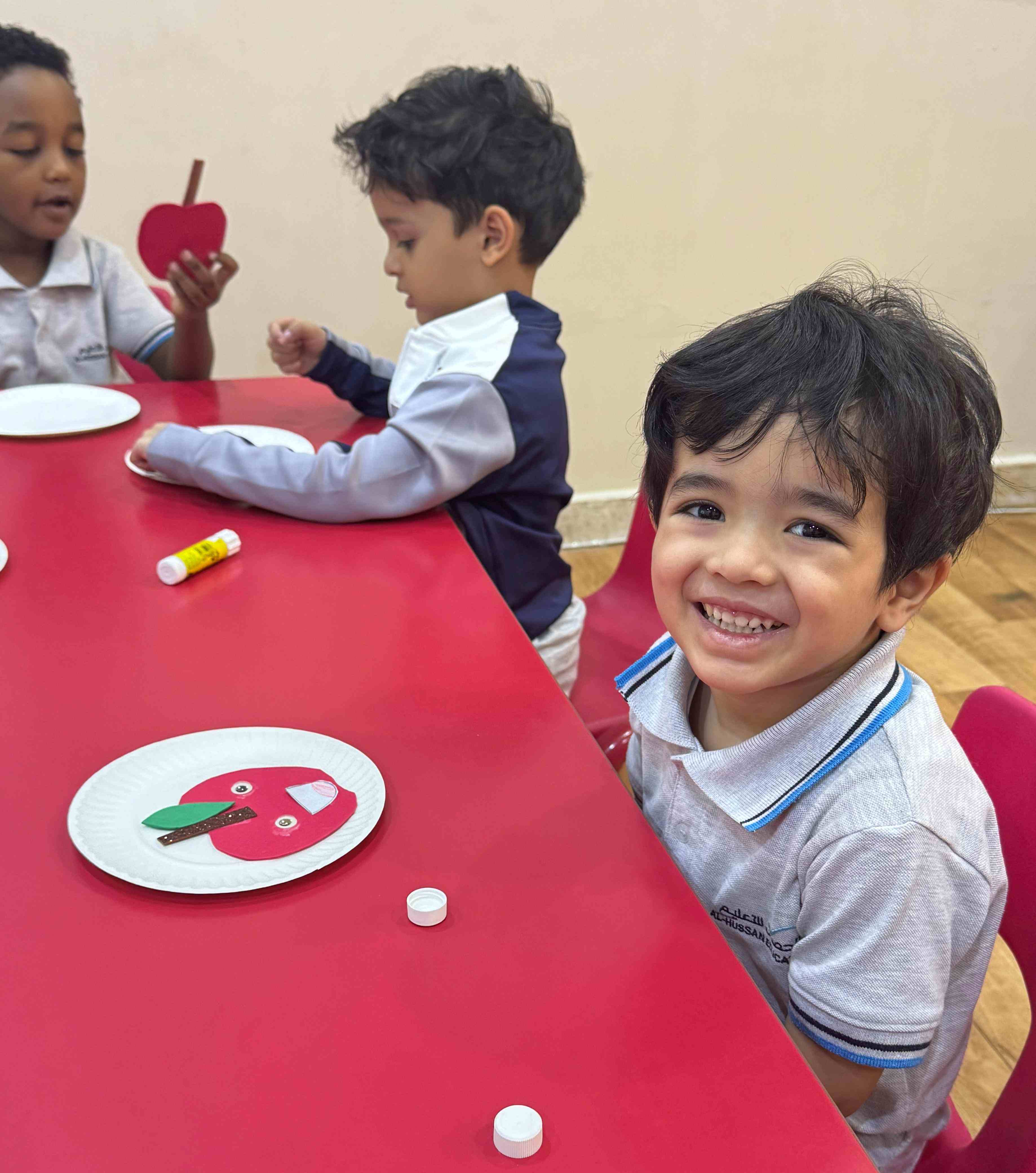 The KG1 students had a delightful time exploring the Letter A through a fun and creative apple craft activity. As part of their phonics learning, the children colored, cut, and pasted red paper pieces to create vibrant apple shapes.