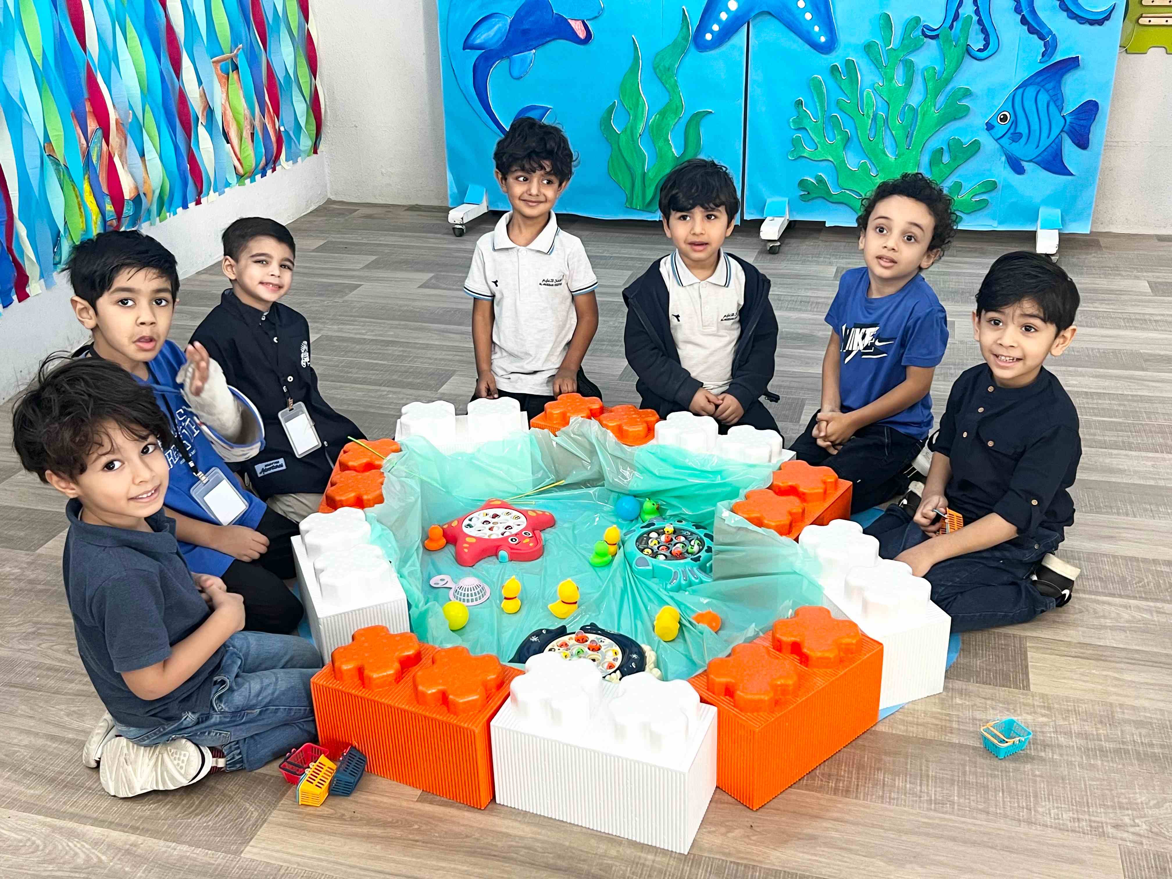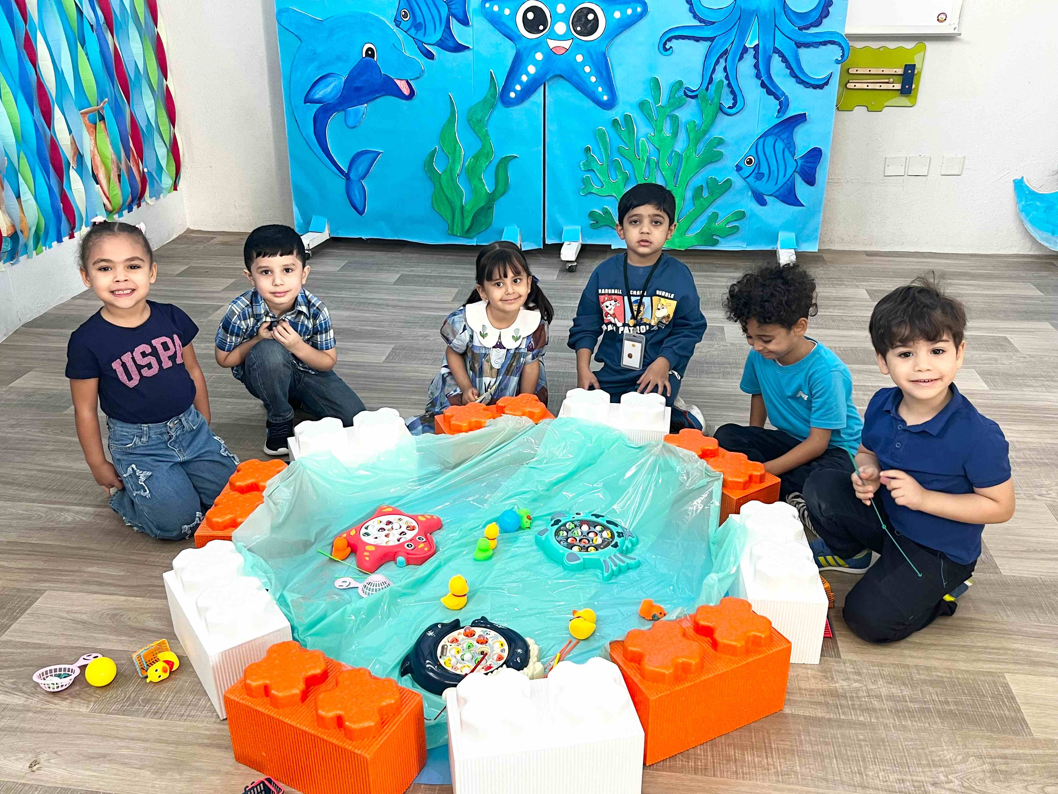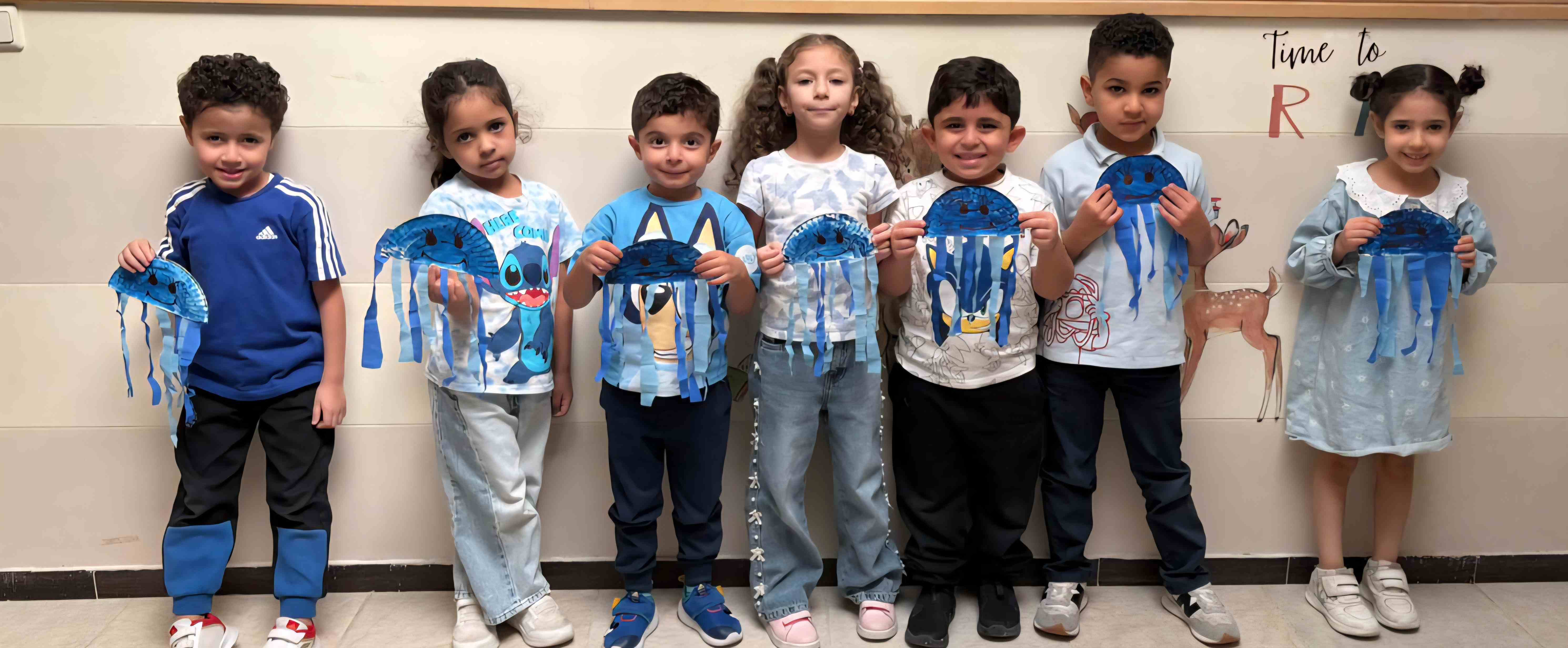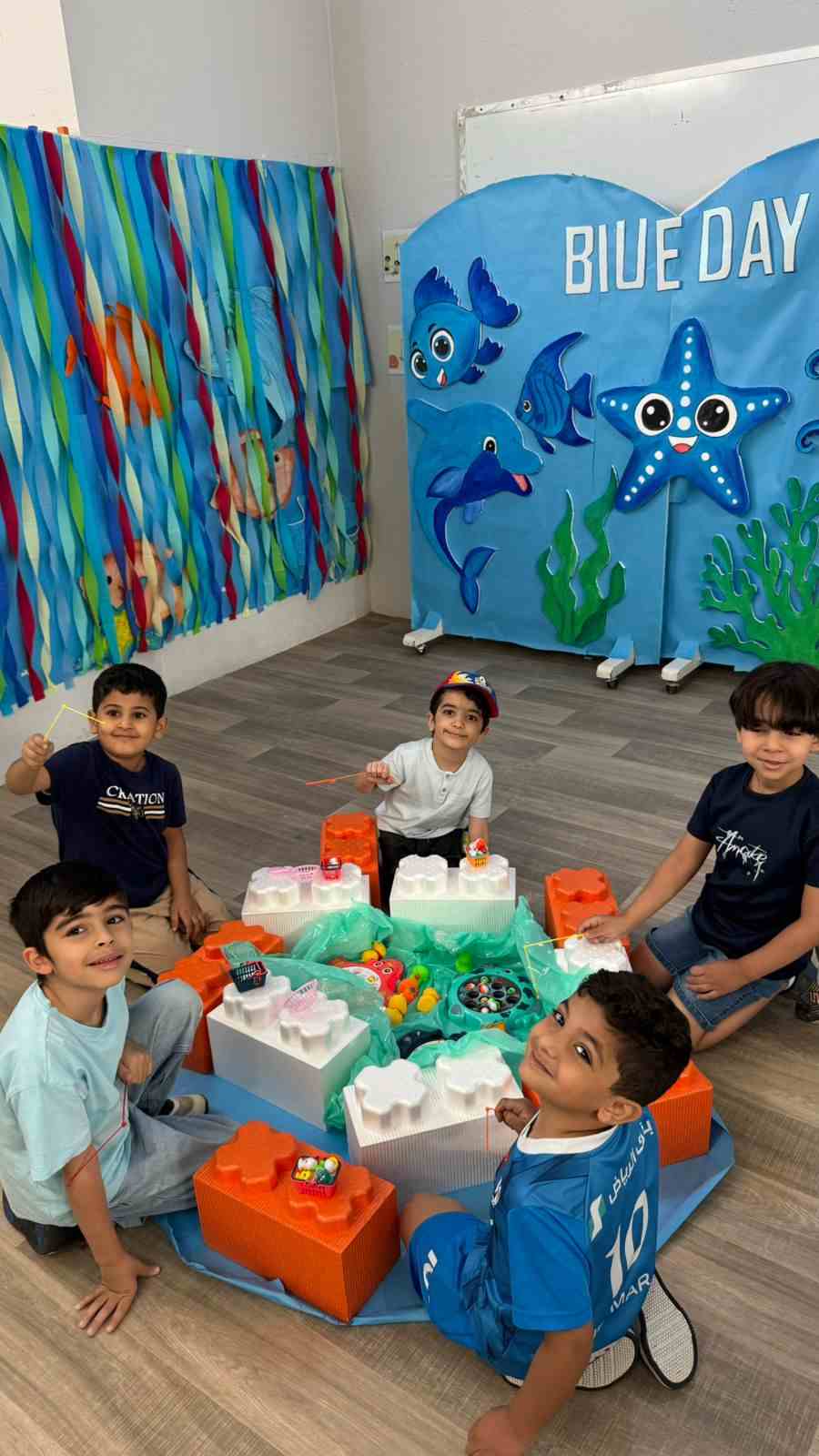 Our little learners participated in exciting hands-on activities such as fishing games, feeding the hungry shark, and creating lovely blue flowers using sponges. They also enjoyed rowing boats with straws, making rain with shaving cream and food coloring, and exploring blue bubbles to discover the magic of science and color.
