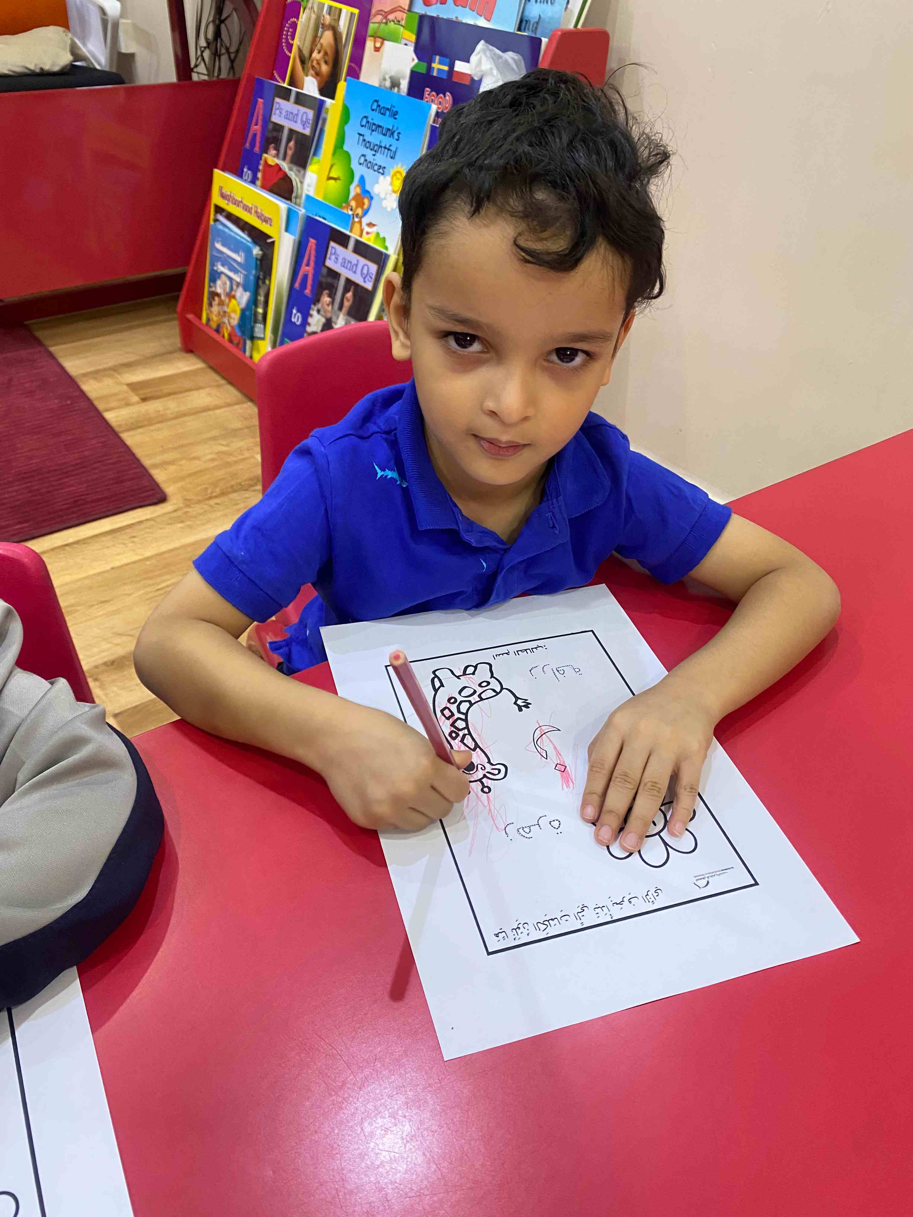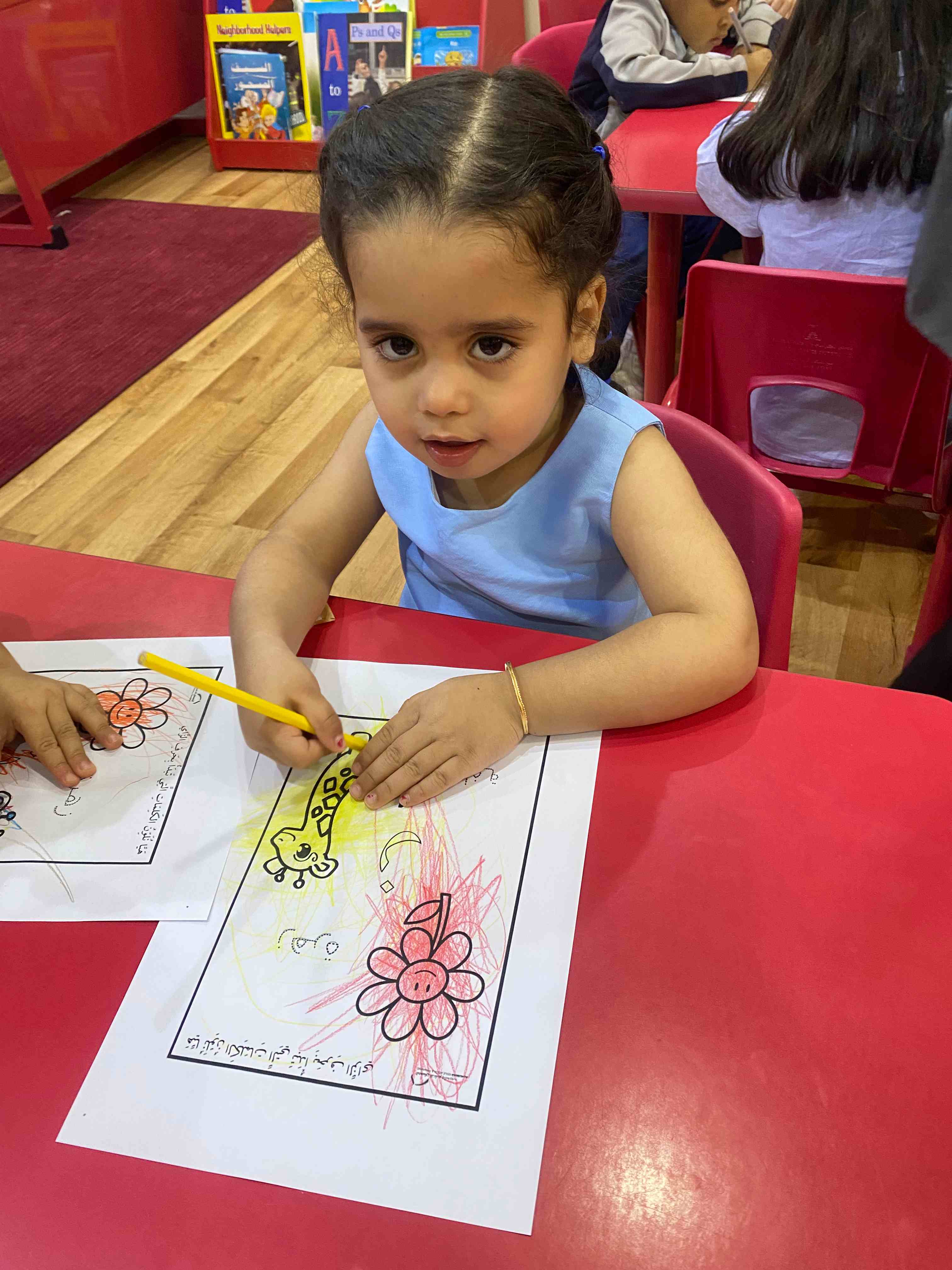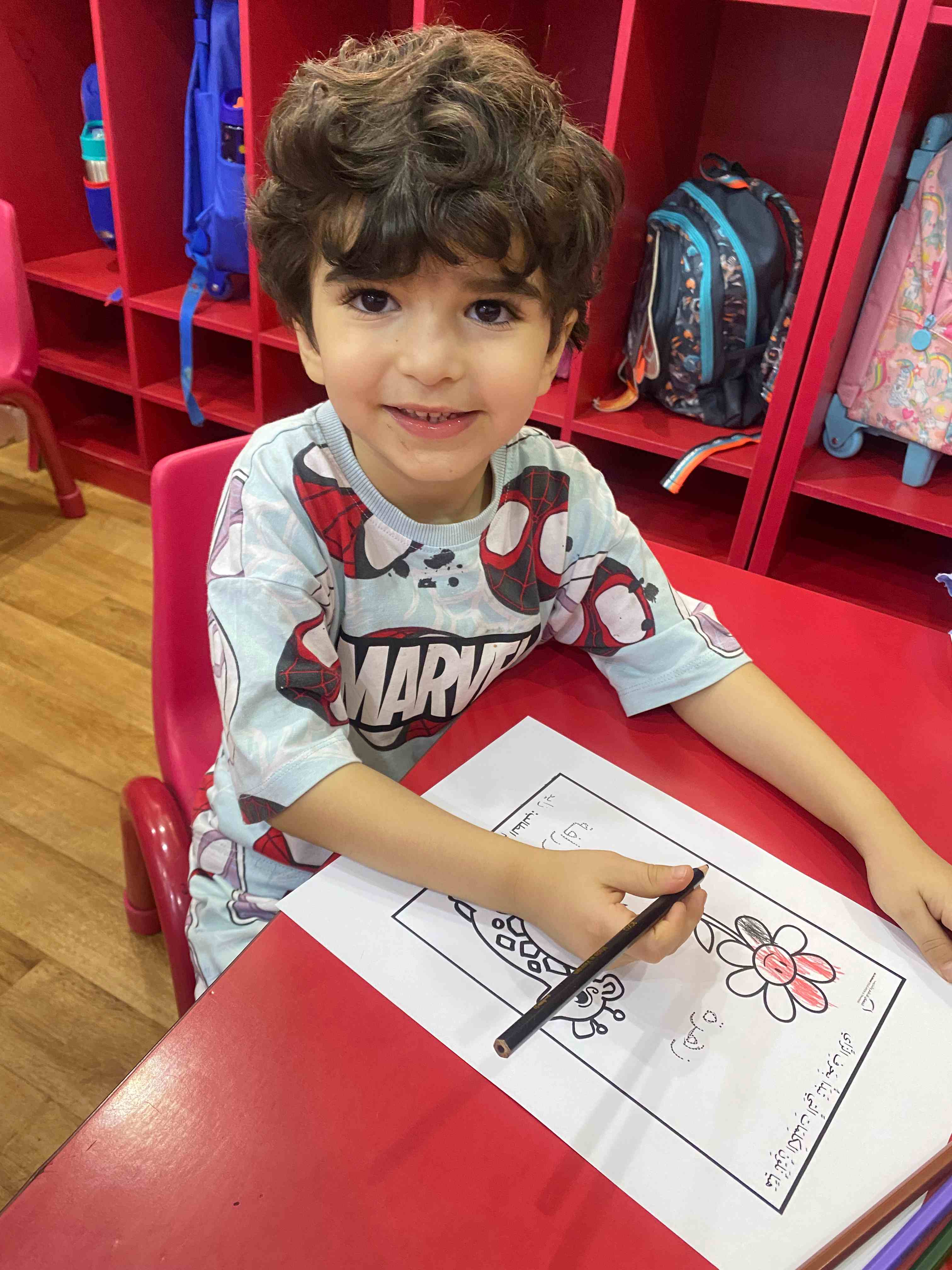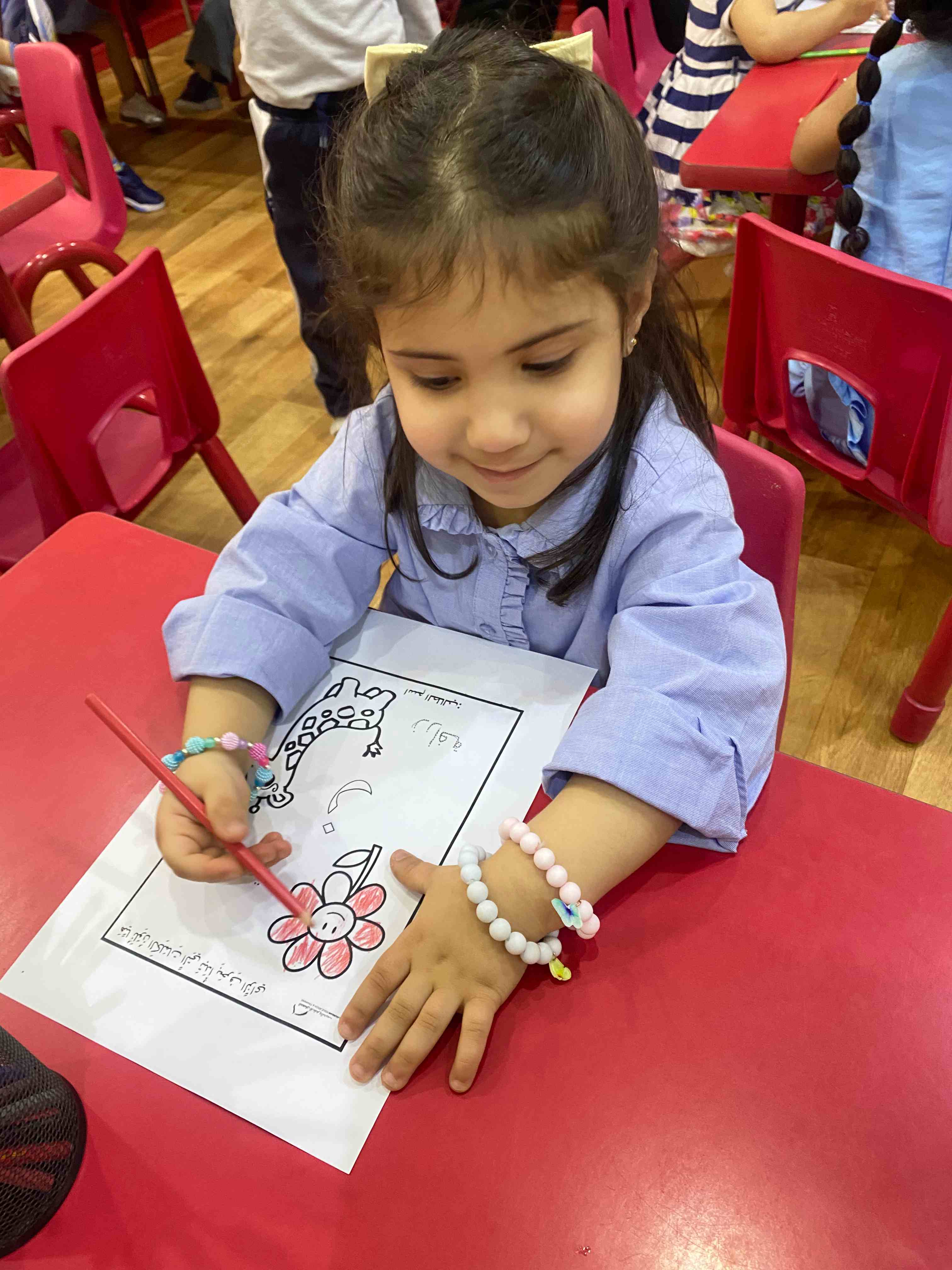 They also colored a worksheet dedicated to the letter "ز", which helped reinforce the shape and sound of the letter in a fun and interactive way.