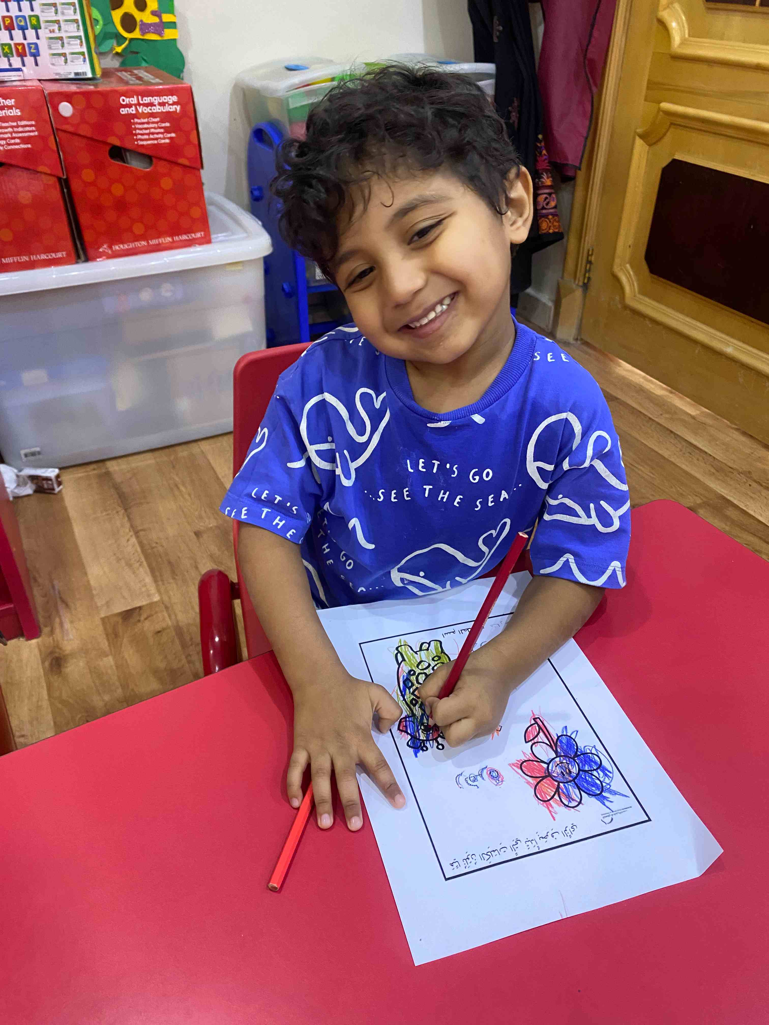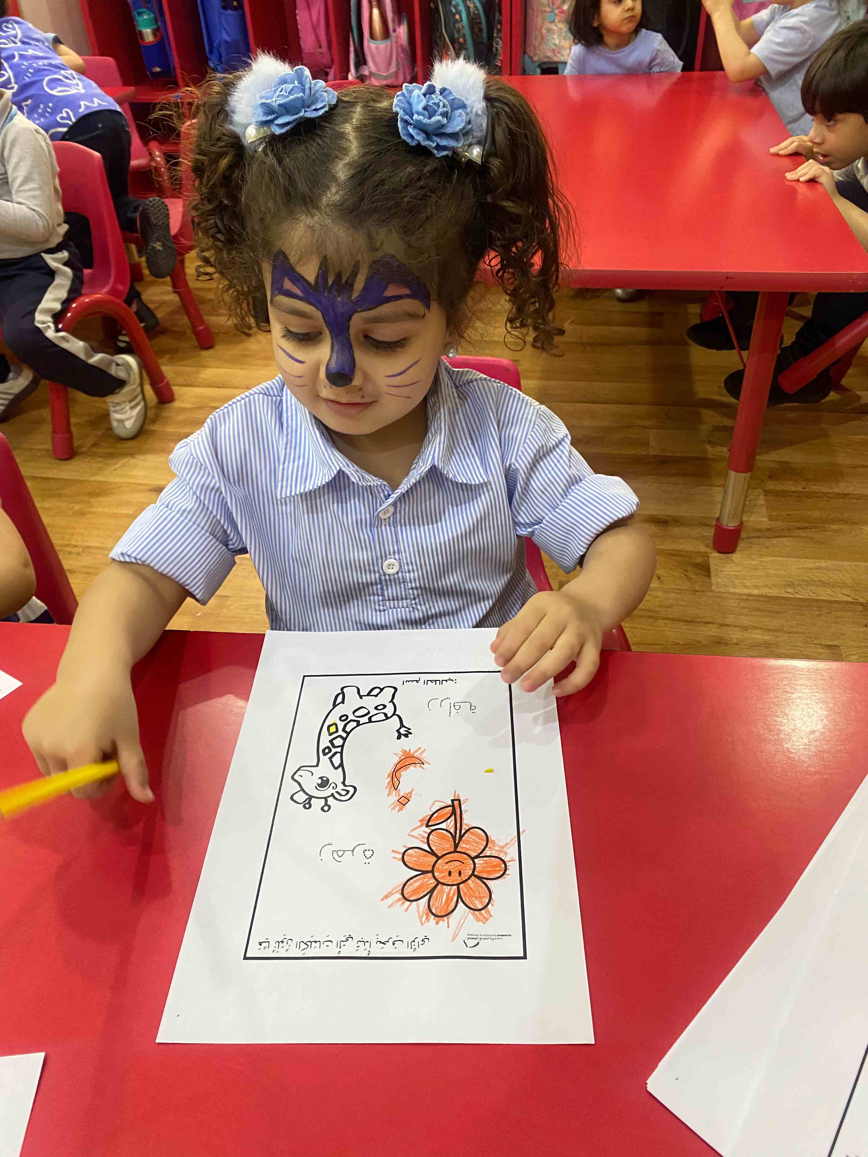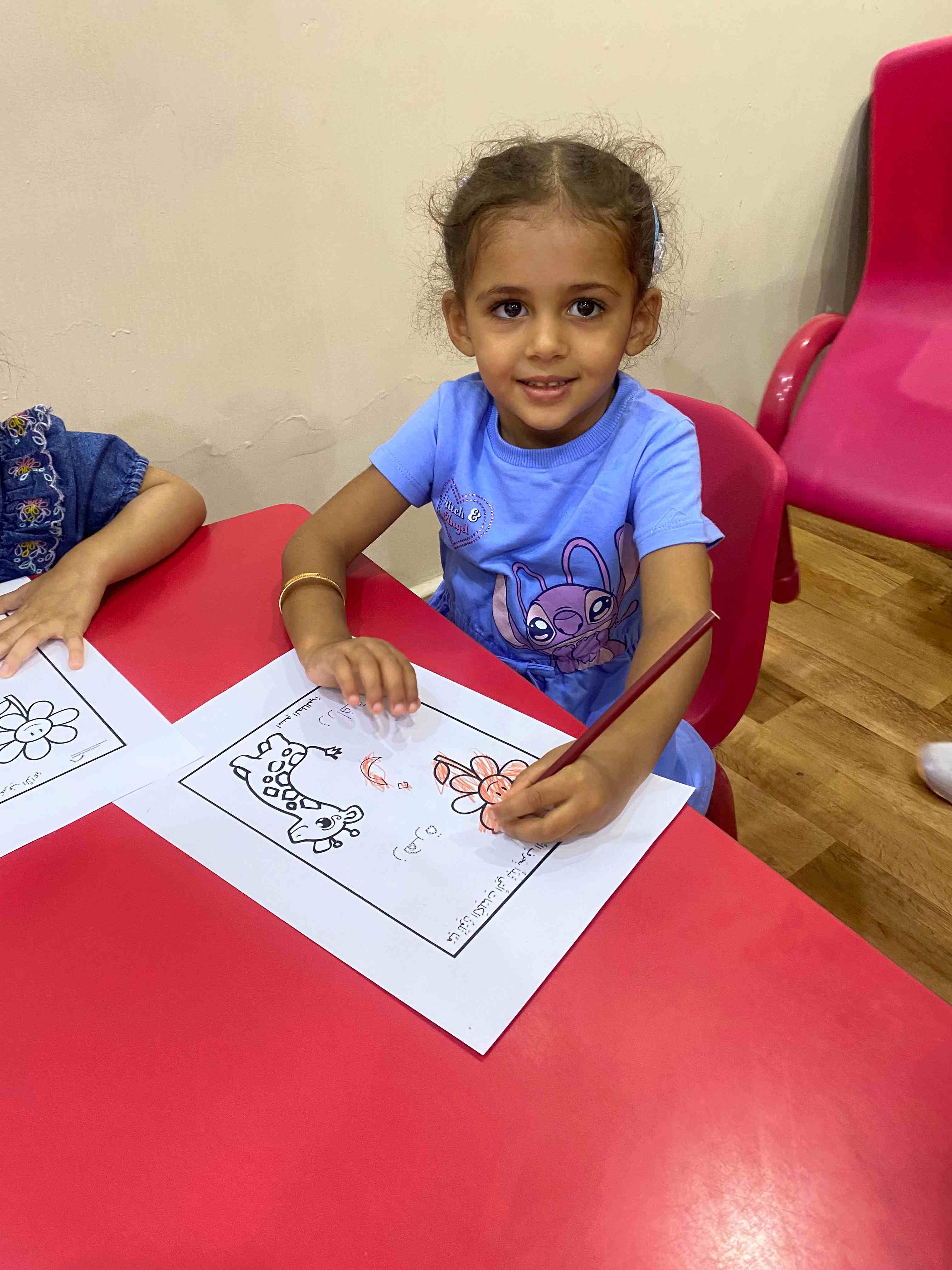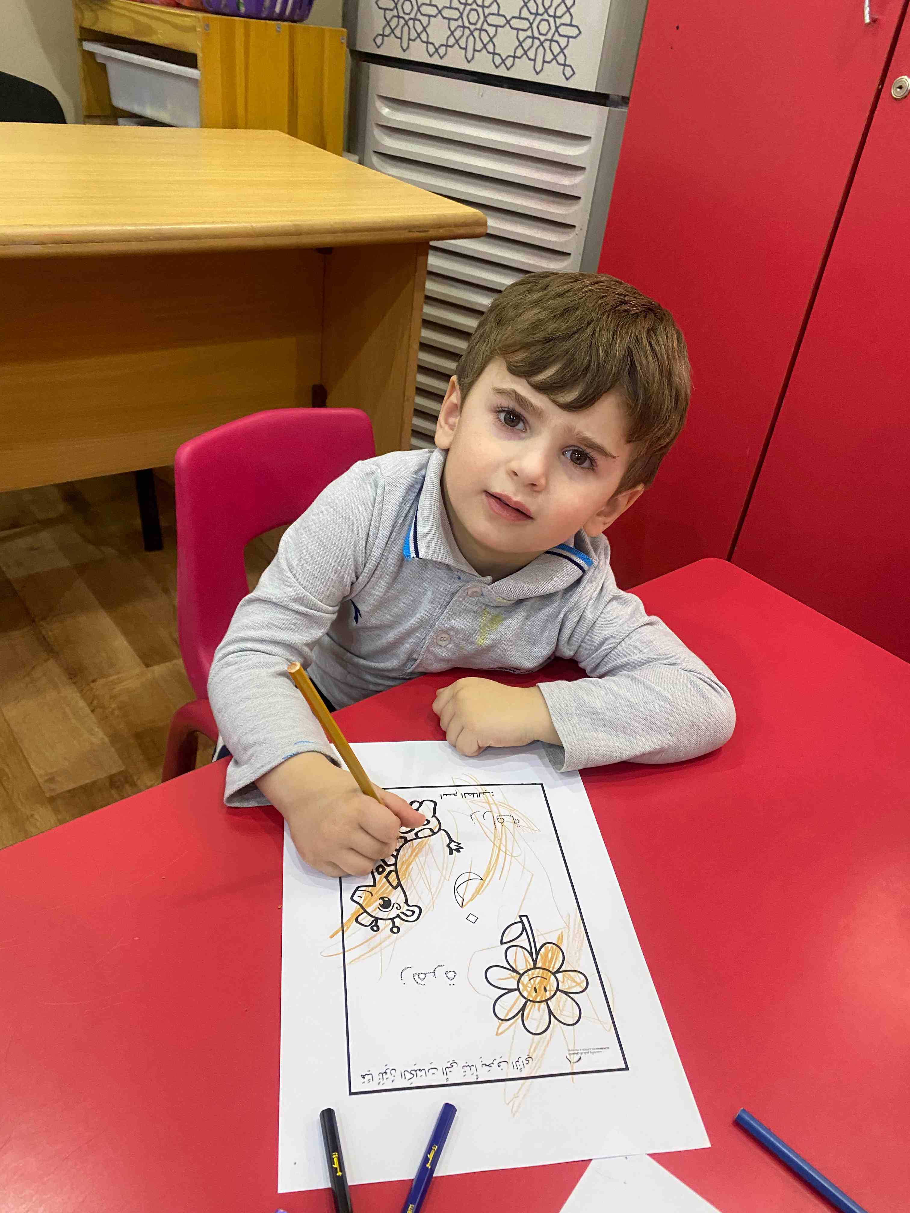 They also colored a worksheet dedicated to the letter "ز", which helped reinforce the shape and sound of the letter in a fun and interactive way.