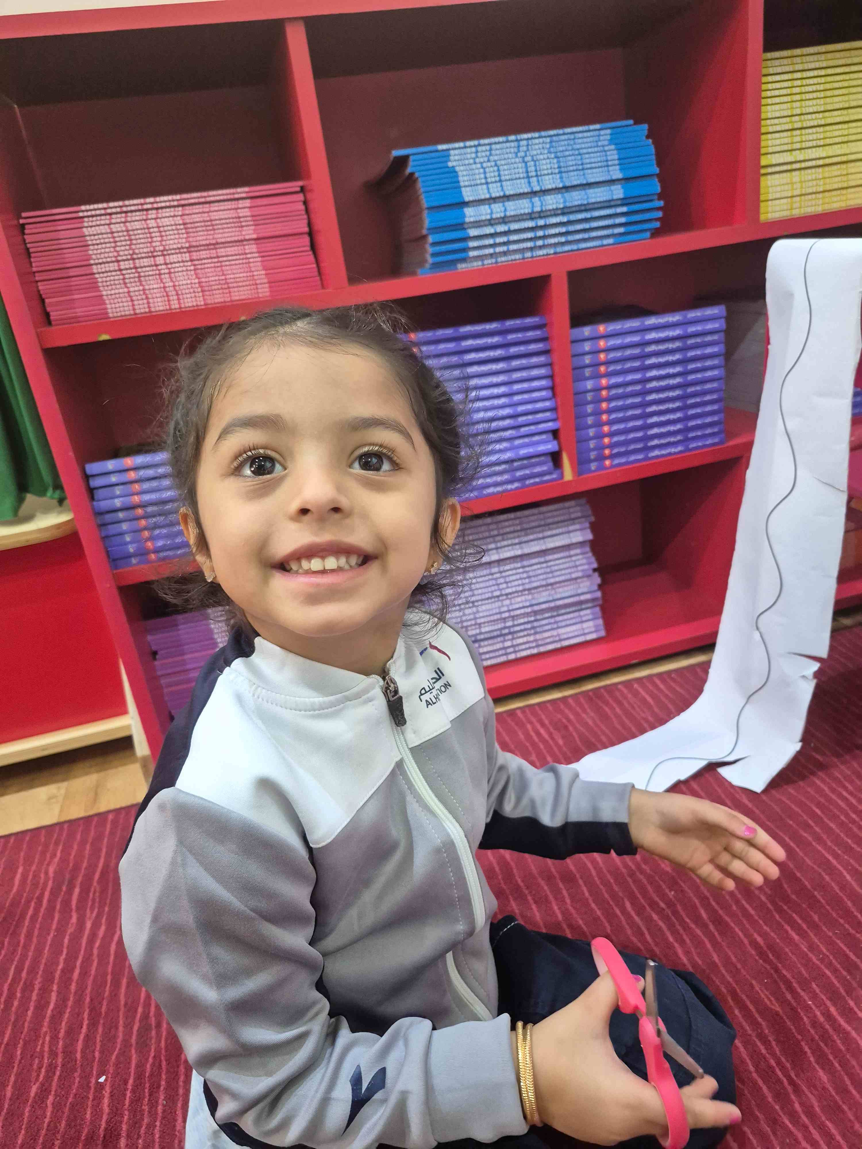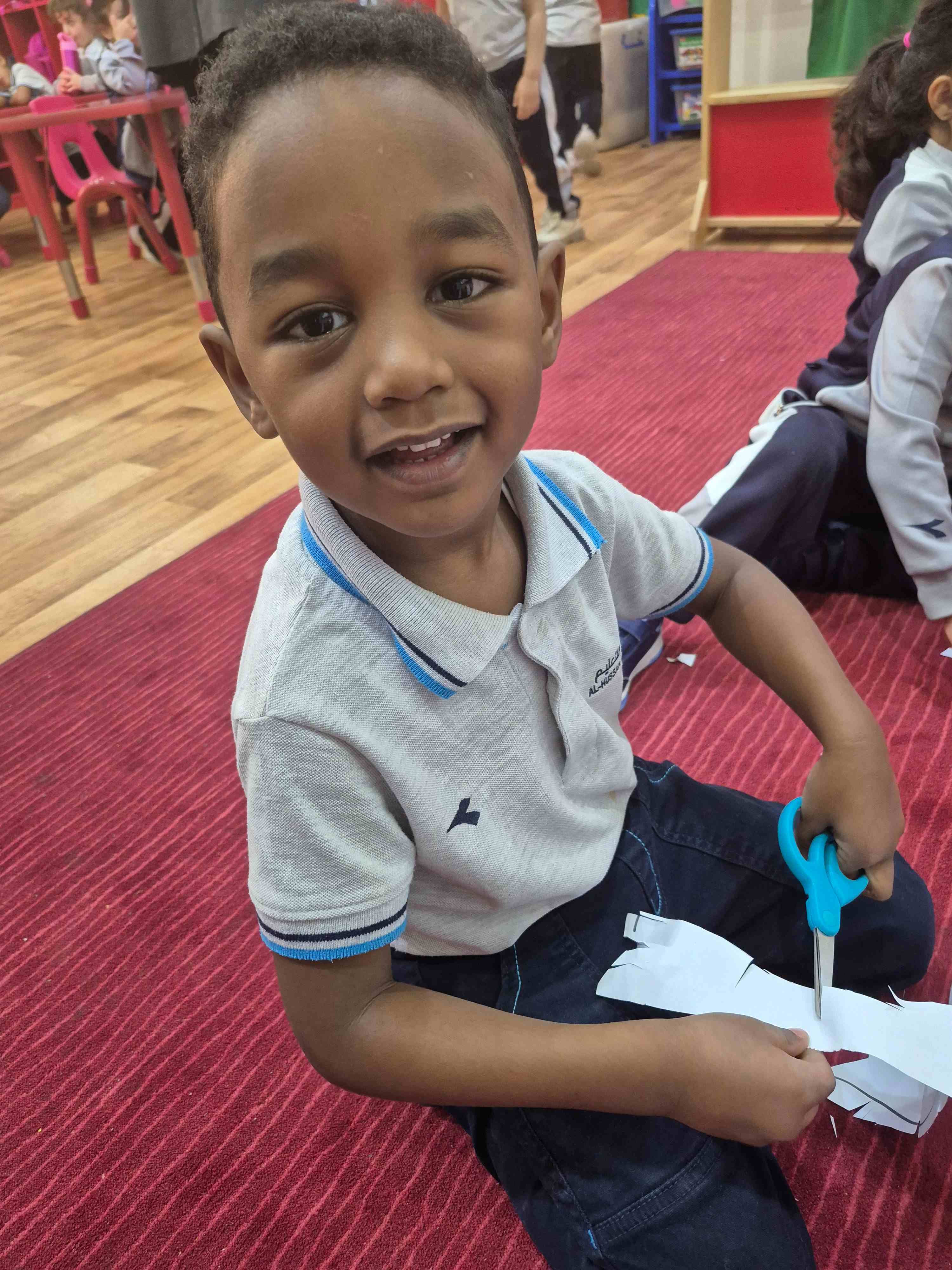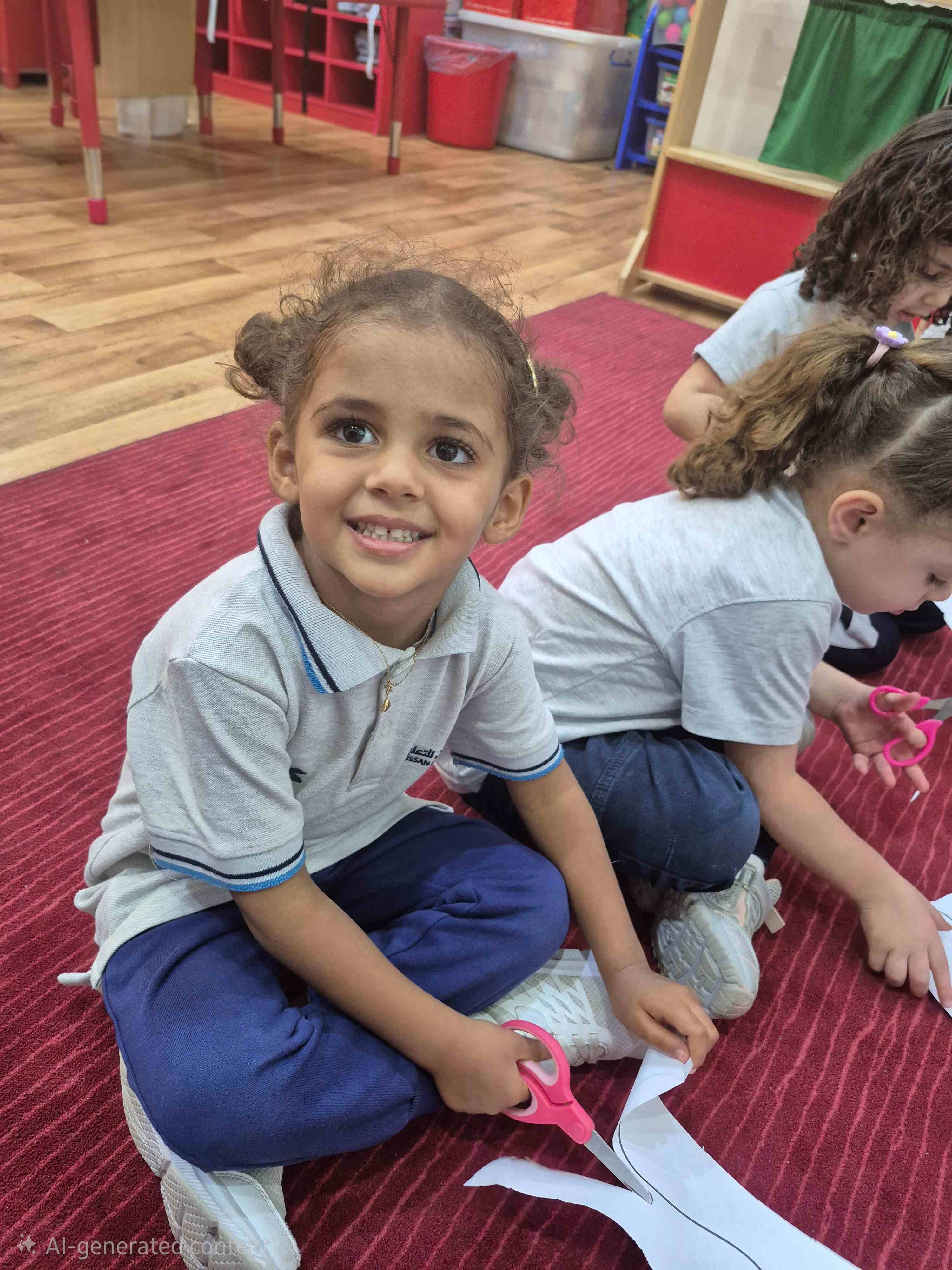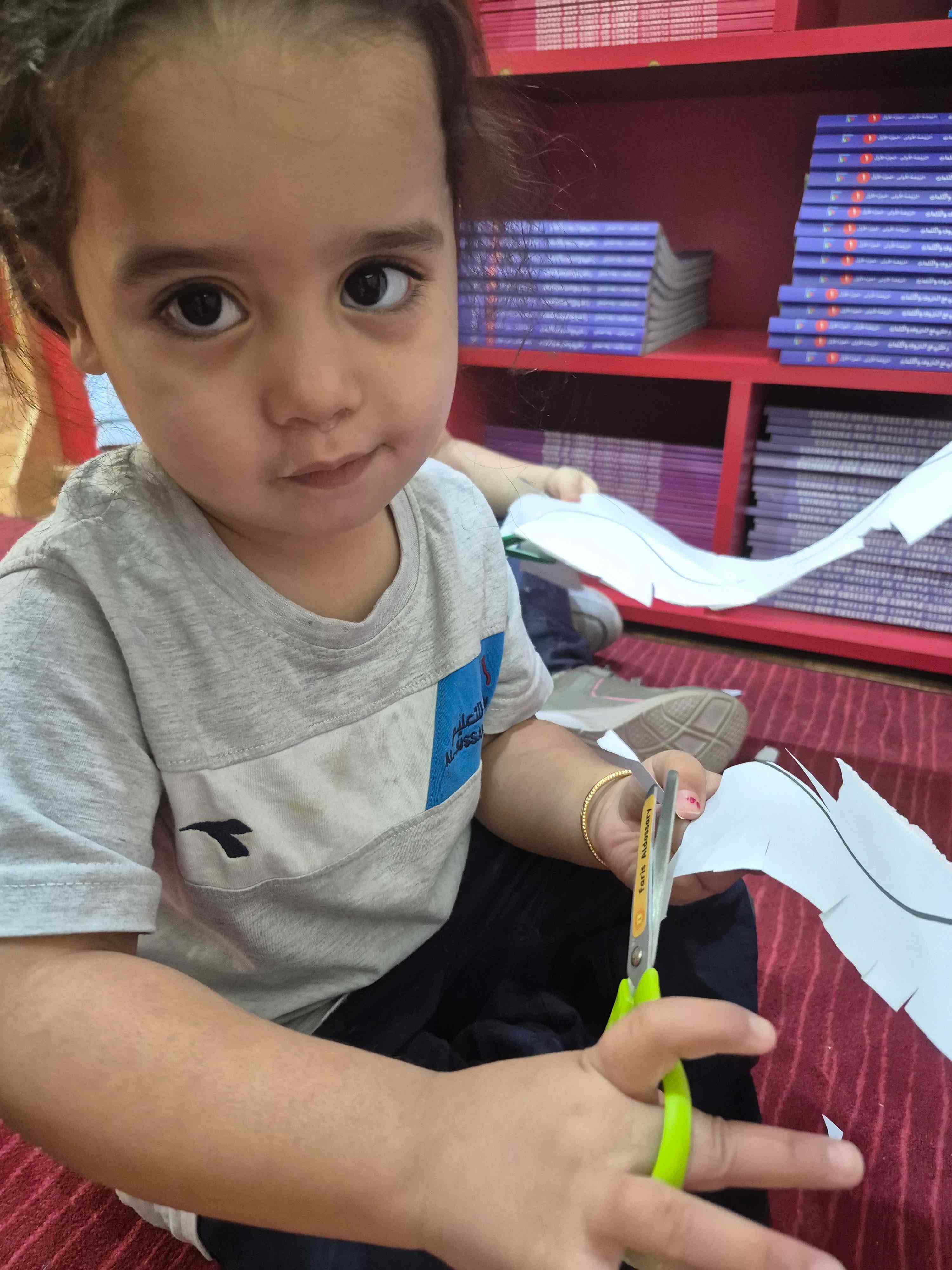The KG1 students took part in a cutting activity to practice their fine motor skills. Each child was given a strip of paper with a curved line drawn on it. Using safe kid-friendly scissors, students carefully cut along the curved line, following the shape from one end to the other. This activity helped them develop hand–eye coordination, scissor control, and concentration while having fun cutting along the wavy path.