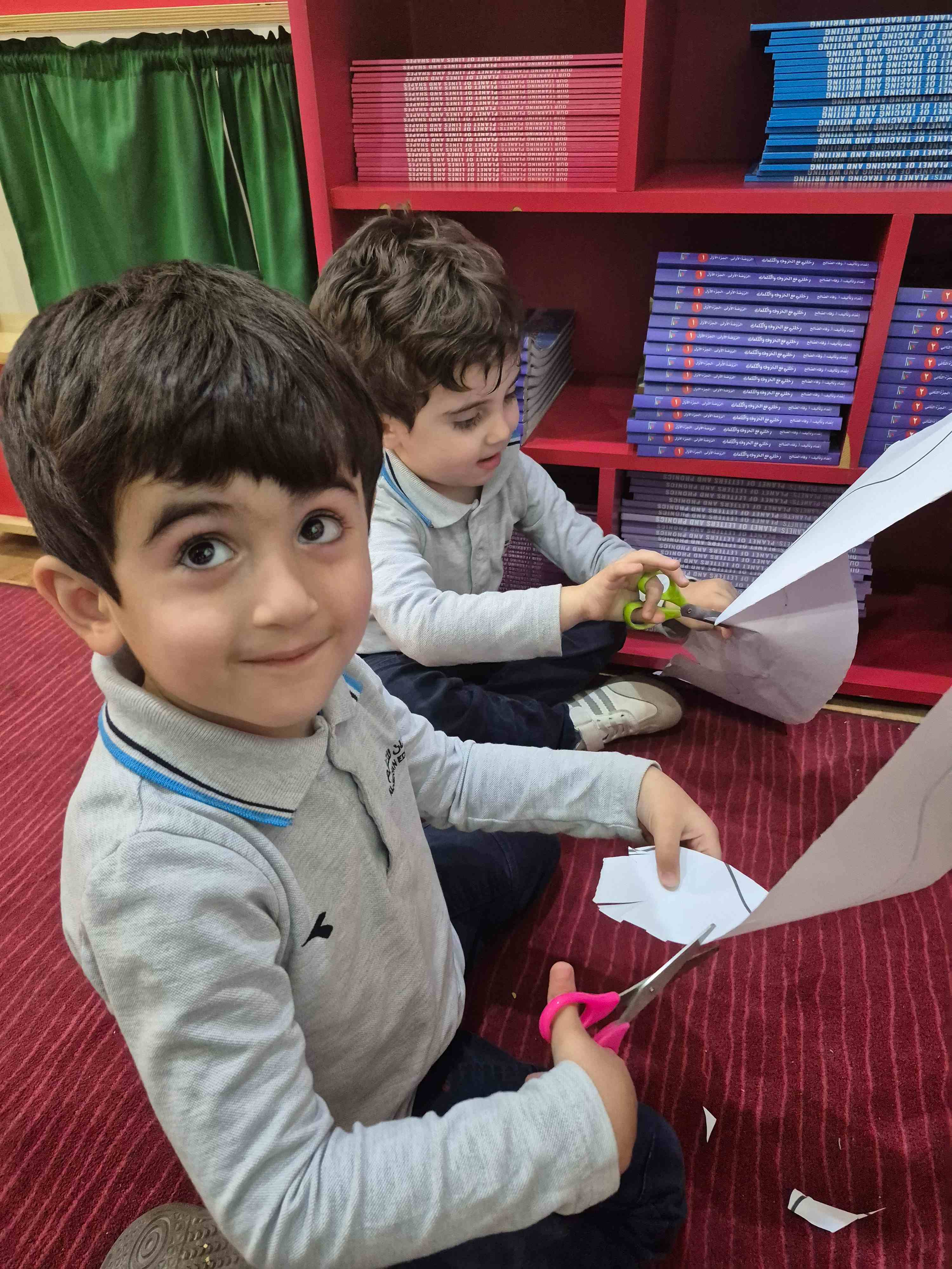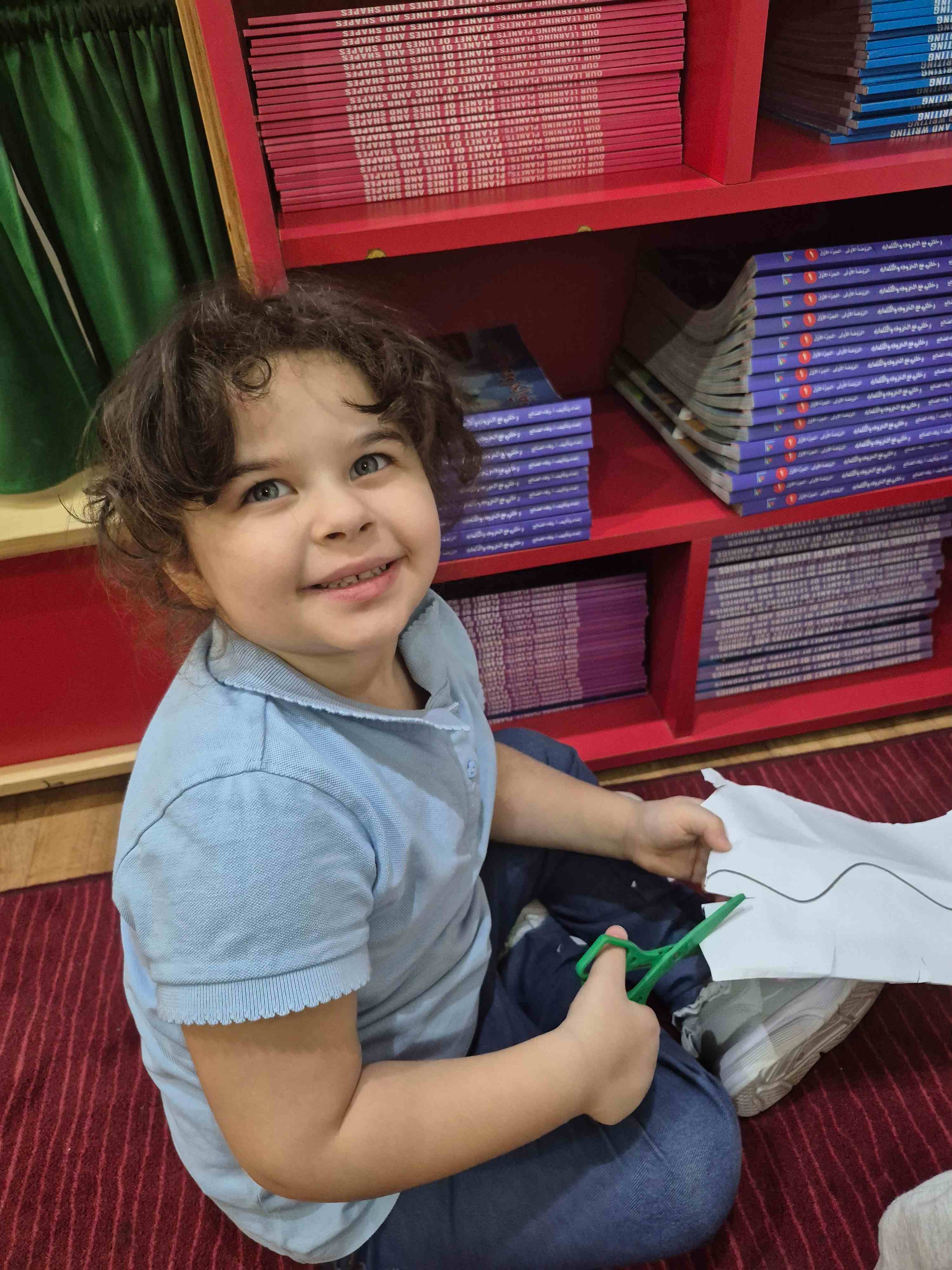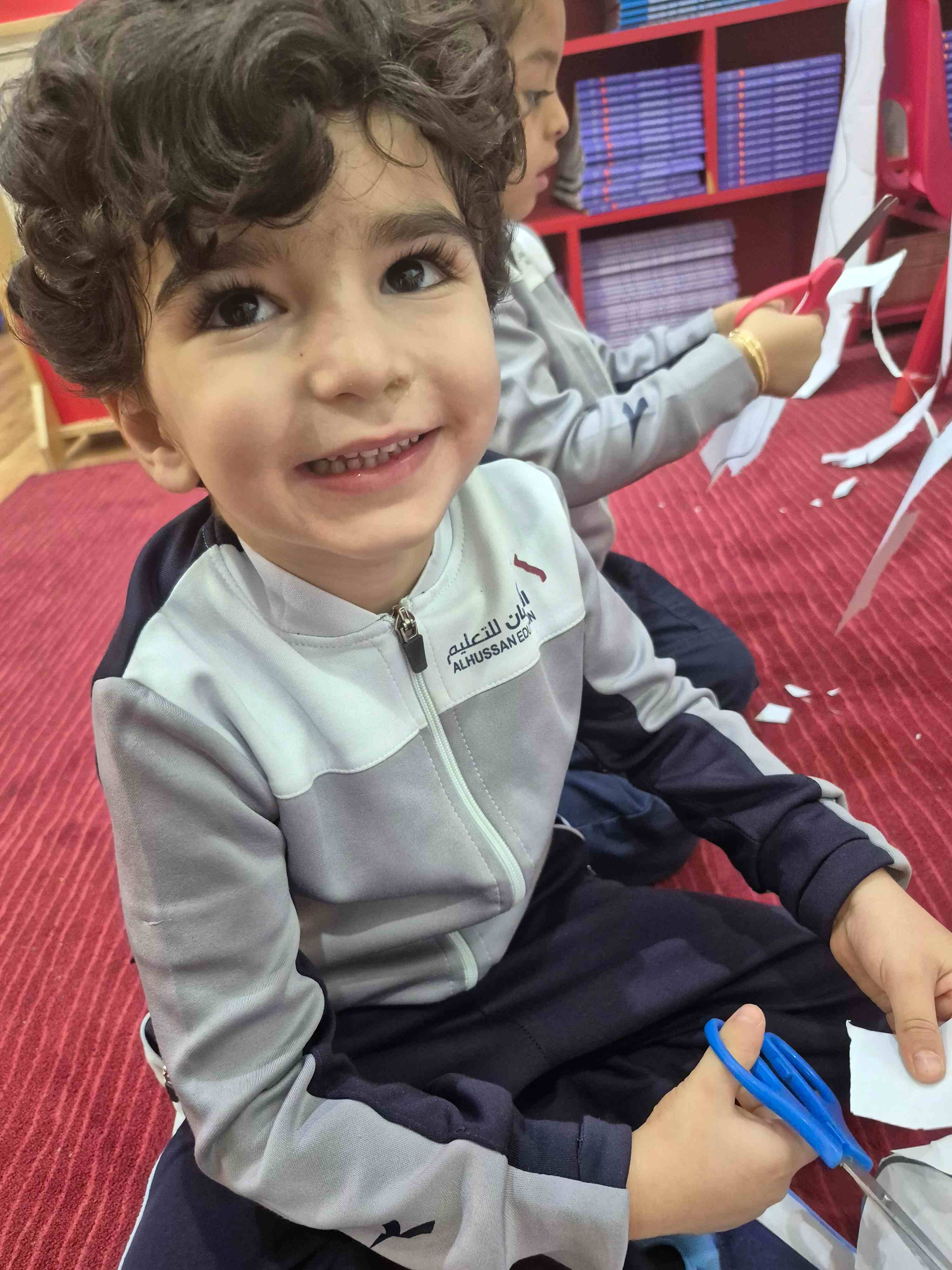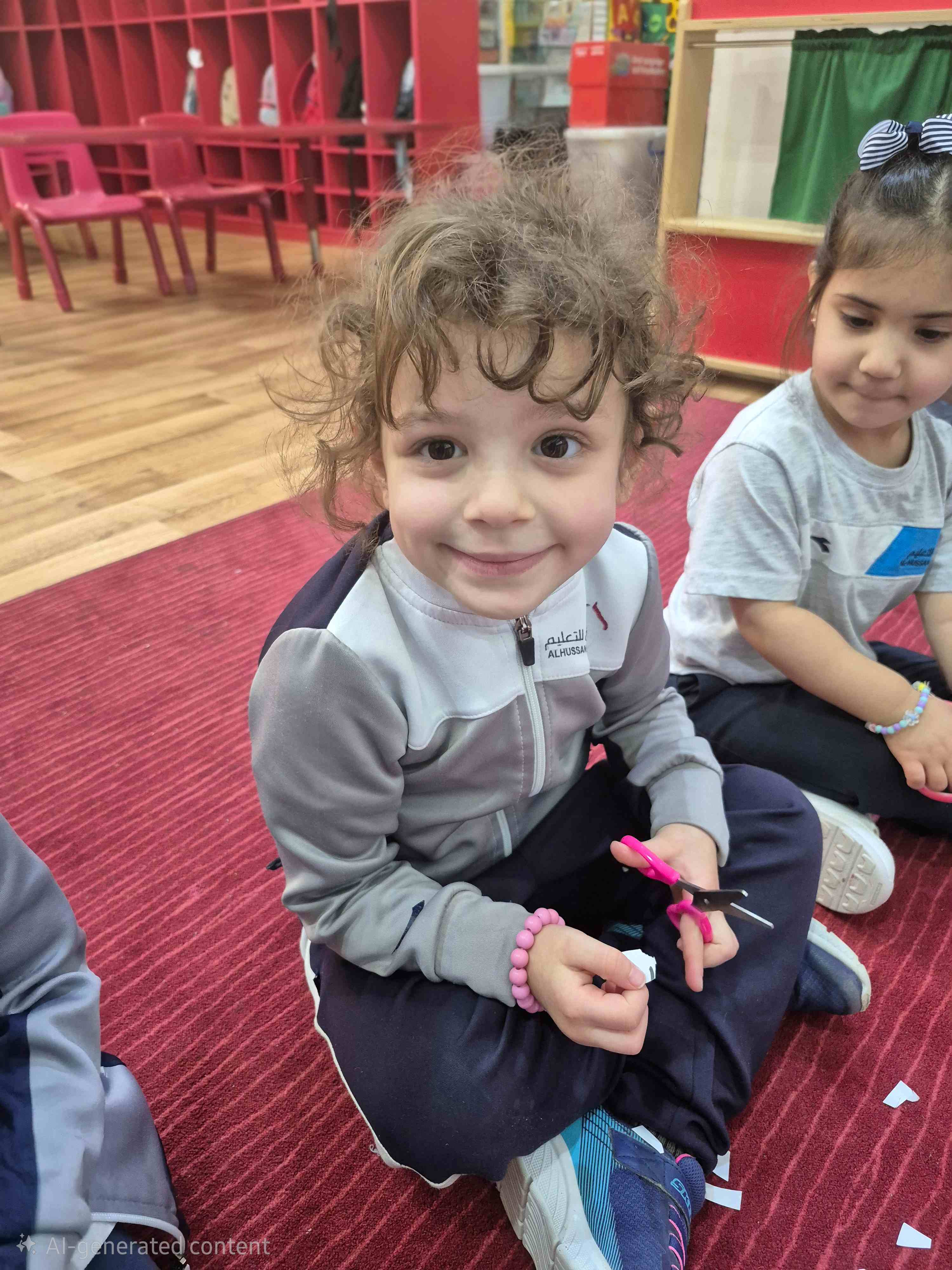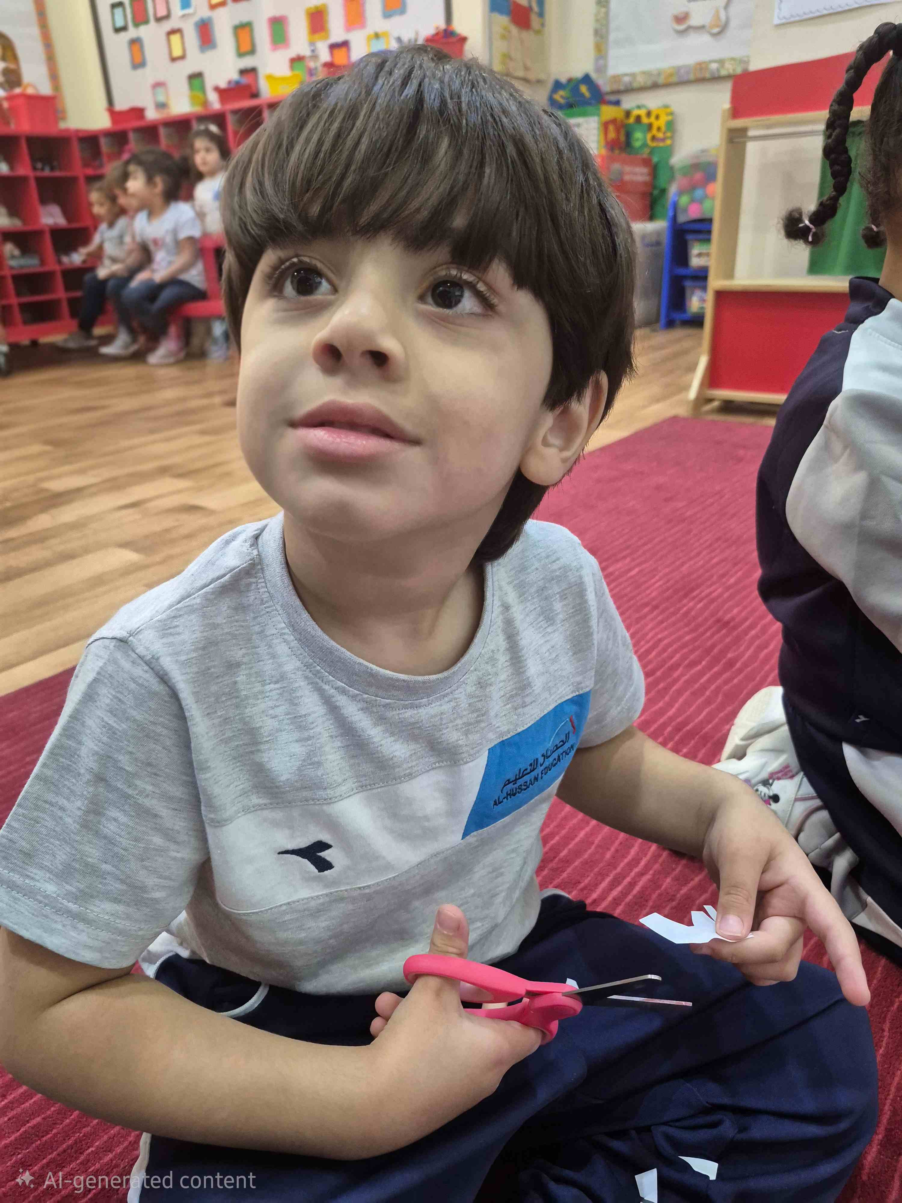 The KG1 students took part in a cutting activity to practice their fine motor skills. Each child was given a strip of paper with a curved line drawn on it. Using safe kid-friendly scissors, students carefully cut along the curved line, following the shape from one end to the other. This activity helped them develop hand–eye coordination, scissor control, and concentration while having fun cutting along the wavy path.