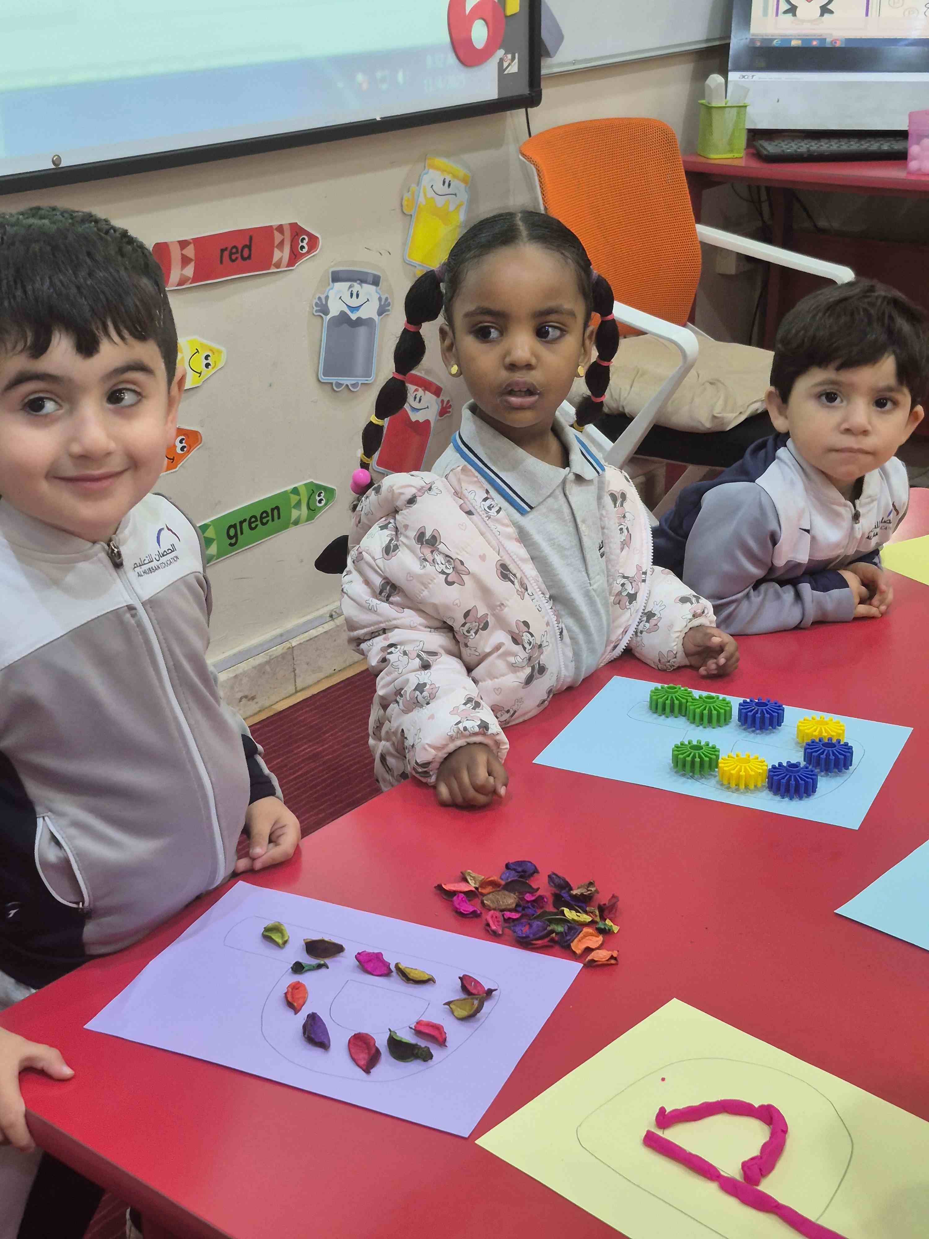 Children traced the letter with dried flower petals, plastic stars, play dough, and colorful pompoms, turning writing practice into a fun sensory experience. 🌸⭐️🟣
