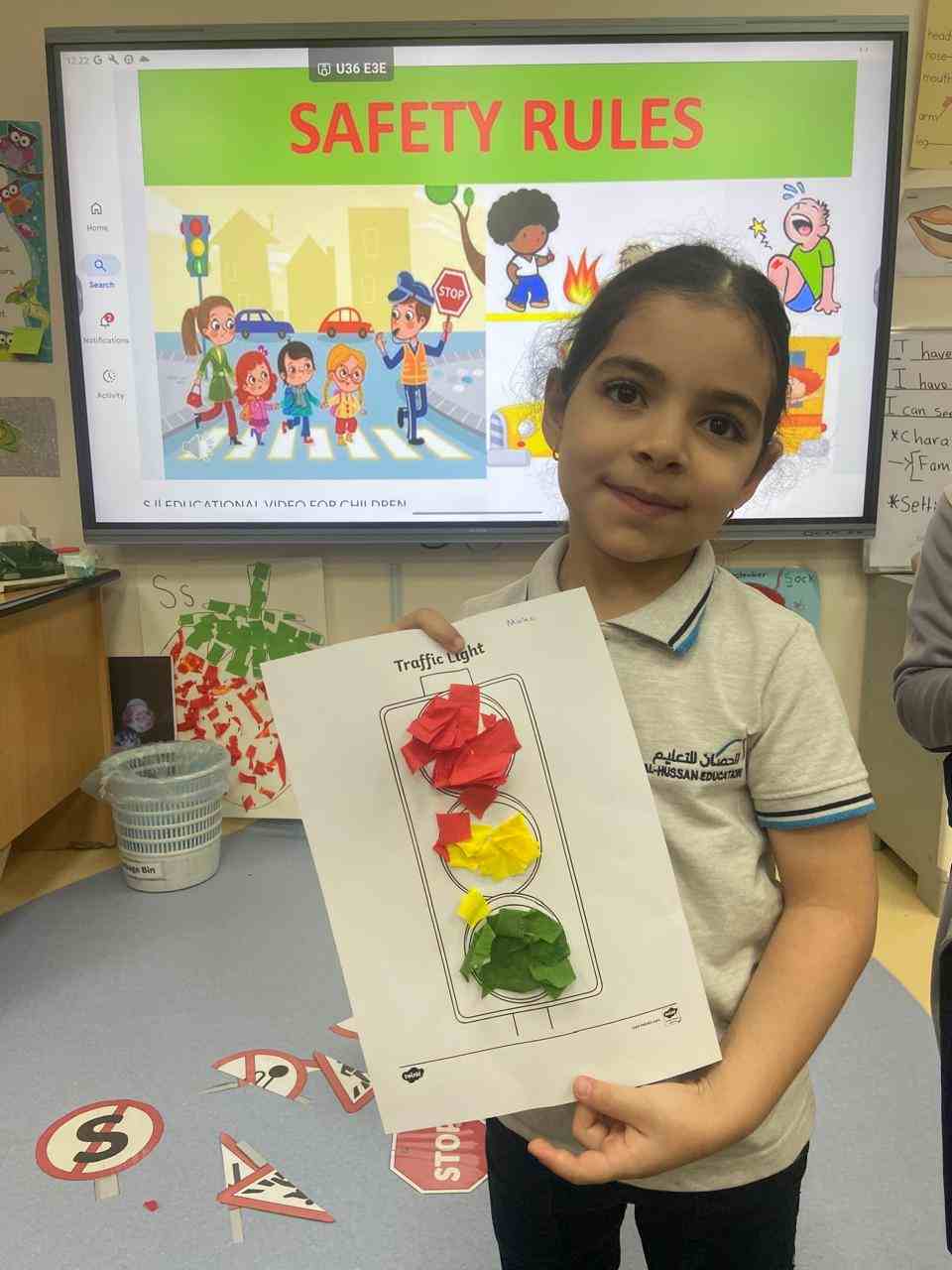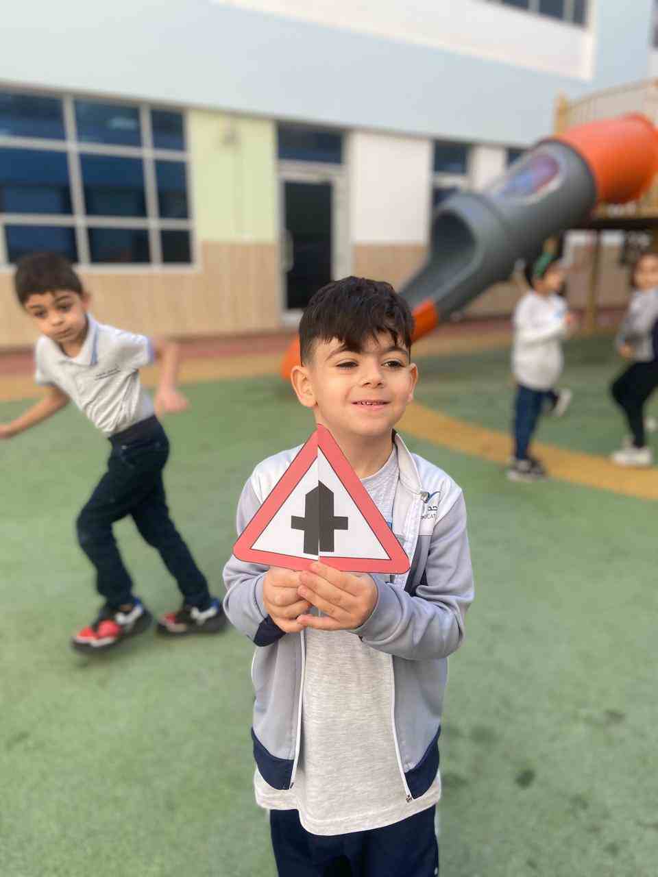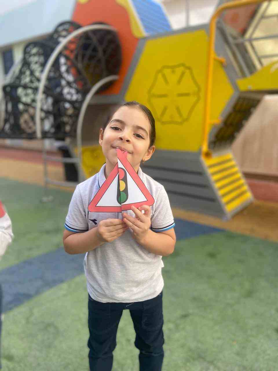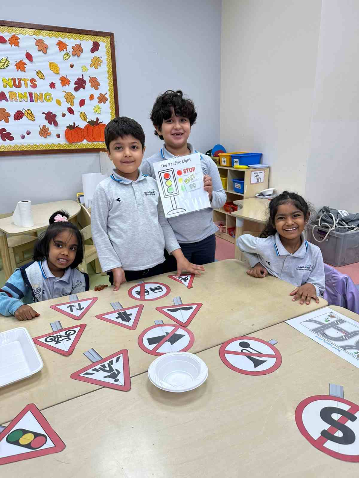 The kindergarten students participated in an engaging Road Safety Activity where they learned about the importance of staying safe on the road. Through fun and interactive lessons, the students explored the meanings of different traffic lights—understanding that red means stop, yellow means get ready, and green means go. They also learned to recognize common road signs, such as the Stop sign and Turn Right sign, and practiced how to respond to them during play-based activities. This hands-on experience helped the young learners develop awareness of traffic rules and safety enjoyably and memorably.