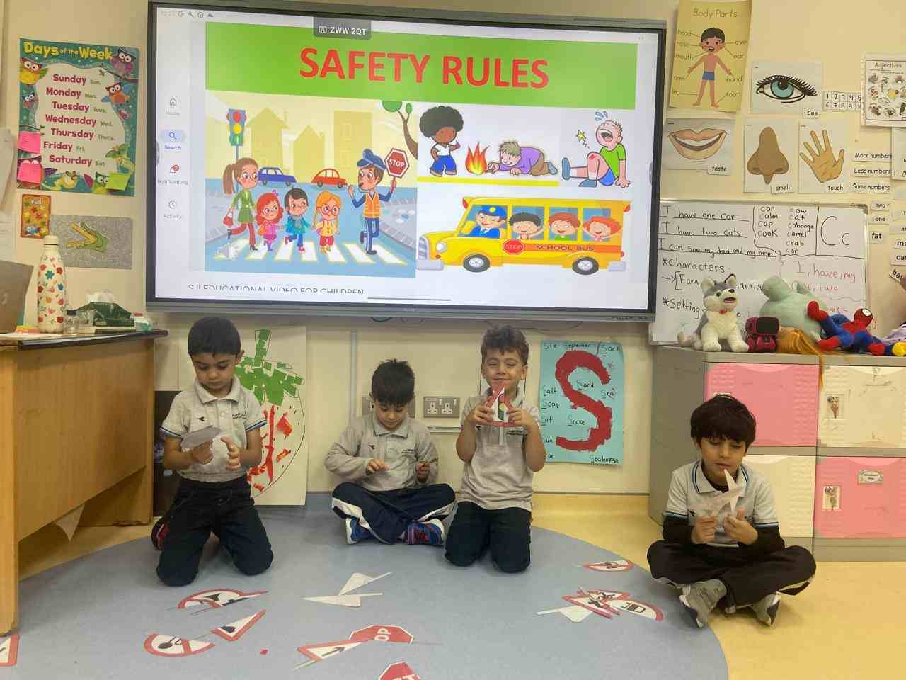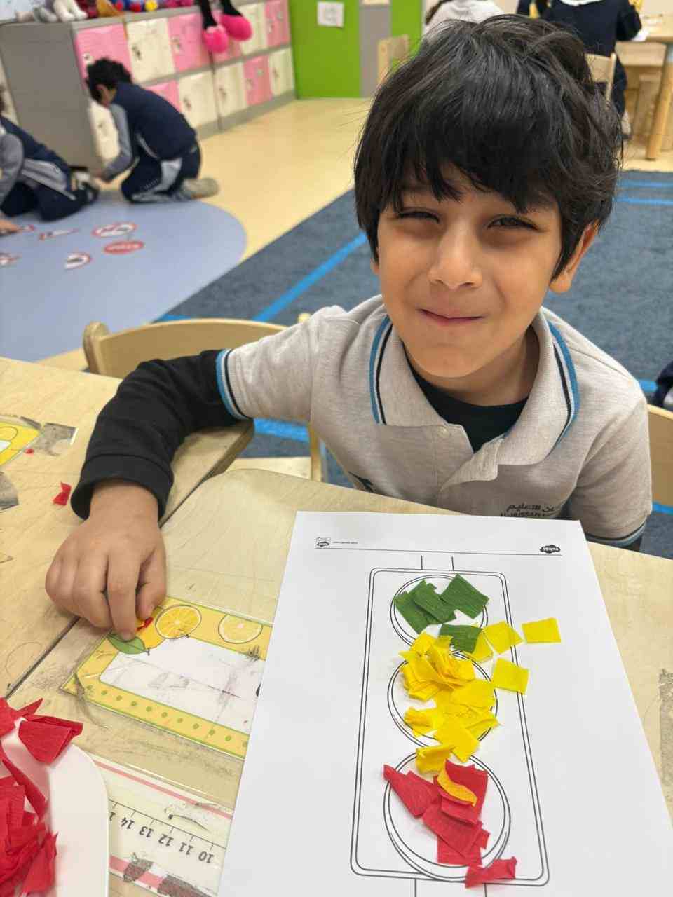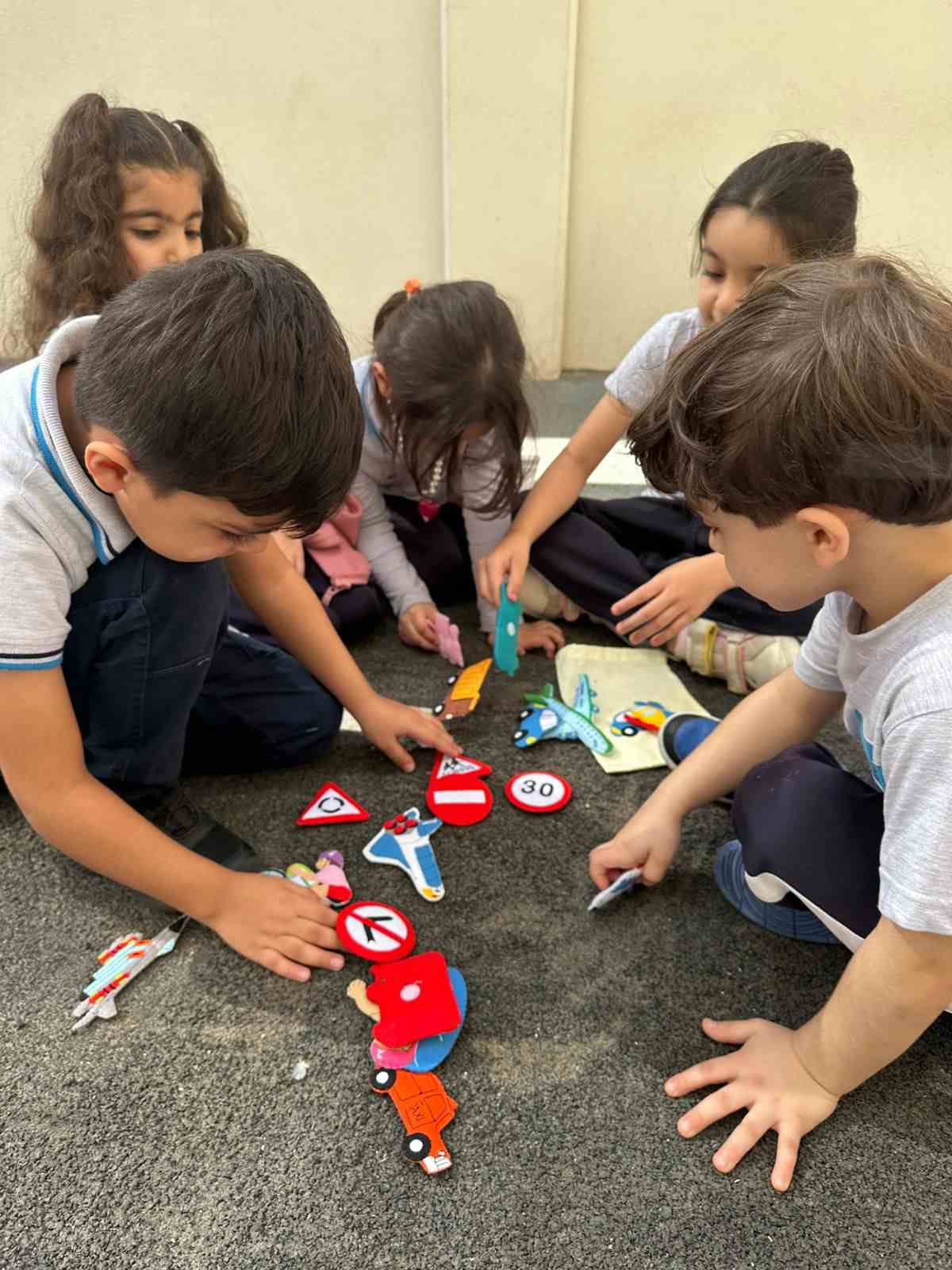 The kindergarten students participated in an engaging Road Safety Activity where they learned about the importance of staying safe on the road. Through fun and interactive lessons, the students explored the meanings of different traffic lights—understanding that red means stop, yellow means get ready, and green means go. They also learned to recognize common road signs, such as the Stop sign and Turn Right sign, and practiced how to respond to them during play-based activities. This hands-on experience helped the young learners develop awareness of traffic rules and safety enjoyably and memorably.