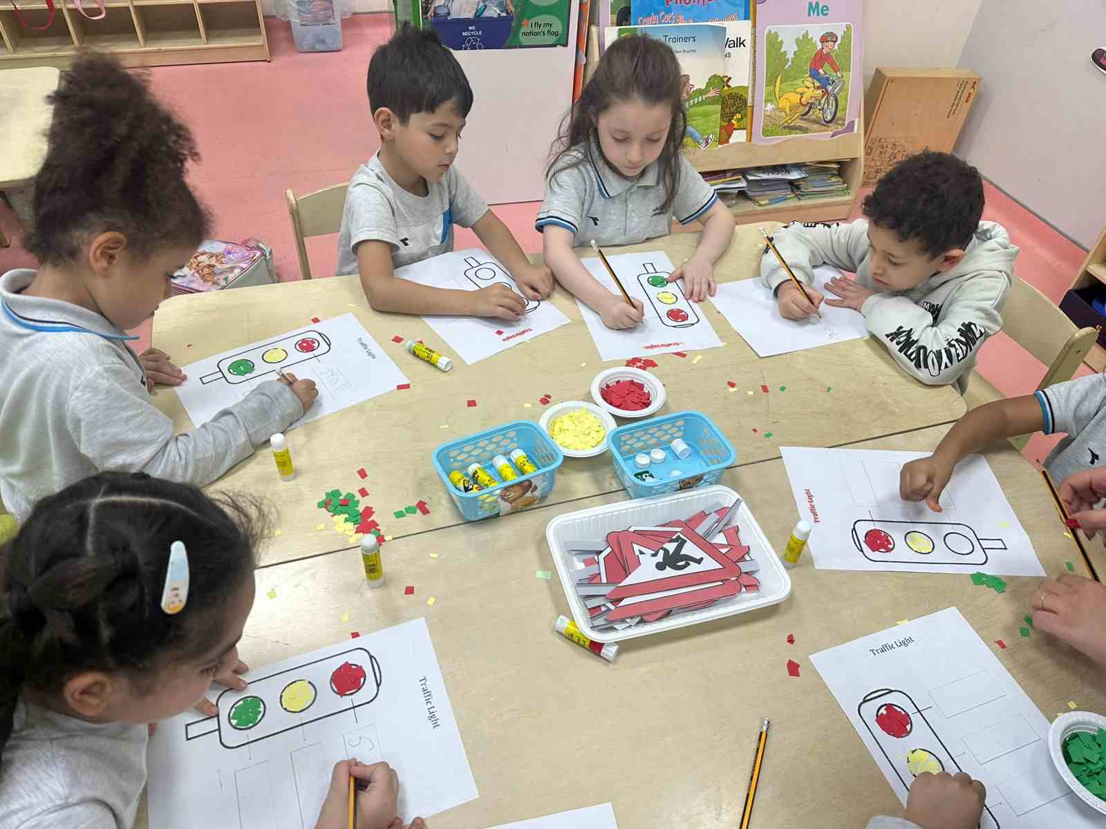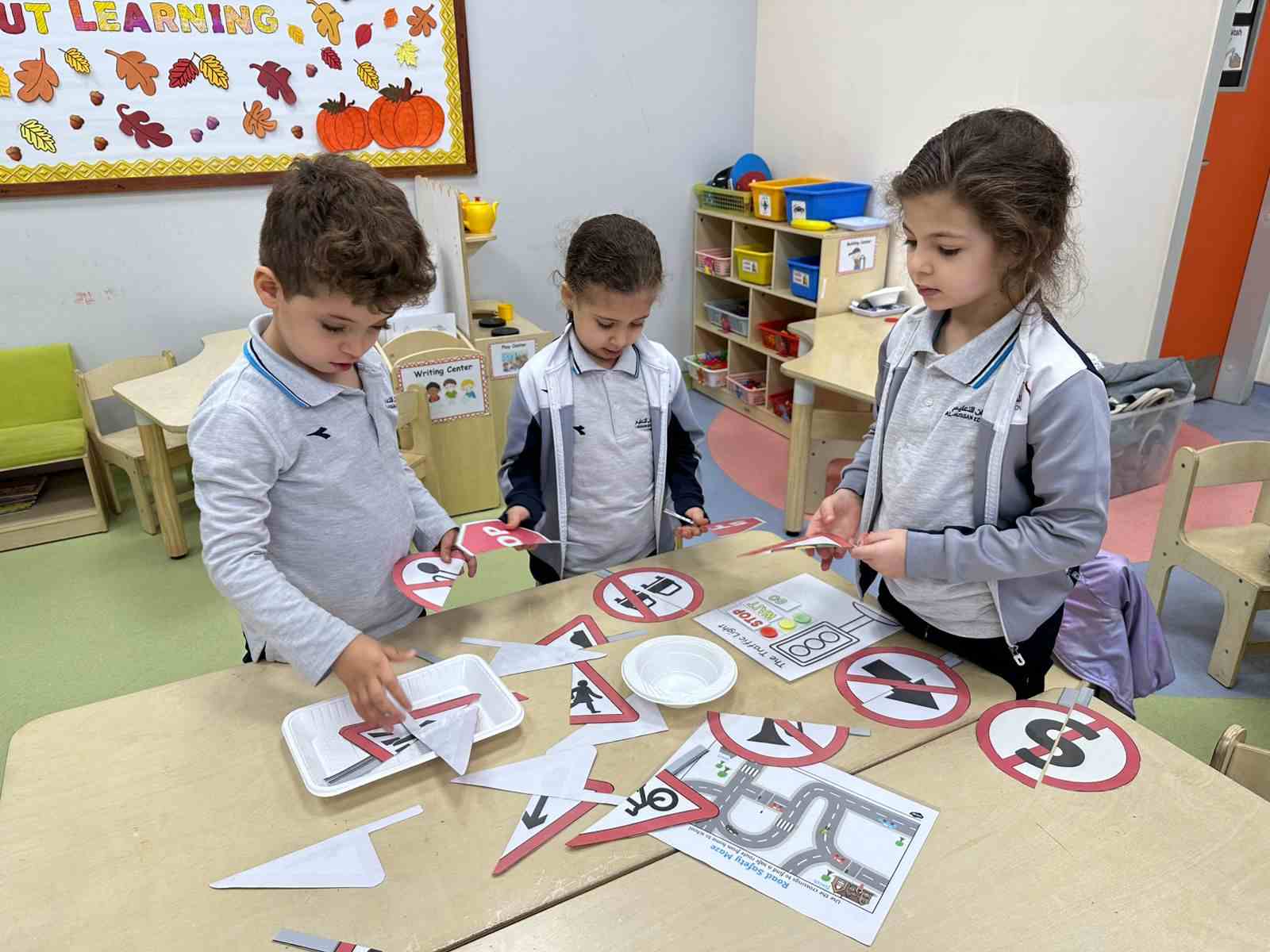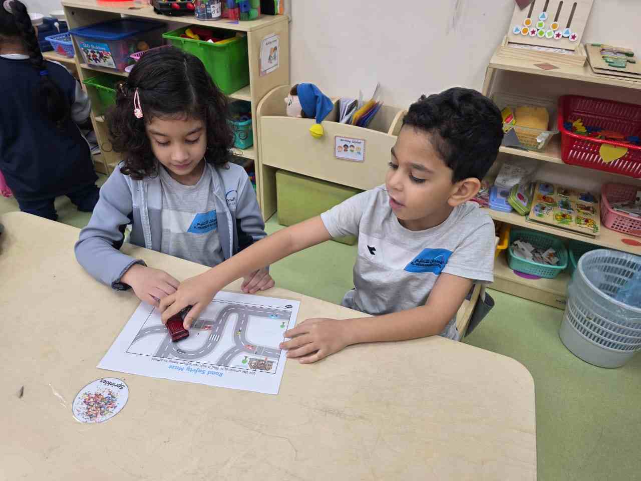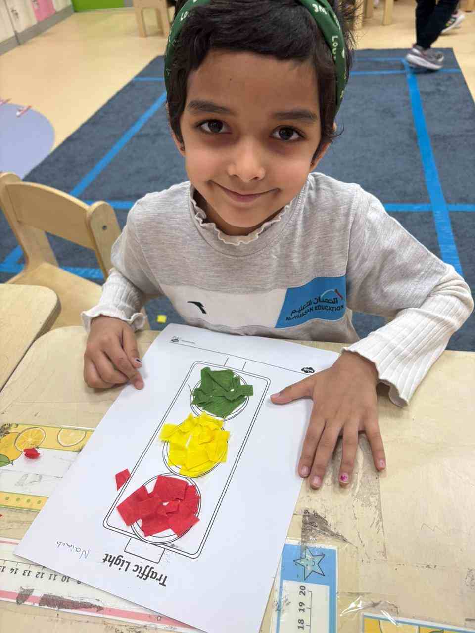 The kindergarten students participated in an engaging Road Safety Activity where they learned about the importance of staying safe on the road. Through fun and interactive lessons, the students explored the meanings of different traffic lights—understanding that red means stop, yellow means get ready, and green means go. They also learned to recognize common road signs, such as the Stop sign and Turn Right sign, and practiced how to respond to them during play-based activities. This hands-on experience helped the young learners develop awareness of traffic rules and safety enjoyably and memorably.
