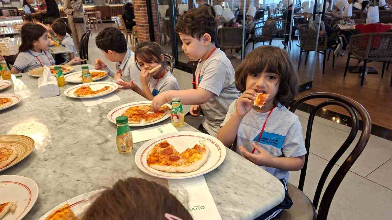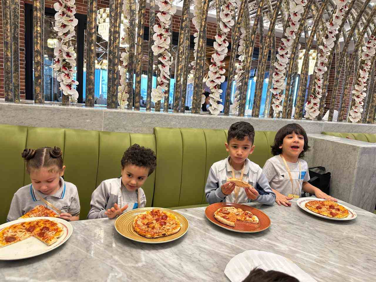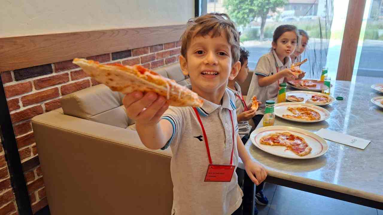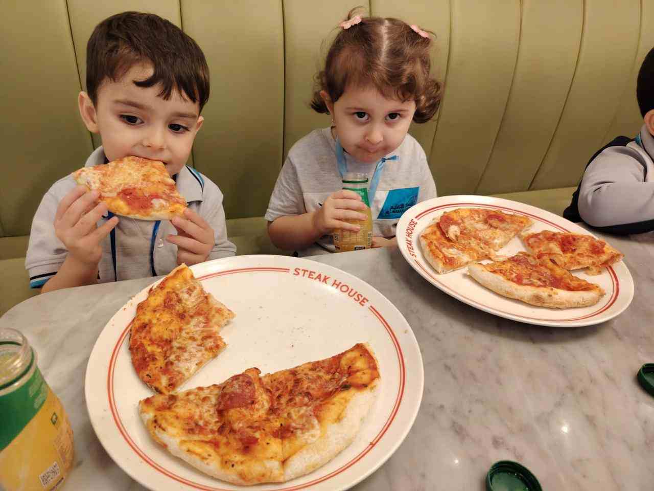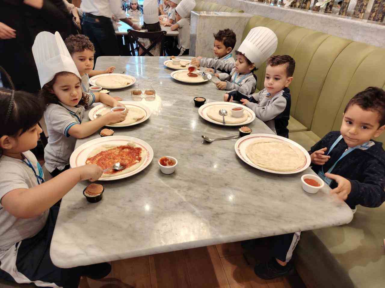 Upon arriving at the restaurant, the young learners transformed into little pizza chefs, proudly wearing their chef hats. They carefully layered sauce, cheese, and pepperoni, creating their own delicious pizzas. 🍕 while waiting for their pizzas to bake, the children stayed engaged with their coloring books.