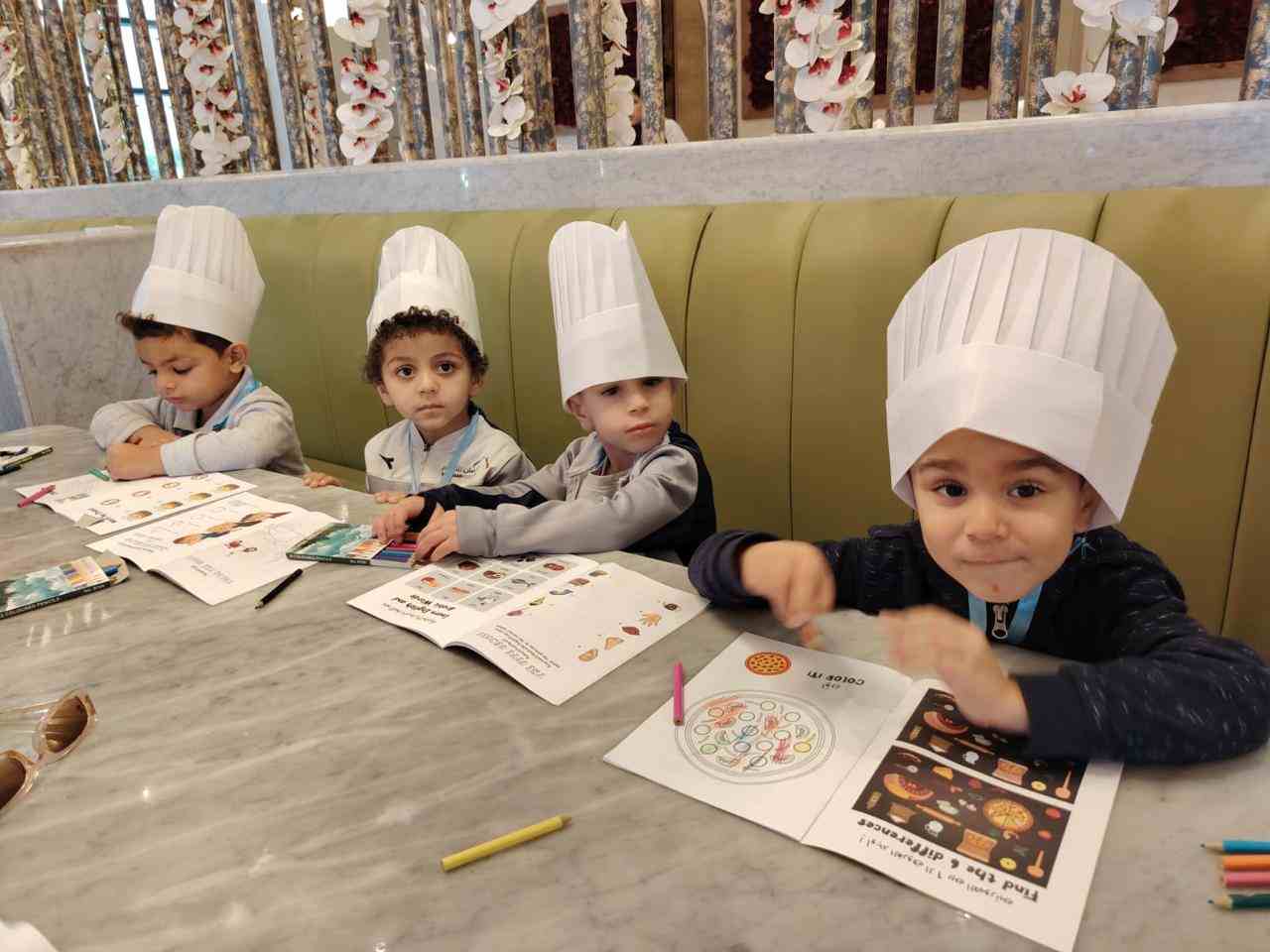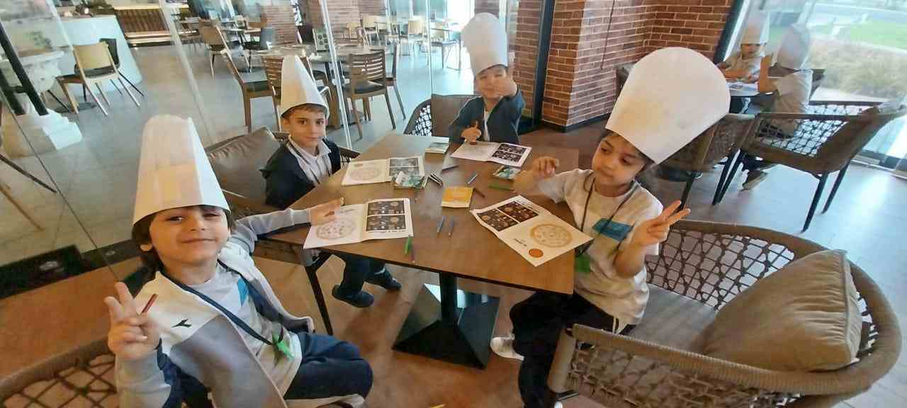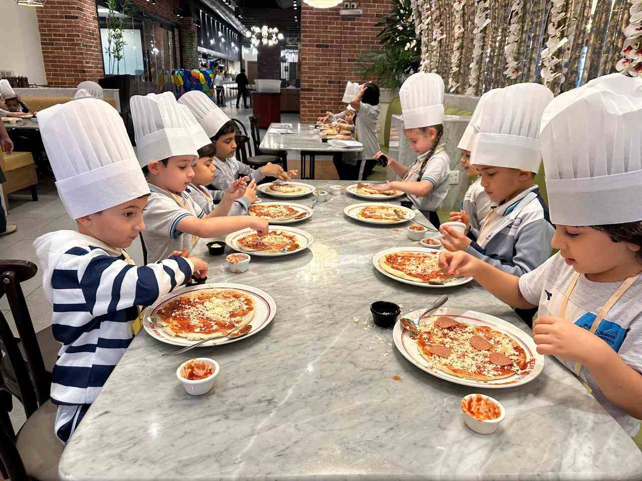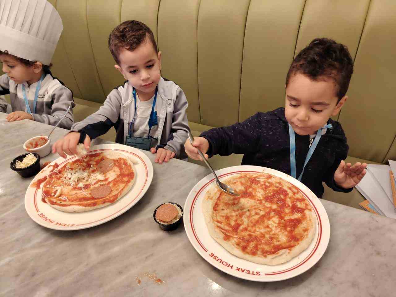 Upon arriving at the restaurant, the young learners transformed into little pizza chefs, proudly wearing their chef hats. They carefully layered sauce, cheese, and pepperoni, creating their own delicious pizzas. 🍕 while waiting for their pizzas to bake, the children stayed engaged with their coloring books.
