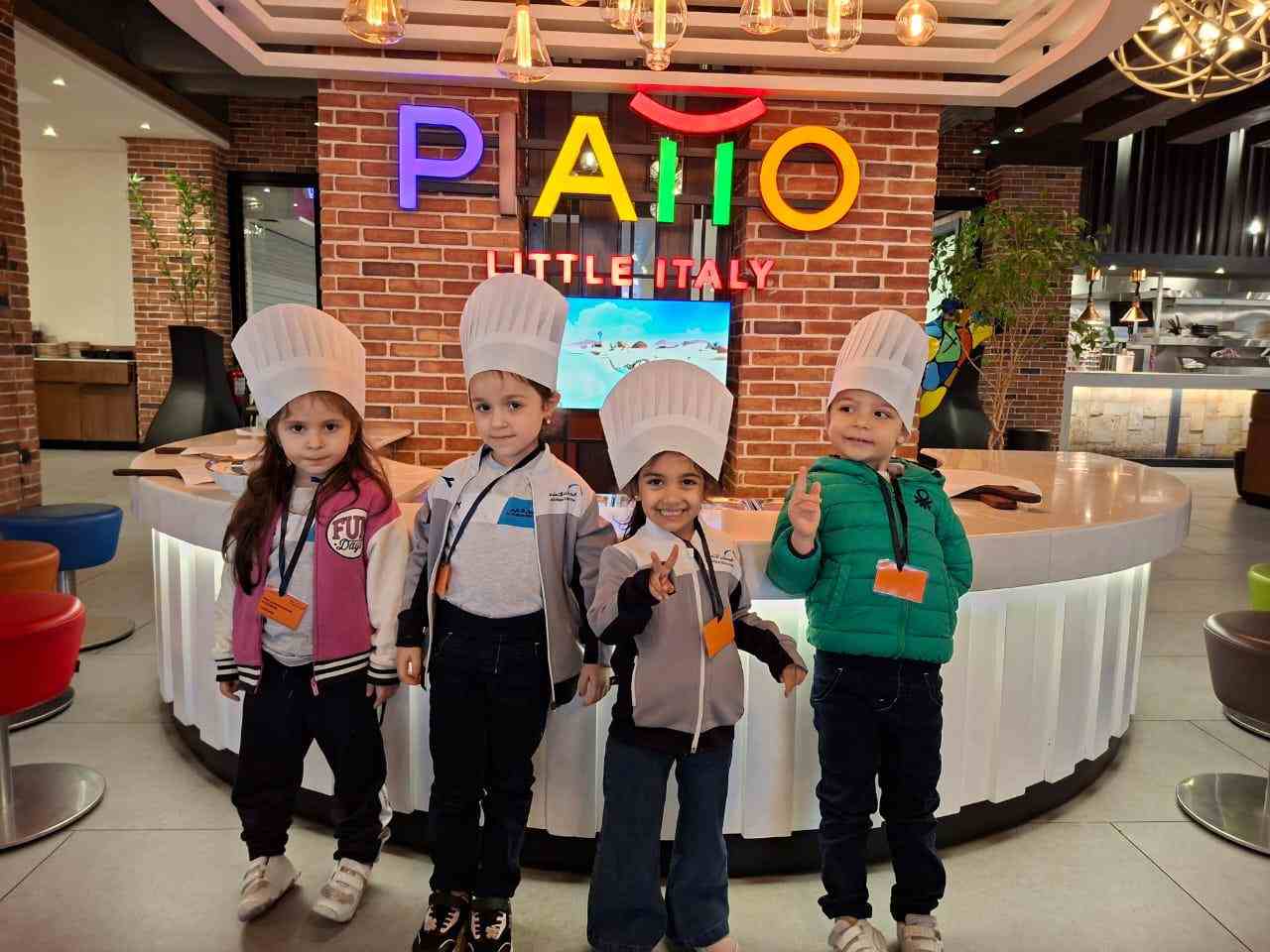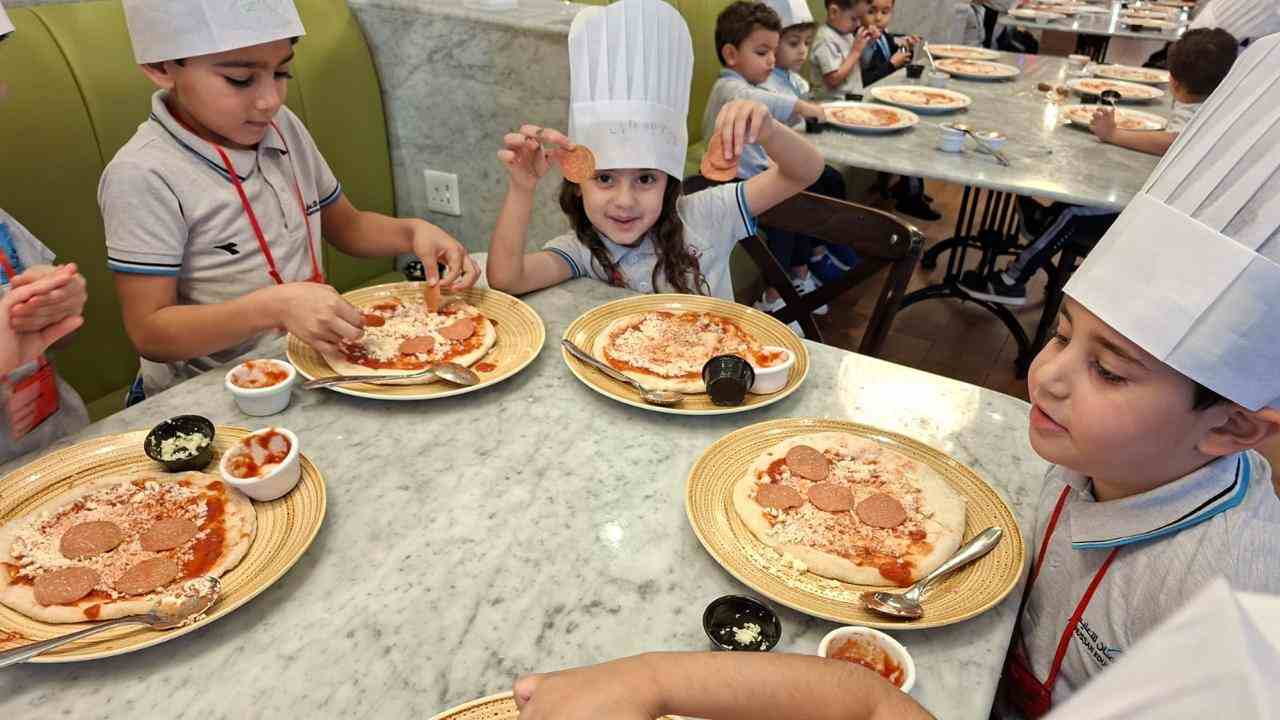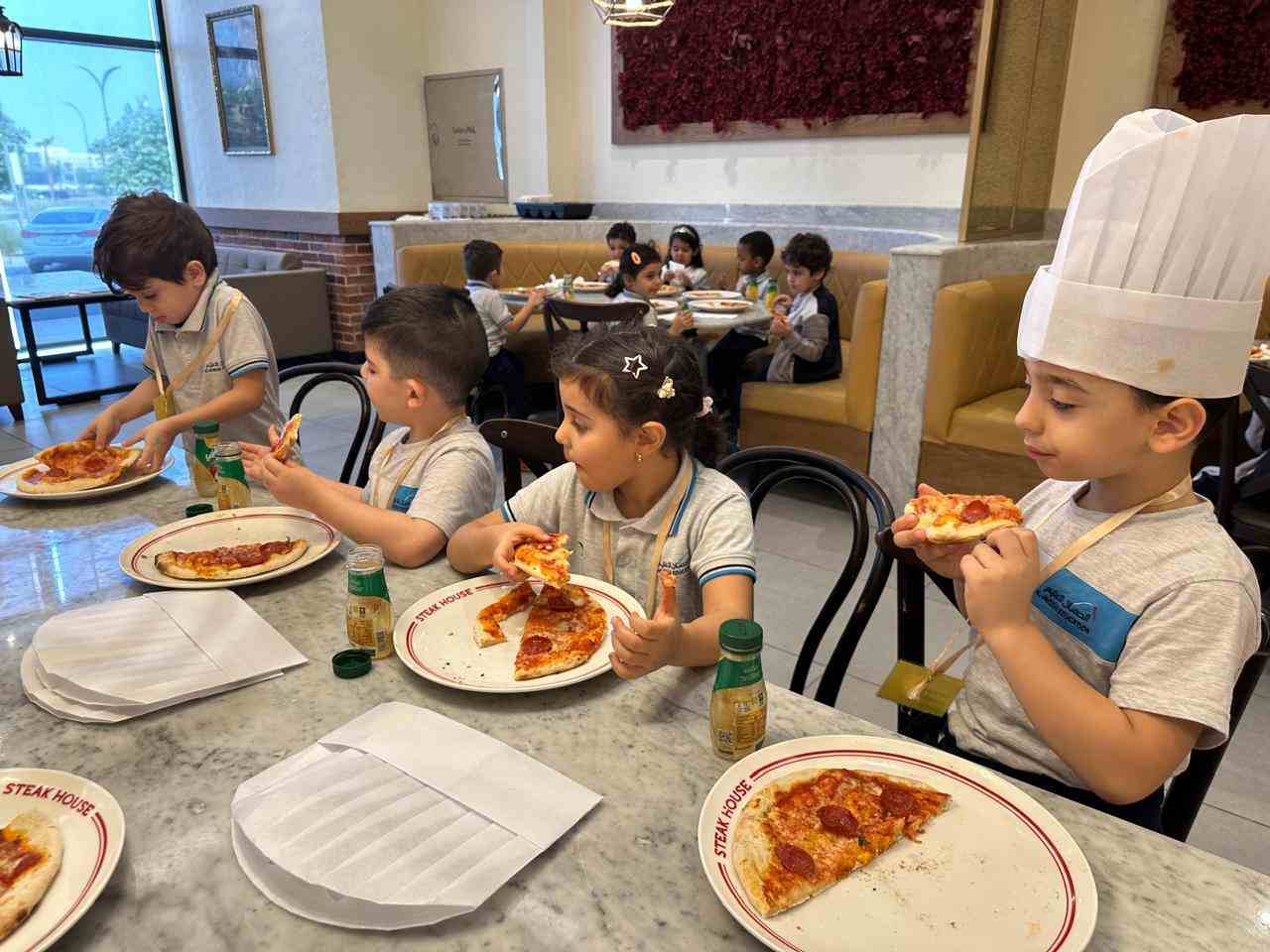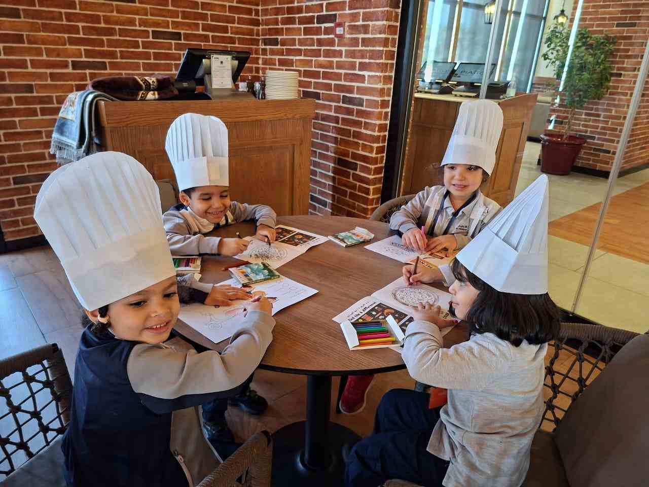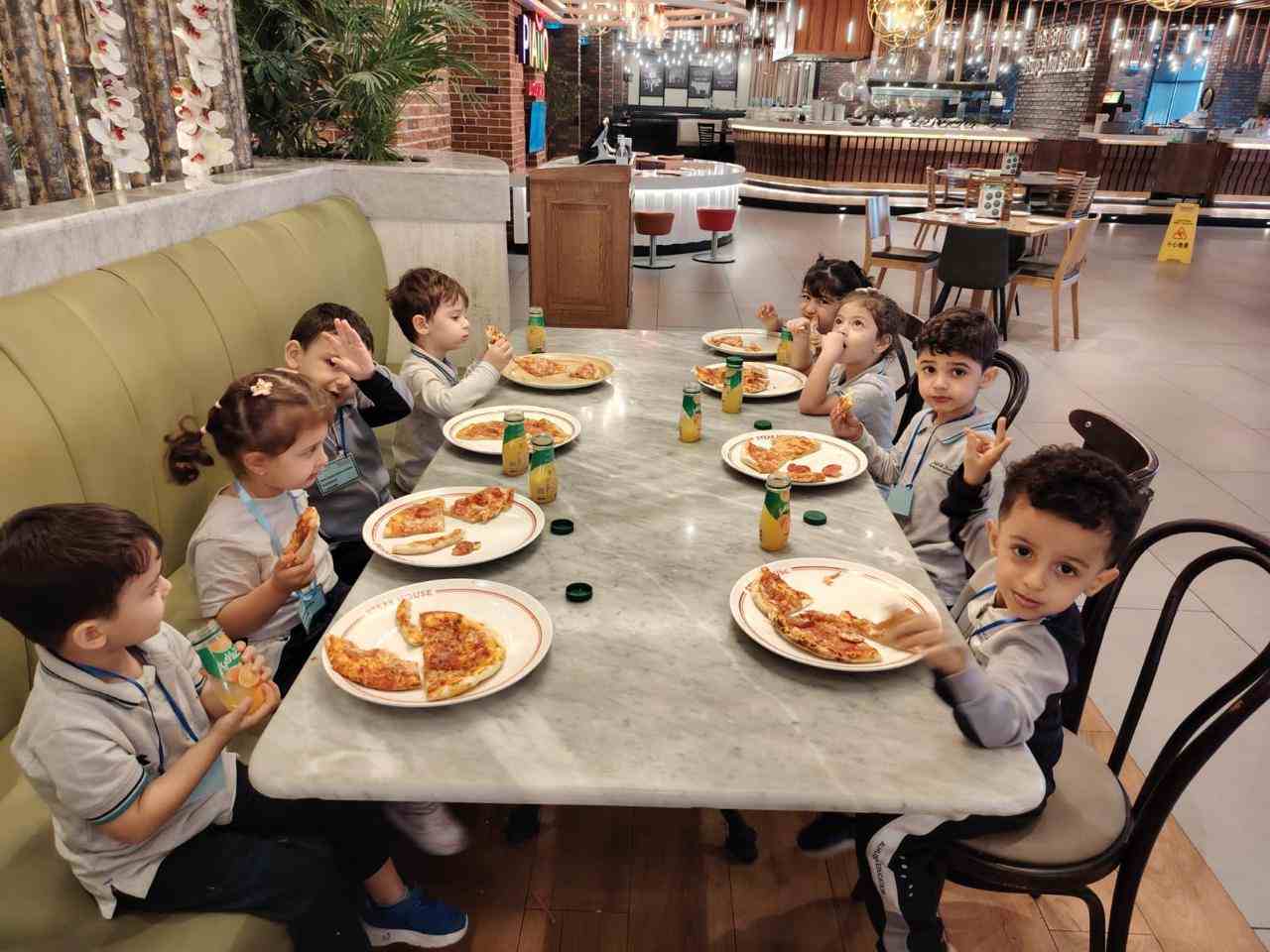 Upon arriving at the restaurant, the young learners transformed into little pizza chefs, proudly wearing their chef hats. They carefully layered sauce, cheese, and pepperoni, creating their own delicious pizzas. 🍕 while waiting for their pizzas to bake, the children stayed engaged with their coloring books.