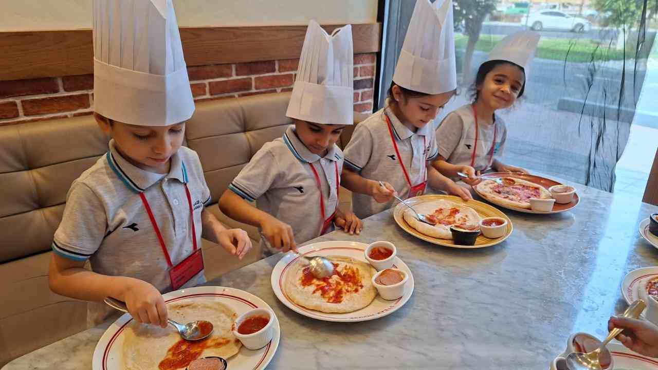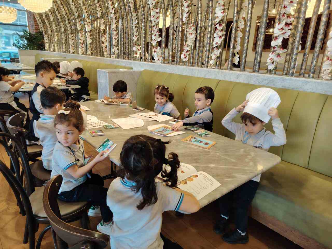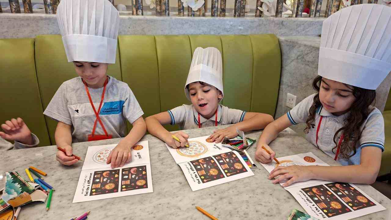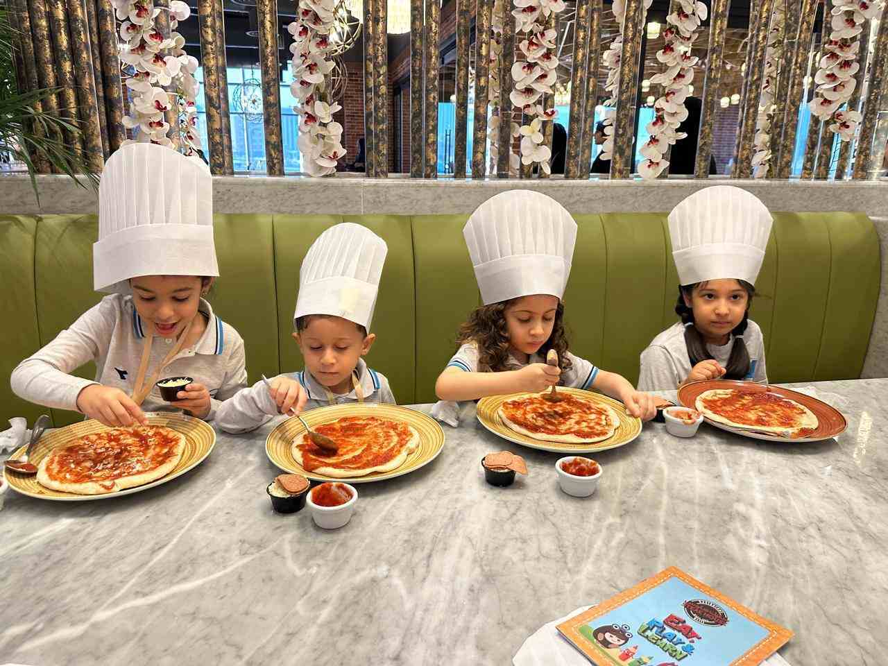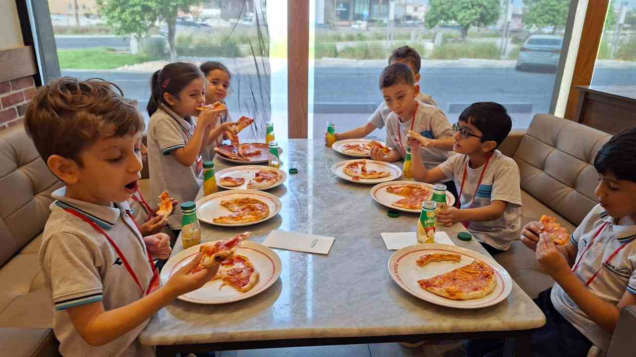 Upon arriving at the restaurant, the young learners transformed into little pizza chefs, proudly wearing their chef hats. They carefully layered sauce, cheese, and pepperoni, creating their own delicious pizzas. 🍕 while waiting for their pizzas to bake, the children stayed engaged with their coloring books.