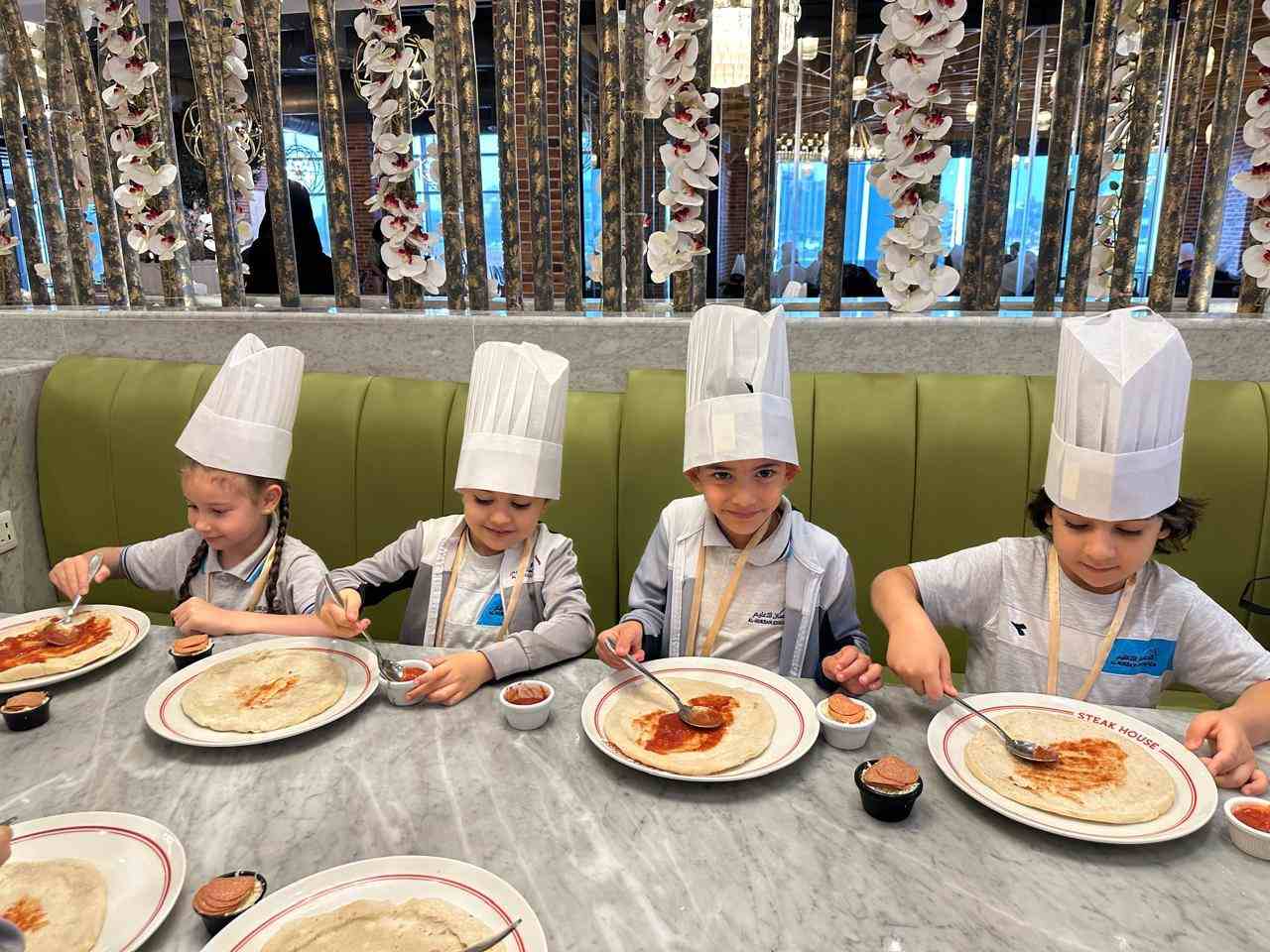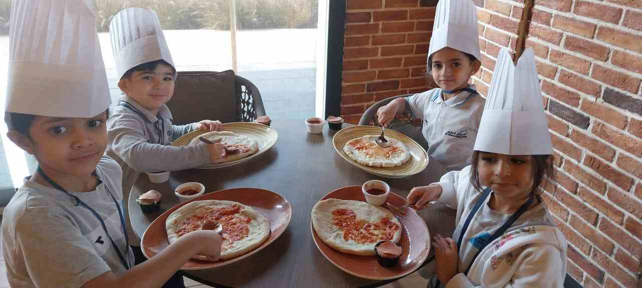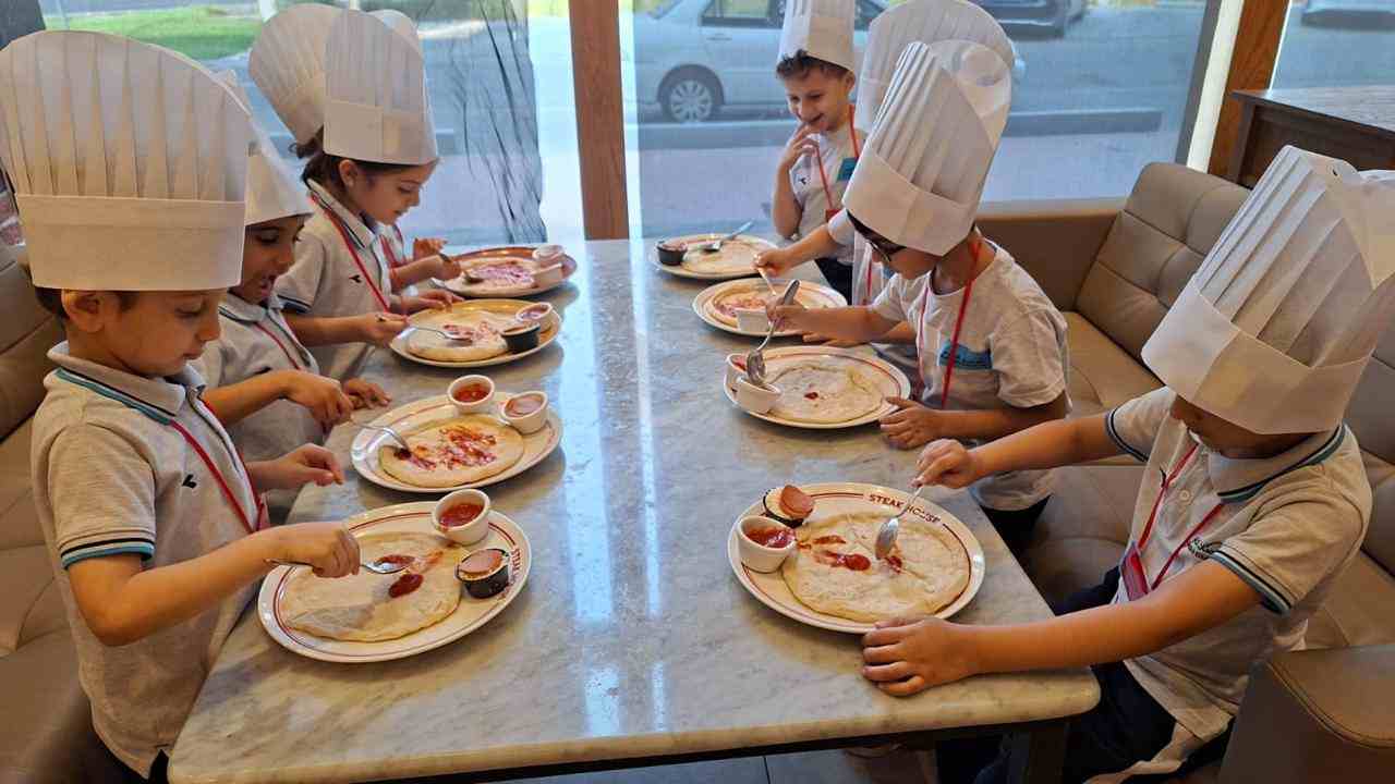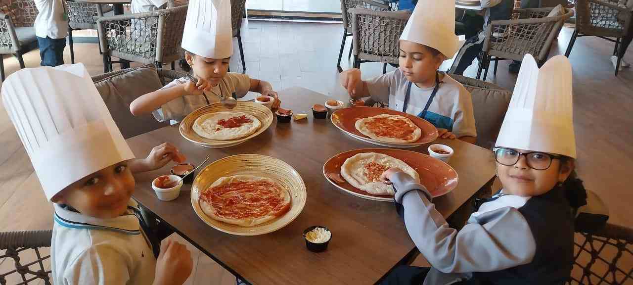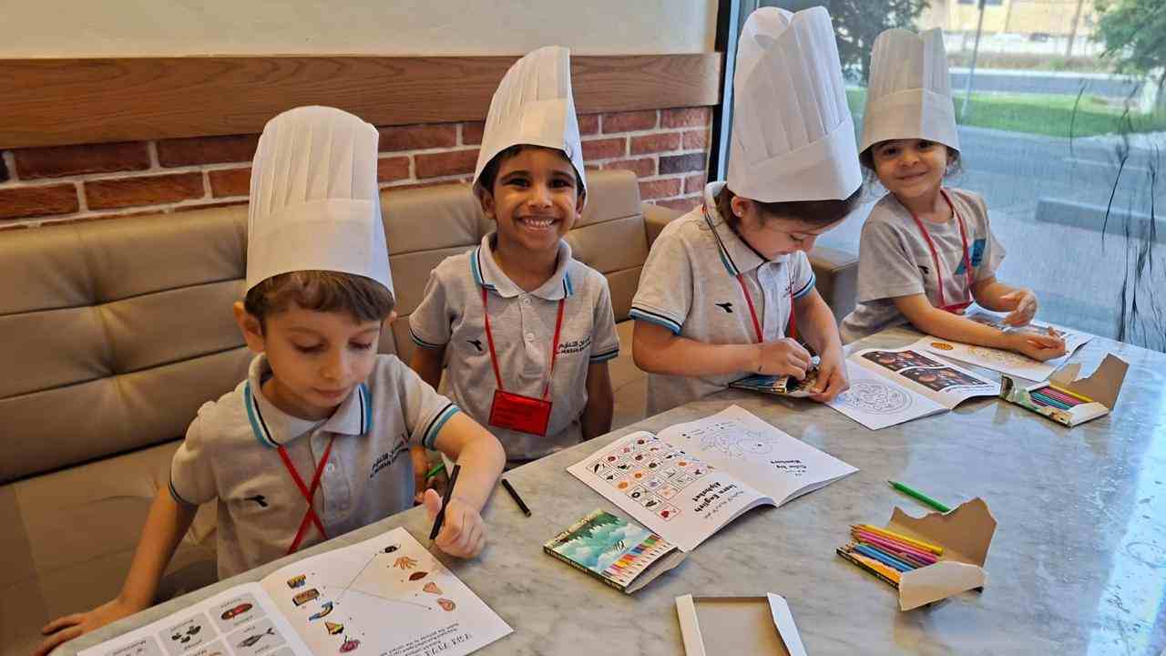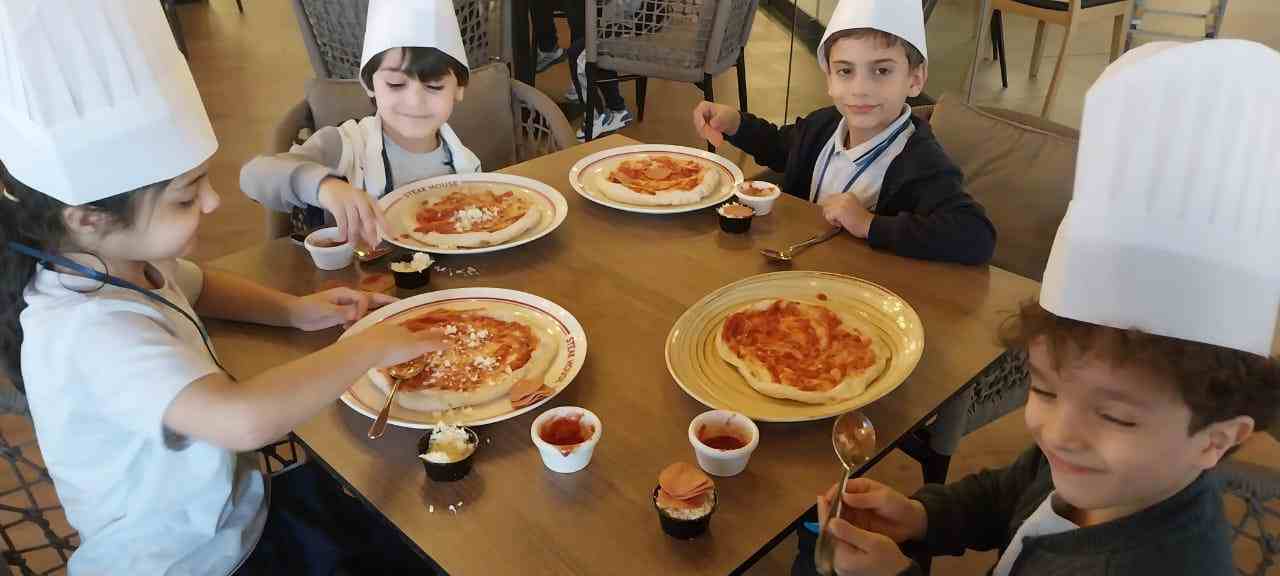 Upon arriving at the restaurant, the young learners transformed into little pizza chefs, proudly wearing their chef hats. They carefully layered sauce, cheese, and pepperoni, creating their own delicious pizzas. 🍕 while waiting for their pizzas to bake, the children stayed engaged with their coloring books.