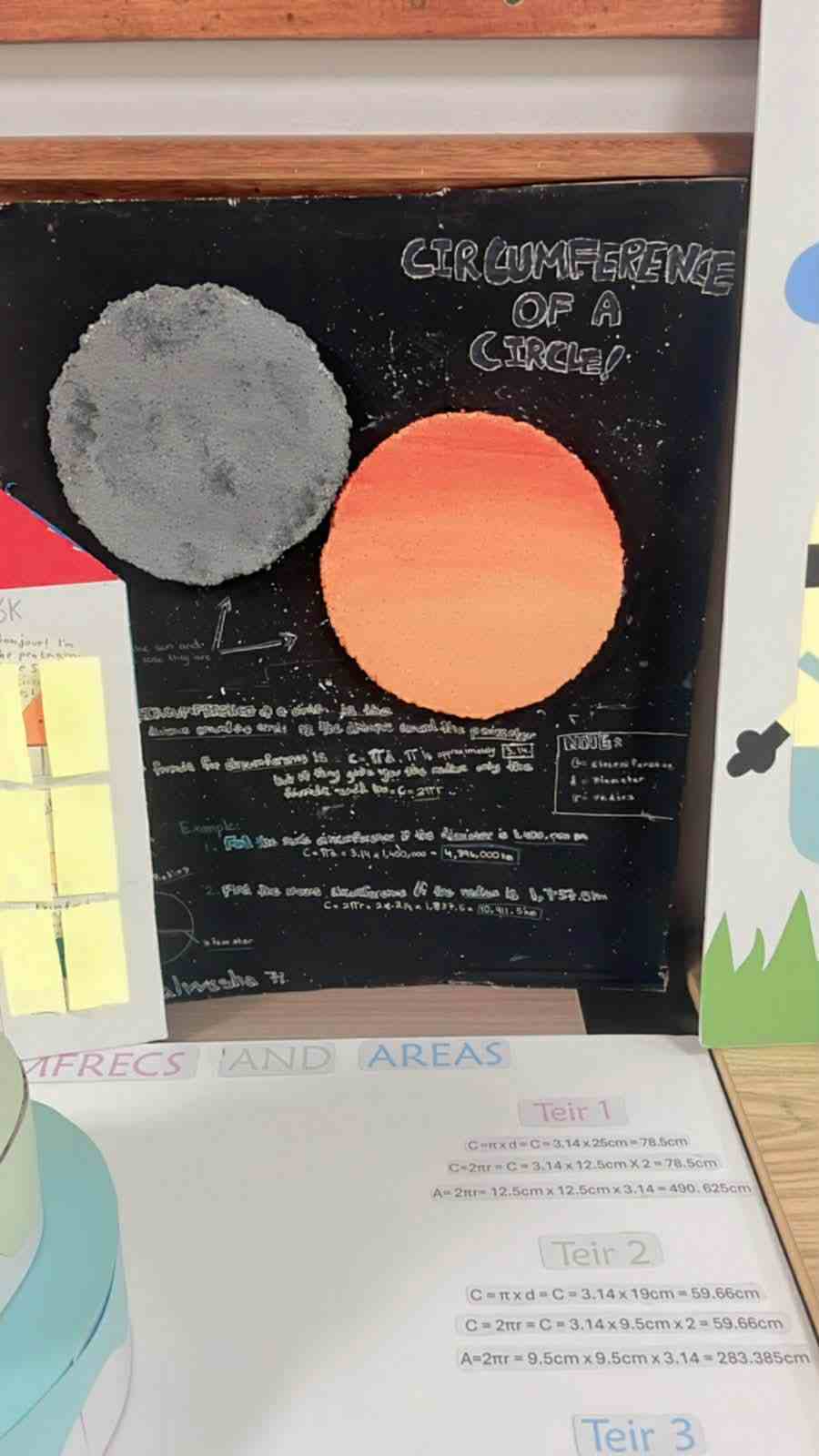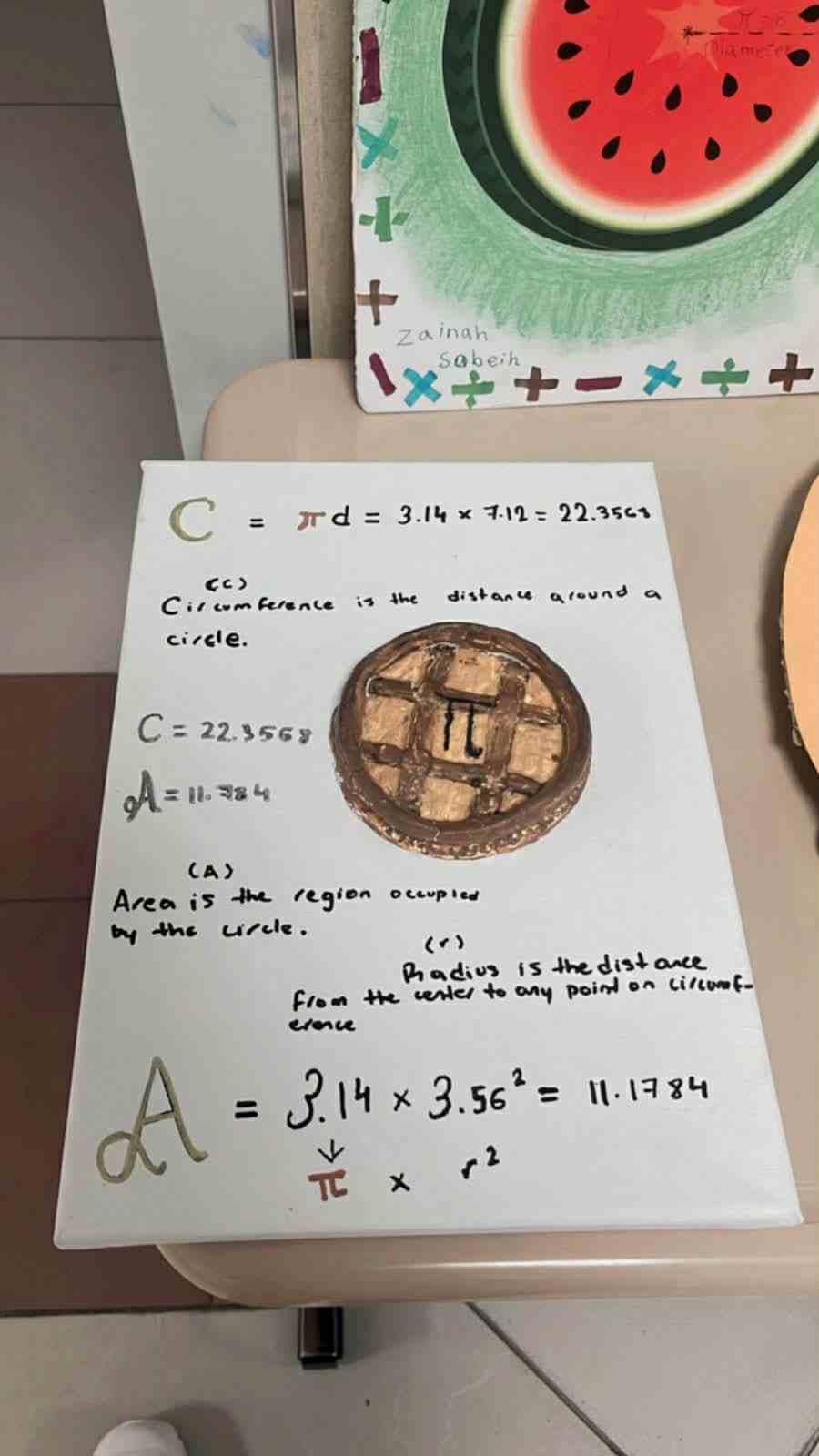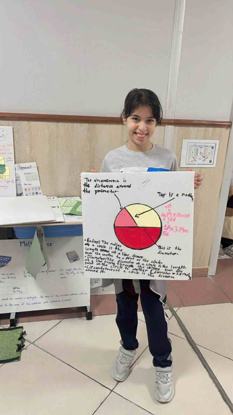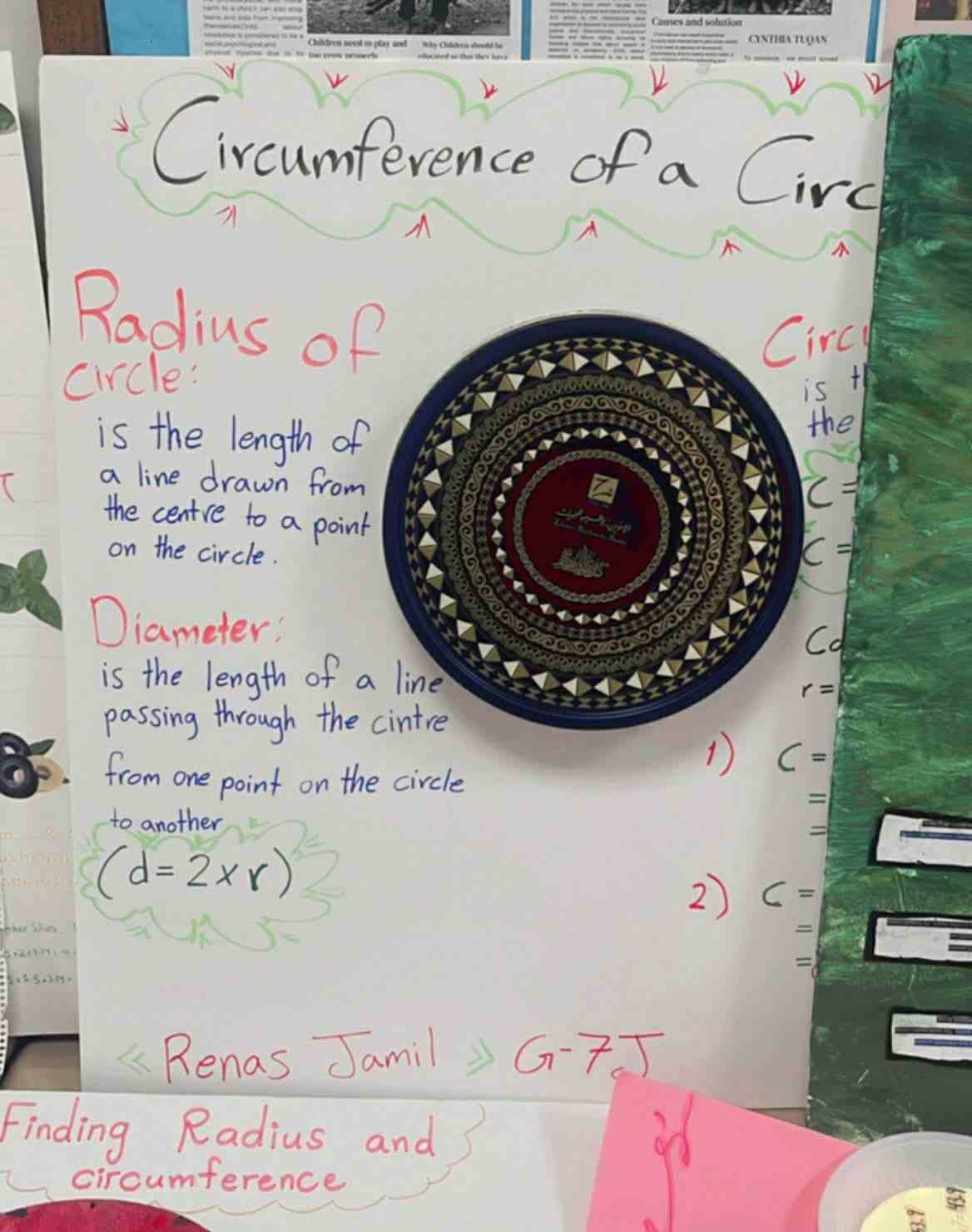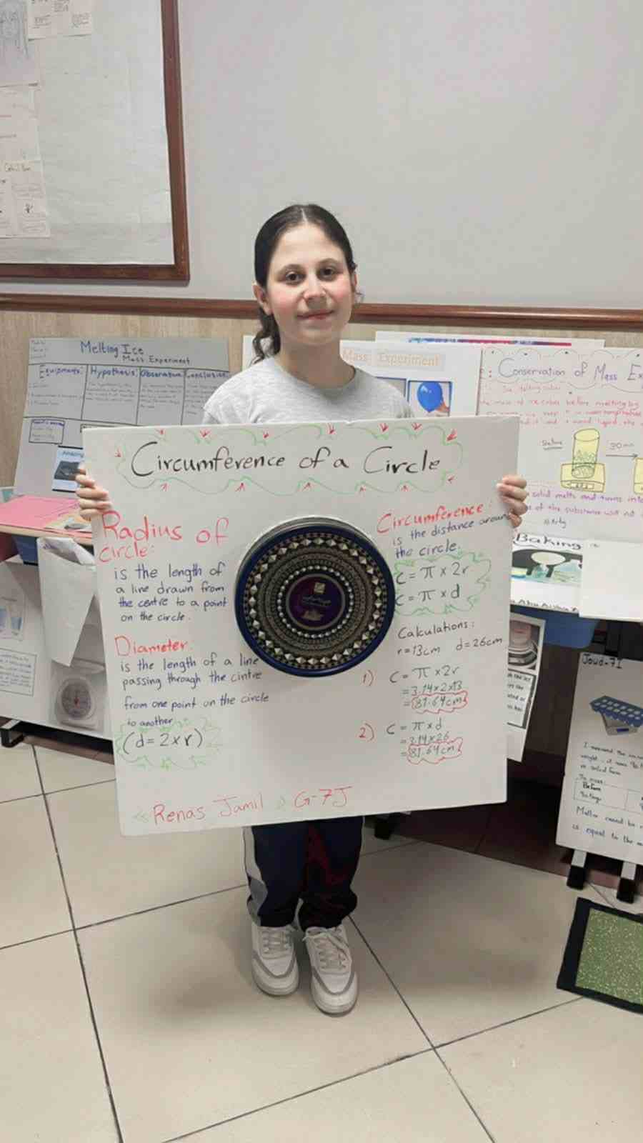 To deepen their understanding, students practiced using formulas, solved real-life problems, and drew circles to visualize the relationship between radius, diameter, area, and circumference. Their work demonstrated accuracy, logical thinking, and the ability to apply mathematical concepts effectively.