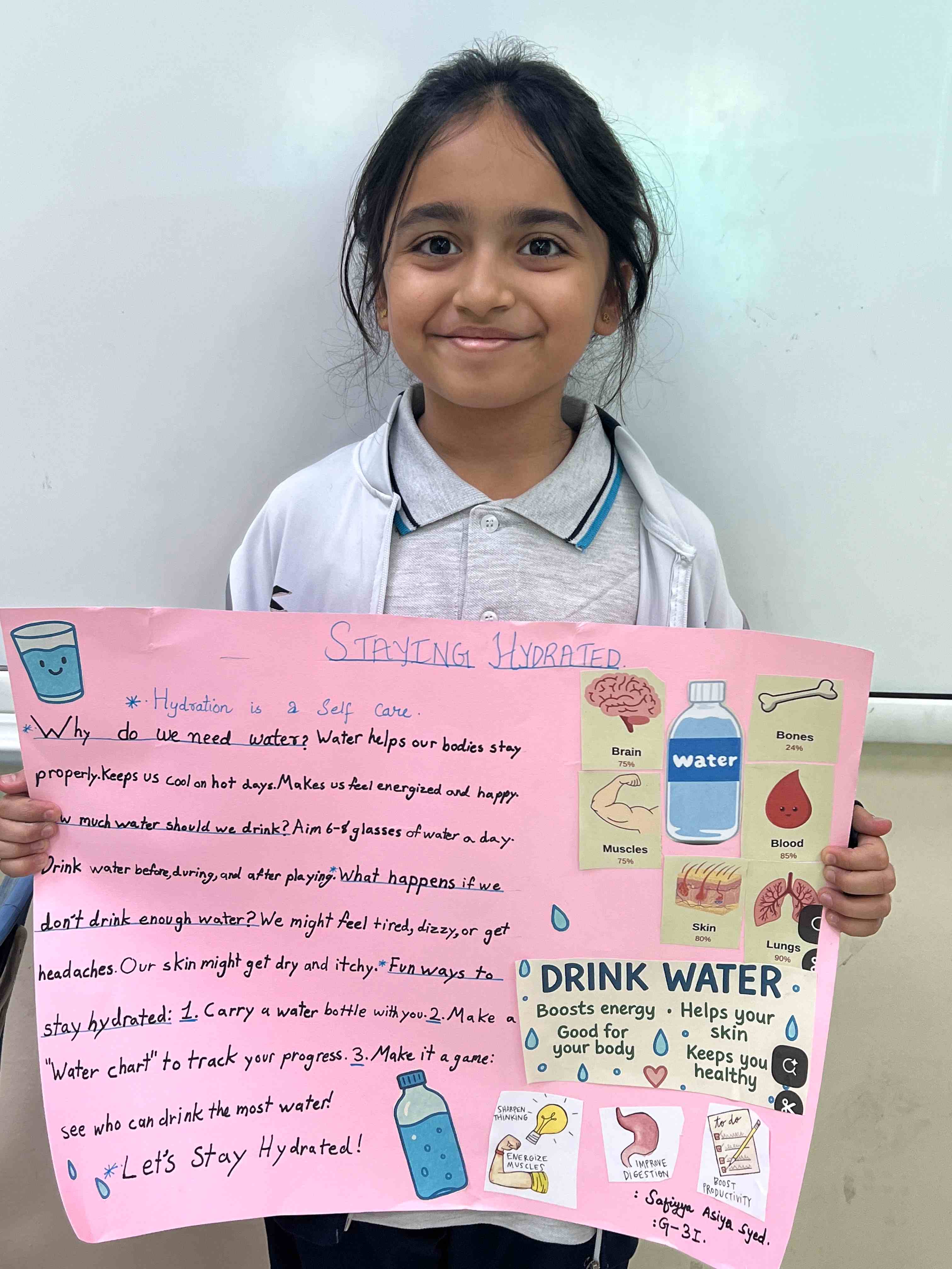 Our girls from Grades 3 to 5 took part in well-being sessions on Healthy Plate Making, Stress Management, Happy Mind, and Staying Hydrated. They created balanced food plates, practiced mindfulness and breathing exercises, and learned the value of staying hydrated through fun, interactive activities.