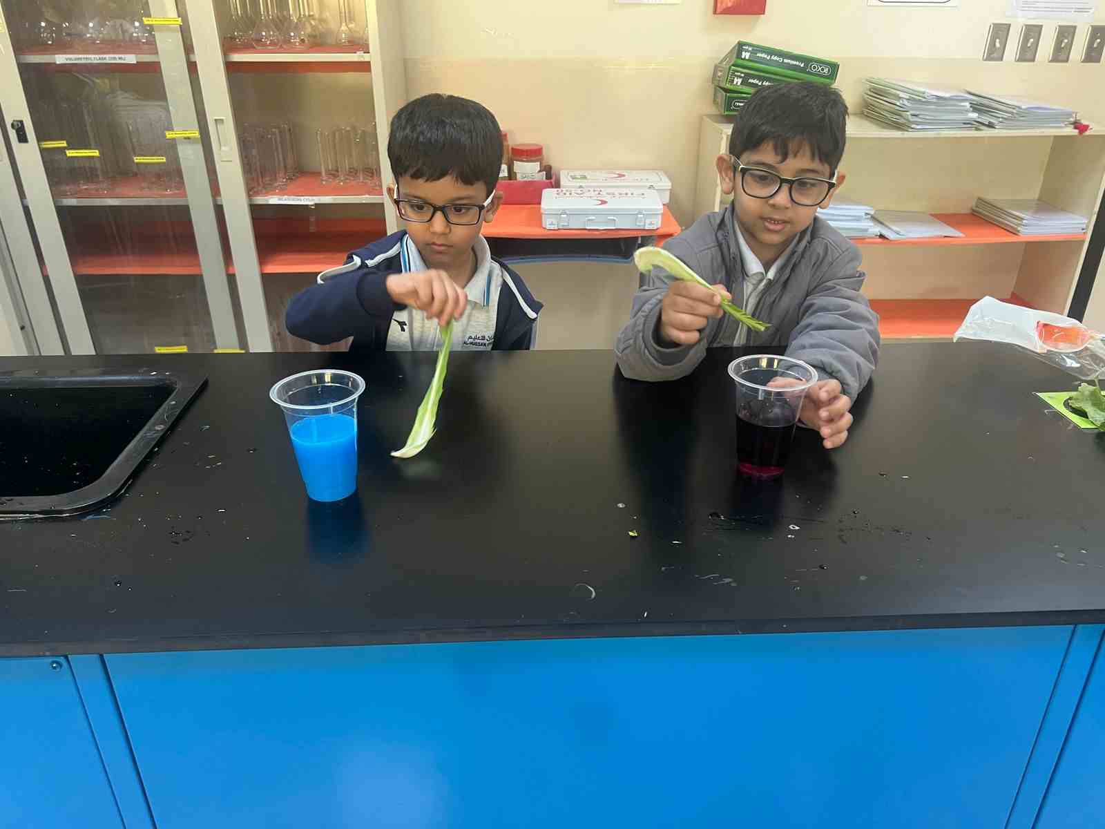 Our grade 1 O students performed a science lab experiment to learn how the stem connects roots to the leafy parts and carries water to the whole plant. They observed the process closely and enjoyed the hands-on activity.