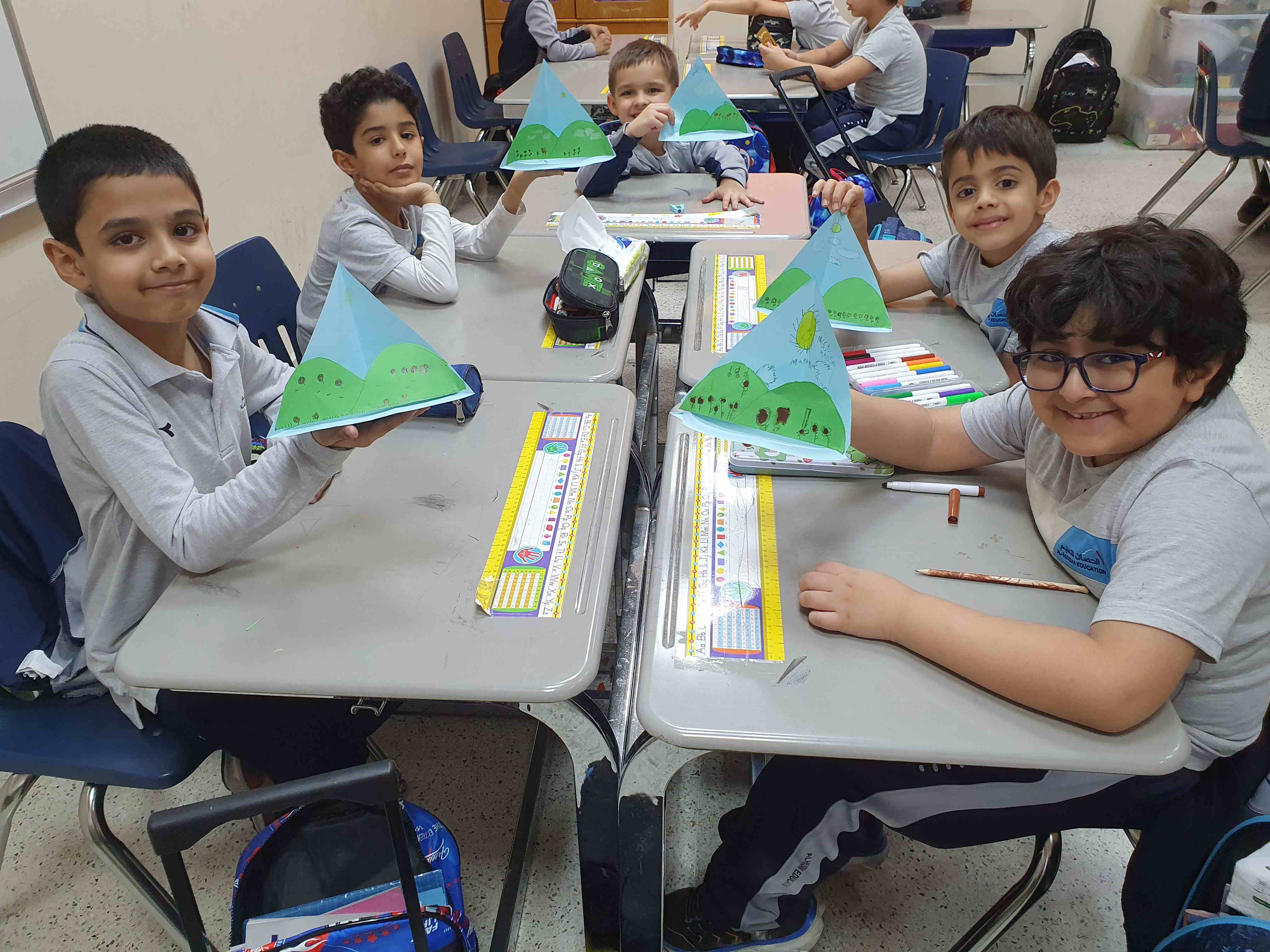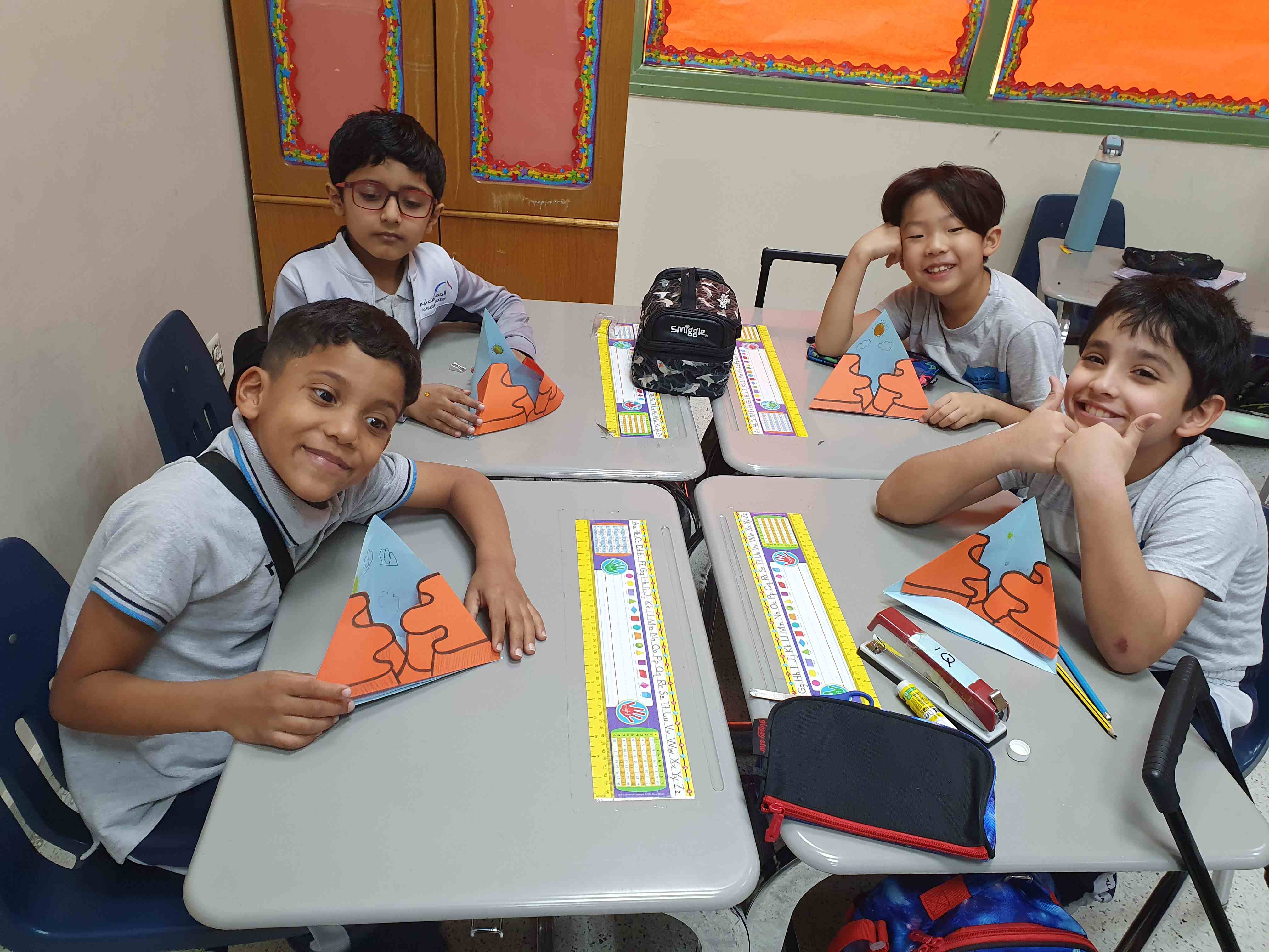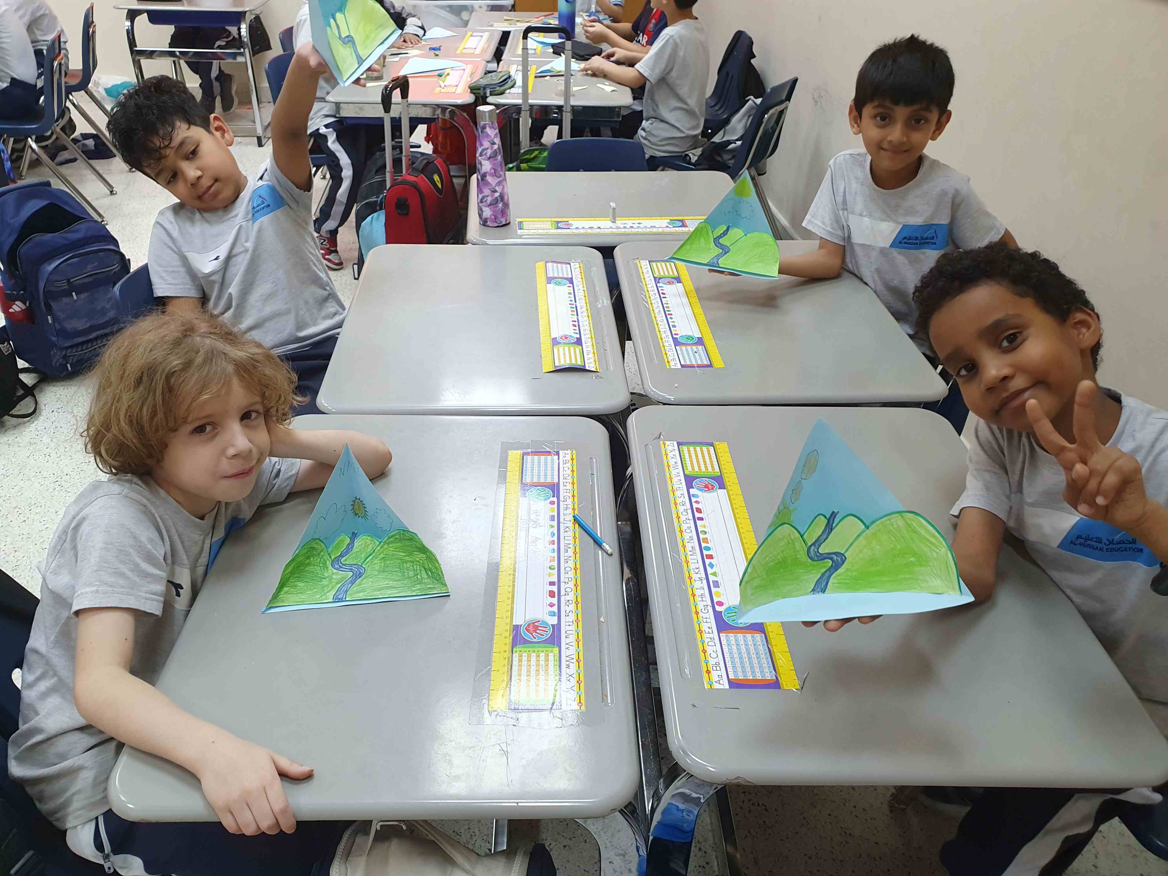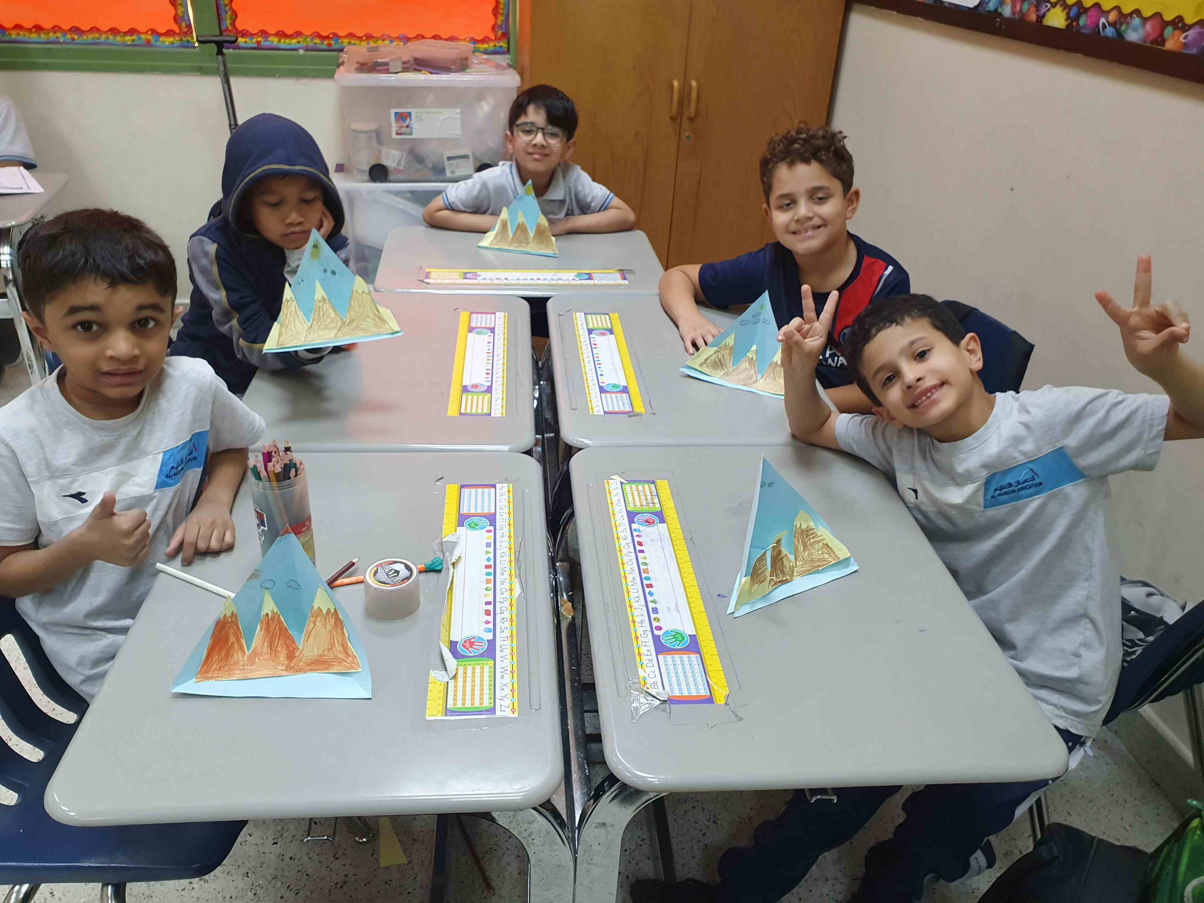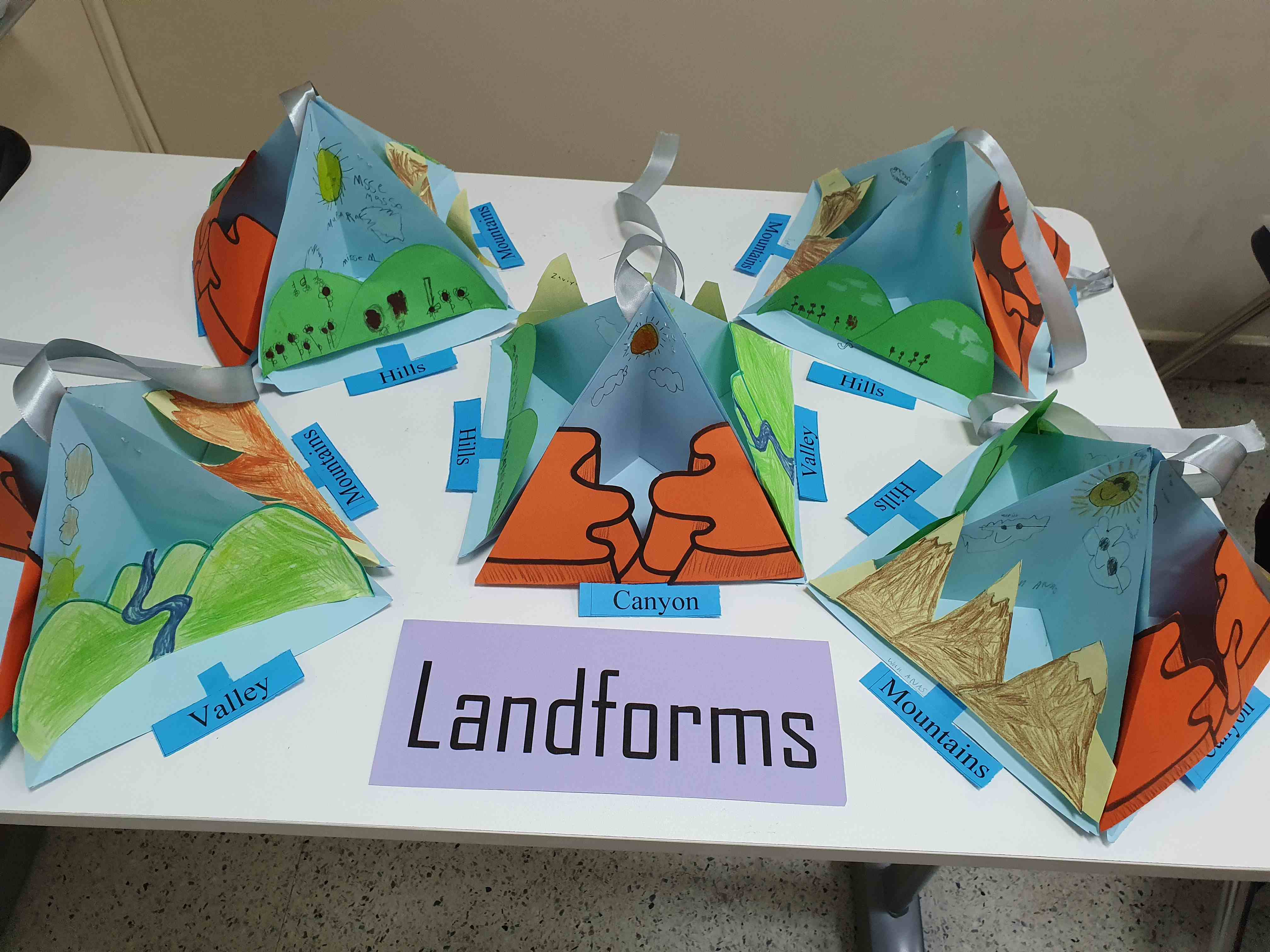 Our grade 2P created colorful landform models to learn about Earth’s surface. They reviewed mountains, valleys, hills, islands, plateaus, plains, and canyons, then colored, cut, and pasted each landform on a pyramid background. The activity made learning clear, interactive, and enjoyable.